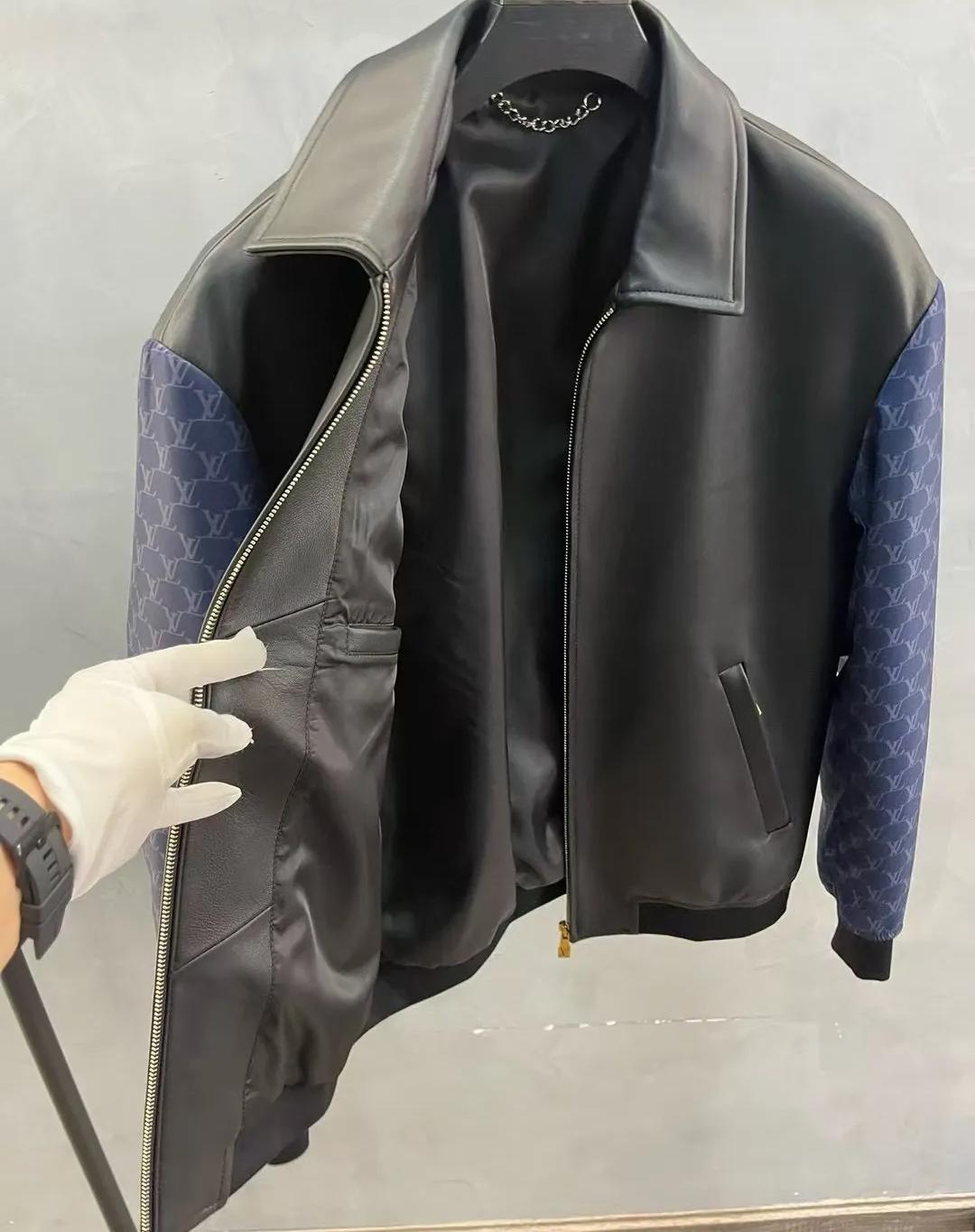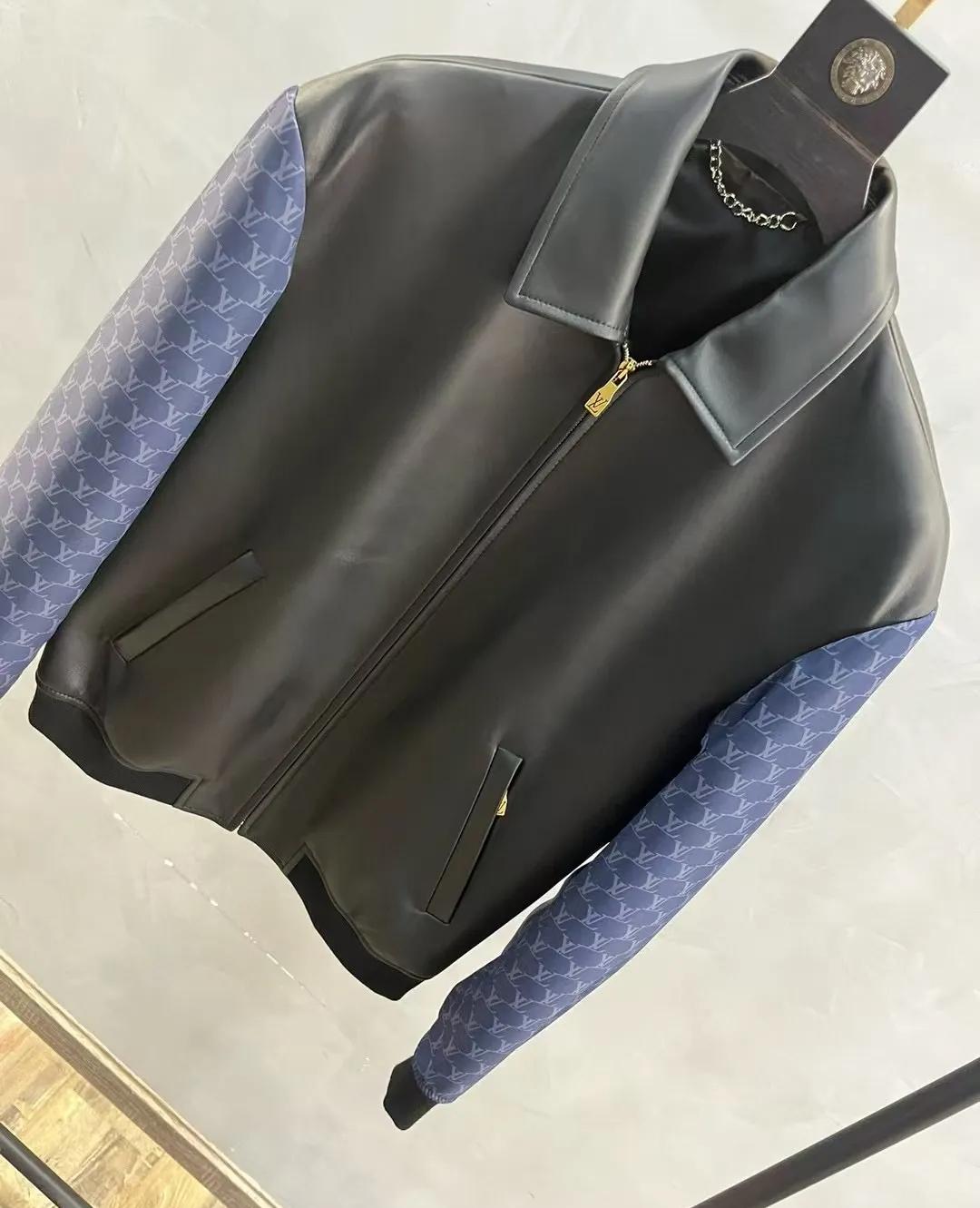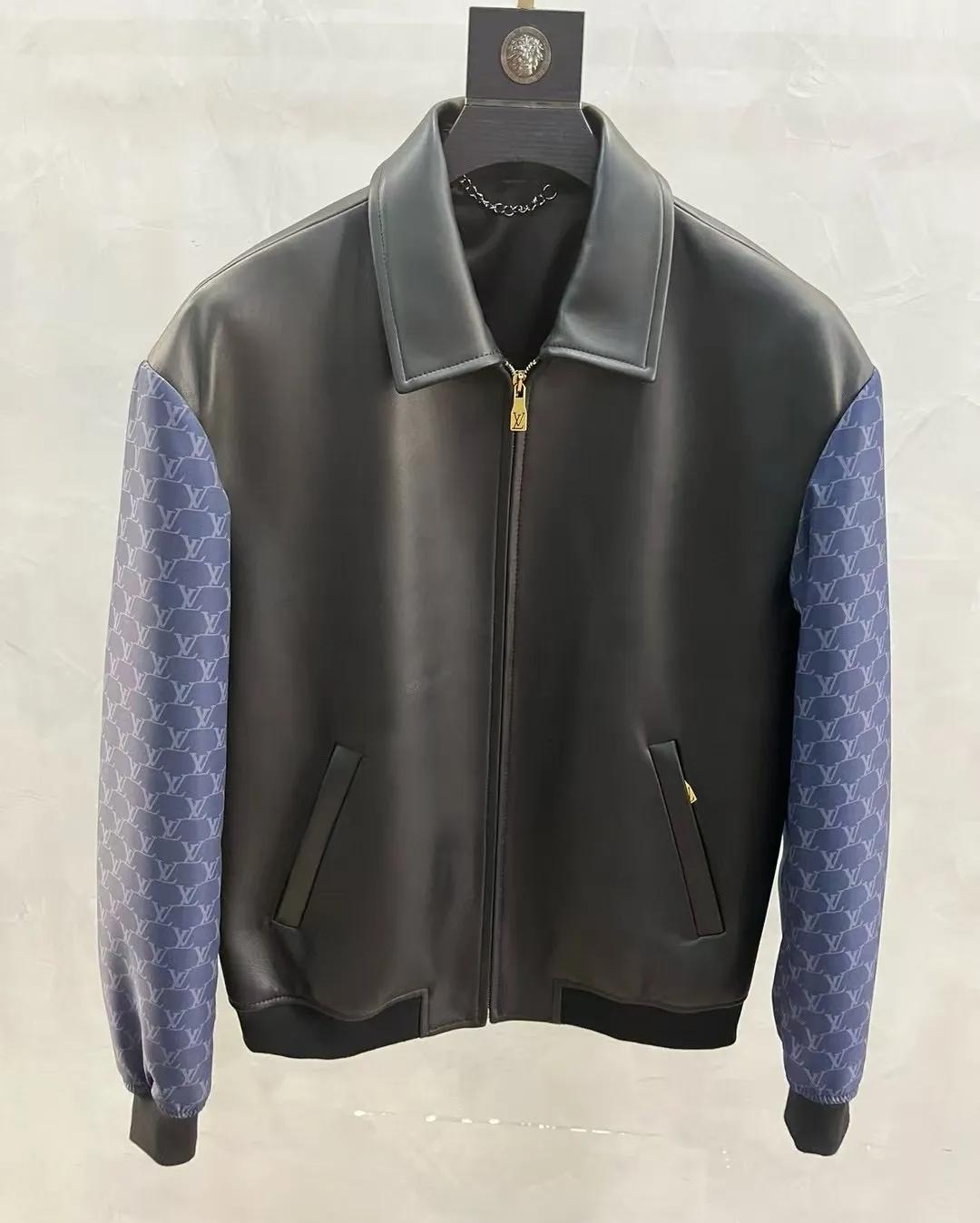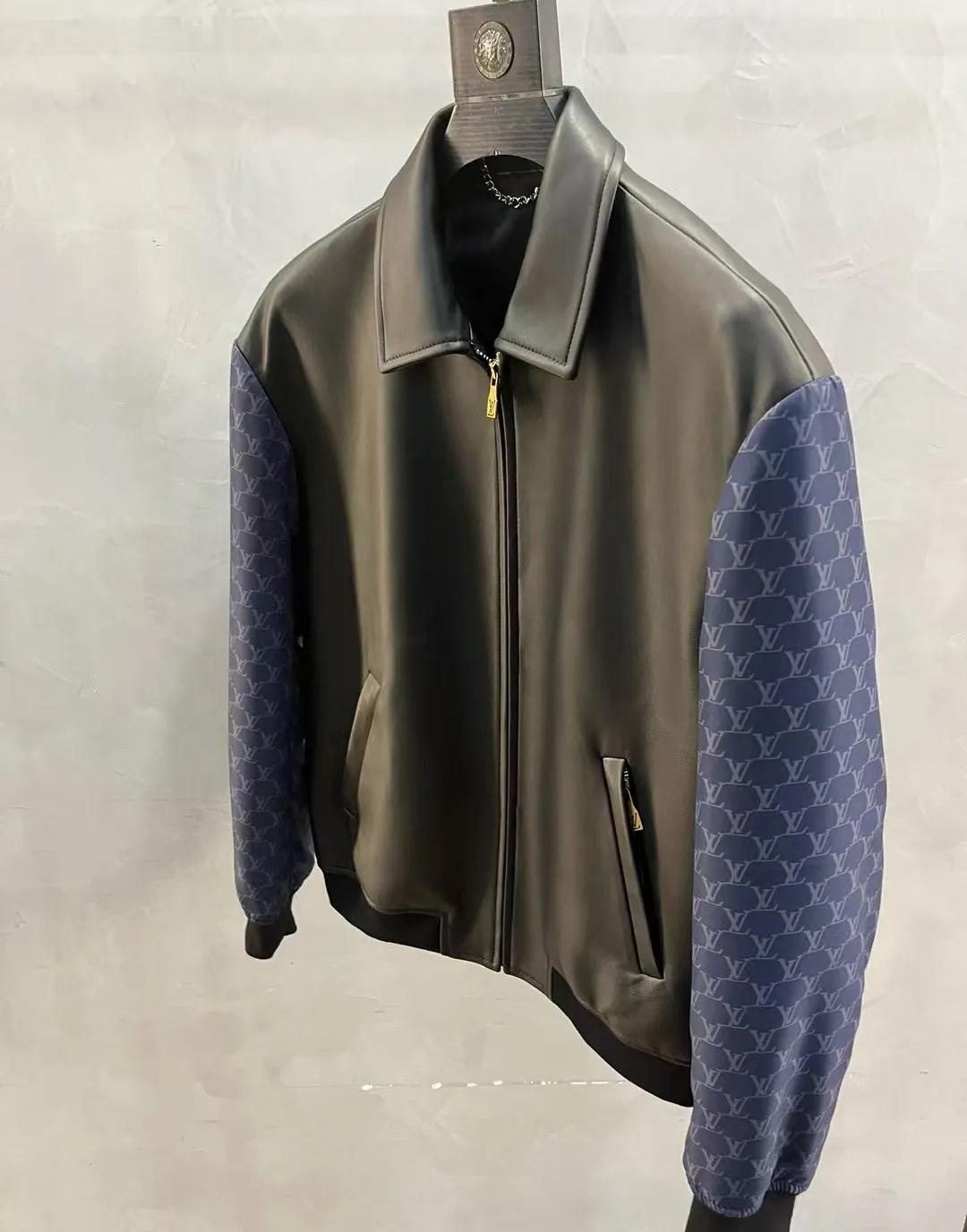 Мужская кожаная куртка от Louis Vuitton — это воплощение утончённого стиля и безупречного качества. Центральная часть выполнена из гладкой чёрной кожи премиального качества, которая придаёт изделию роскошный и минималистичный вид.