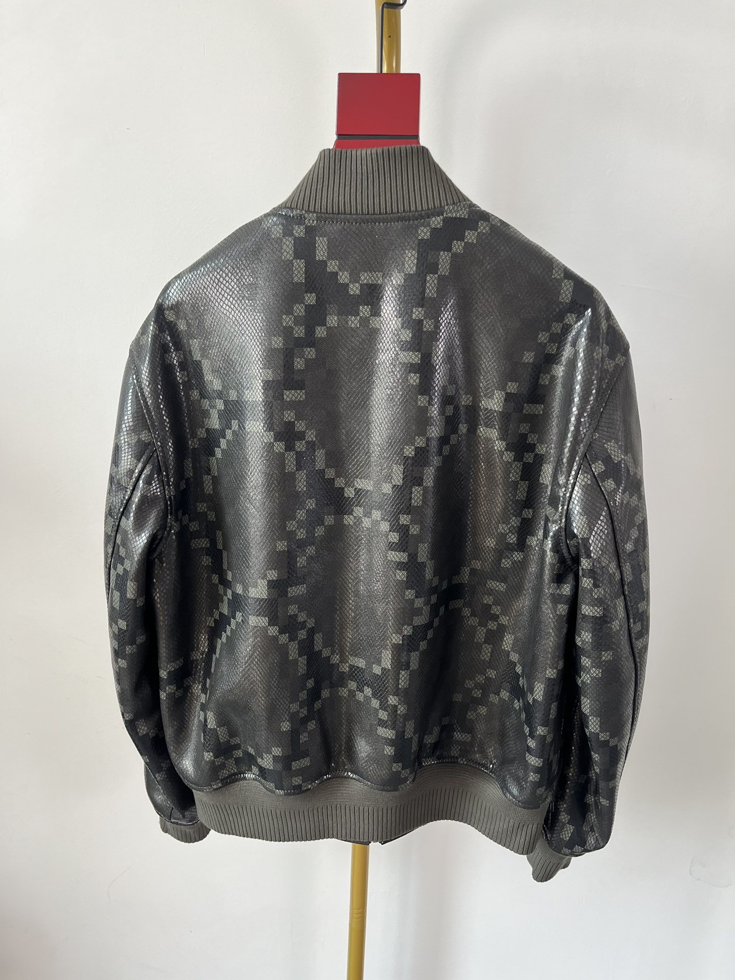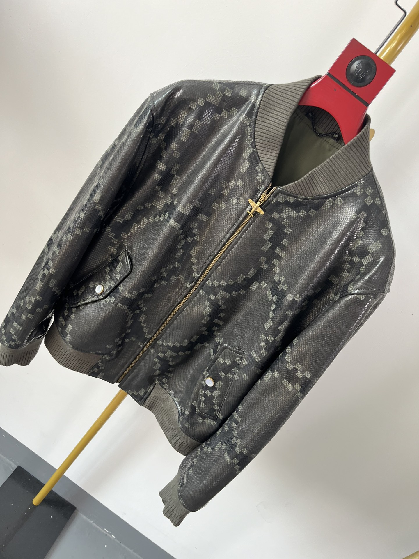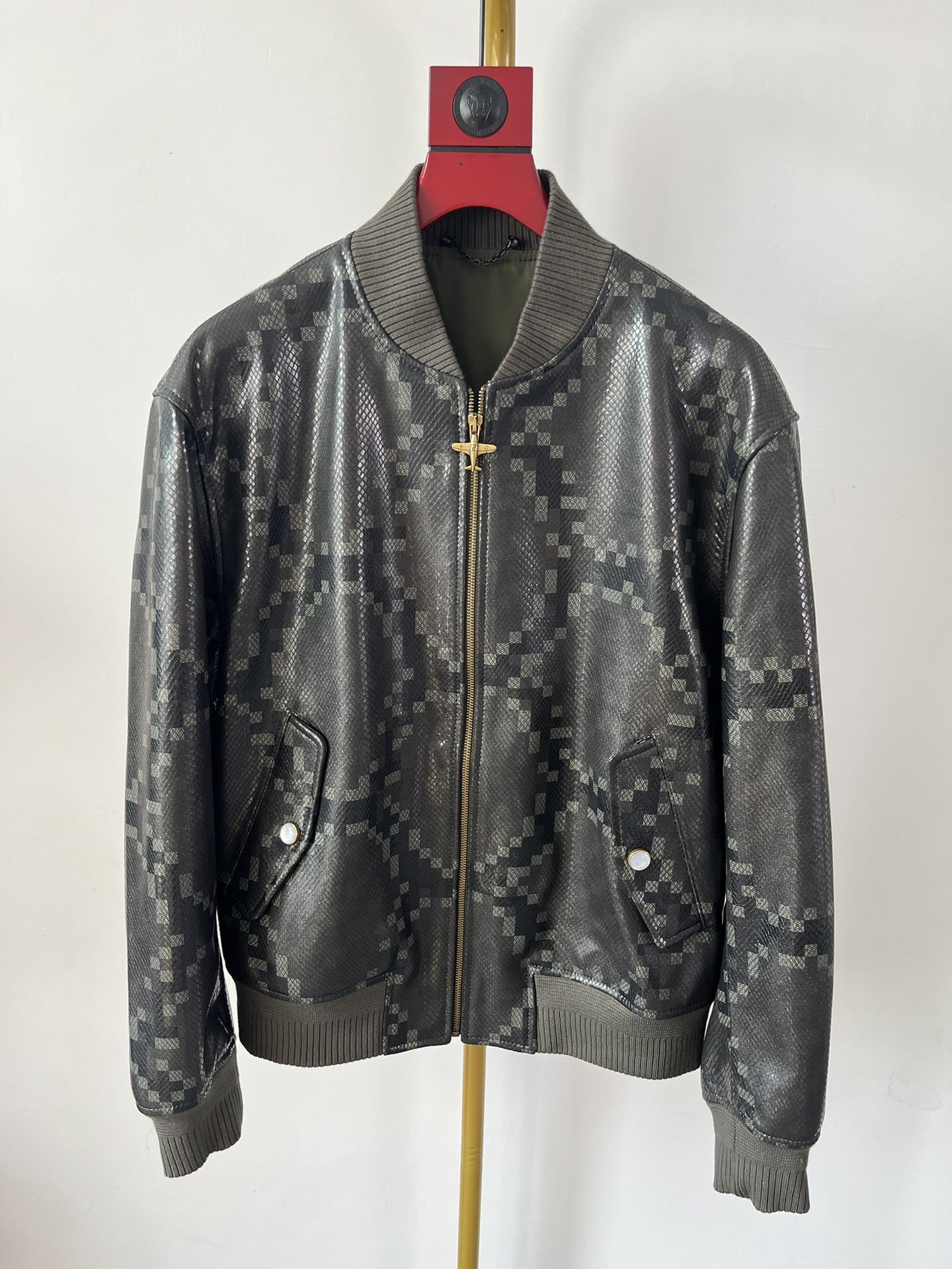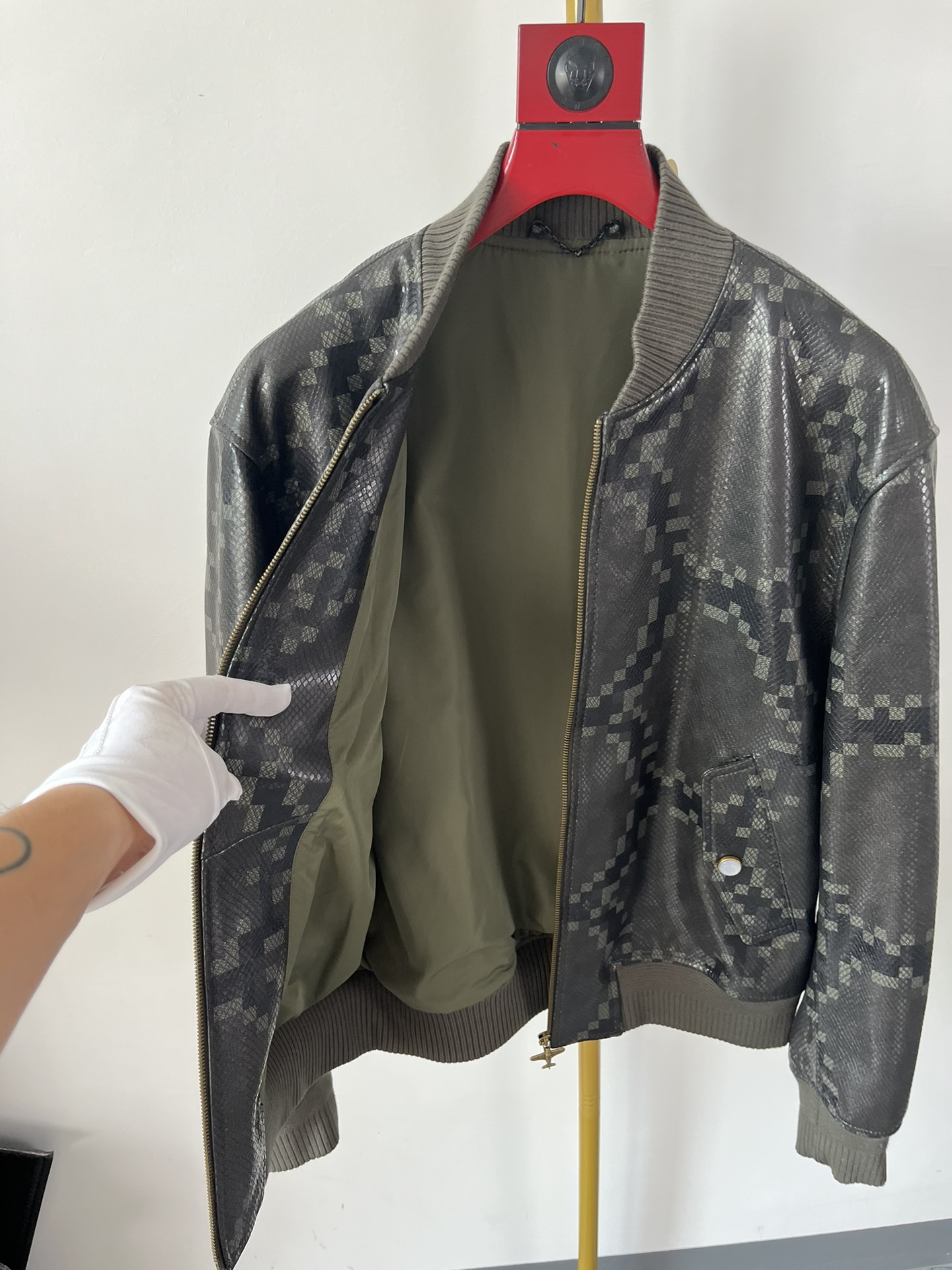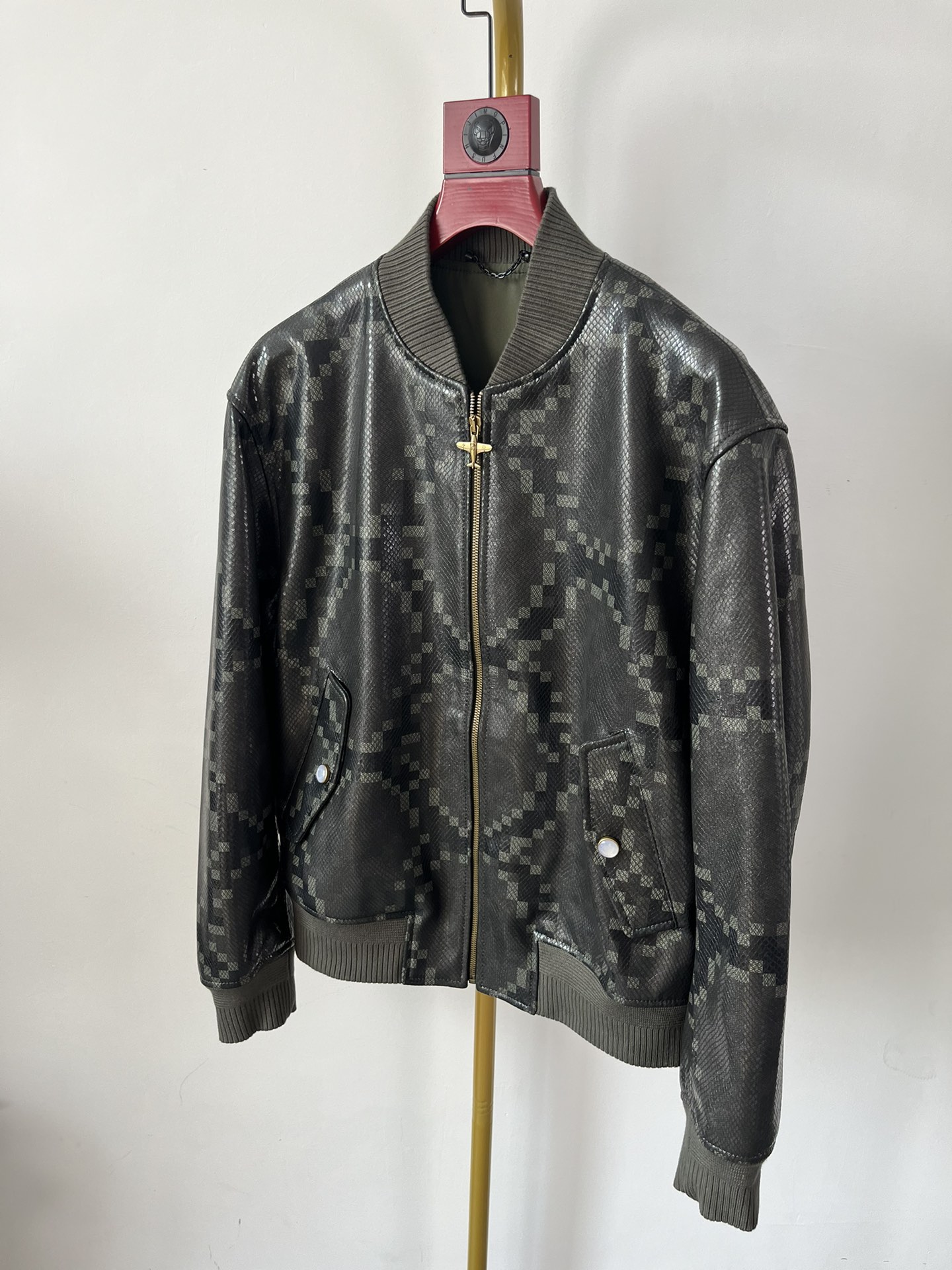 Мужской кожаный бомбер от Louis Vuitton — это воплощение элегантности и современного стиля. Изготовленный из высококачественной кожи, он привлекает внимание своей уникальной текстурой, имитирующей змеиную кожу.