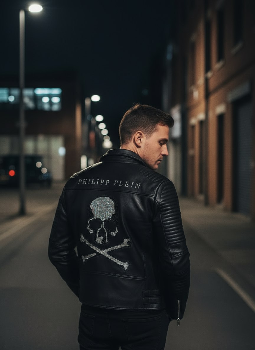 Мужская кожаная куртка PHILIPP PLEIN — это дерзкая модель в байкерском стиле. Она выполнена в черном цвете, имеет отложной воротник, застежку на молнии и украшена выразительным черепом на спине. Сочетание стиля и практичности делает эту куртку отличным выбором для создания эффектного образа.