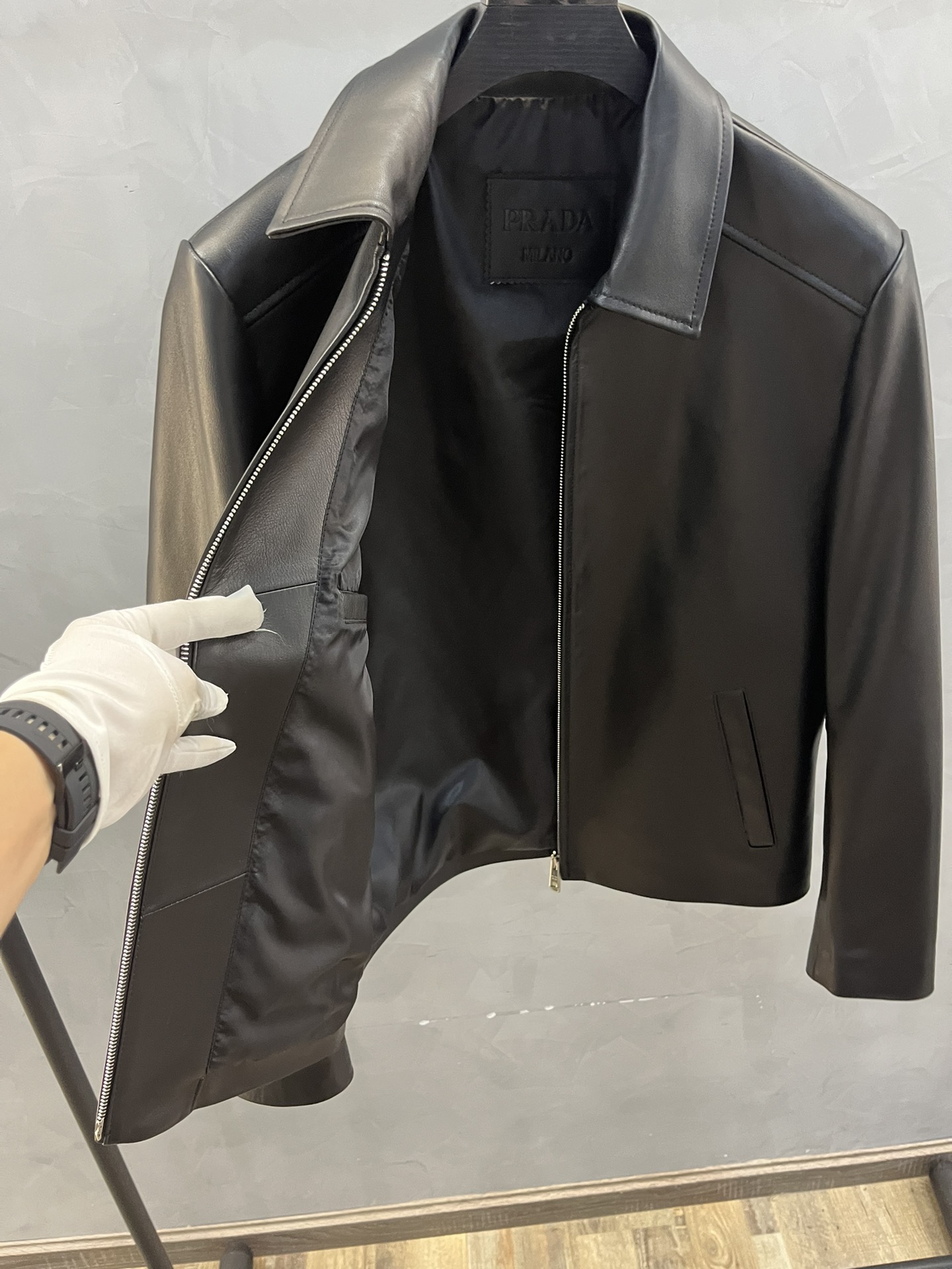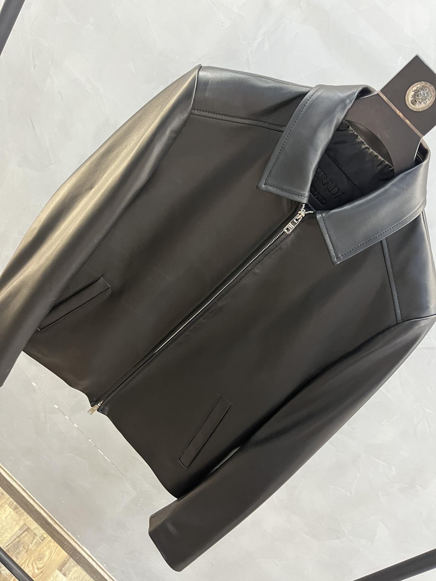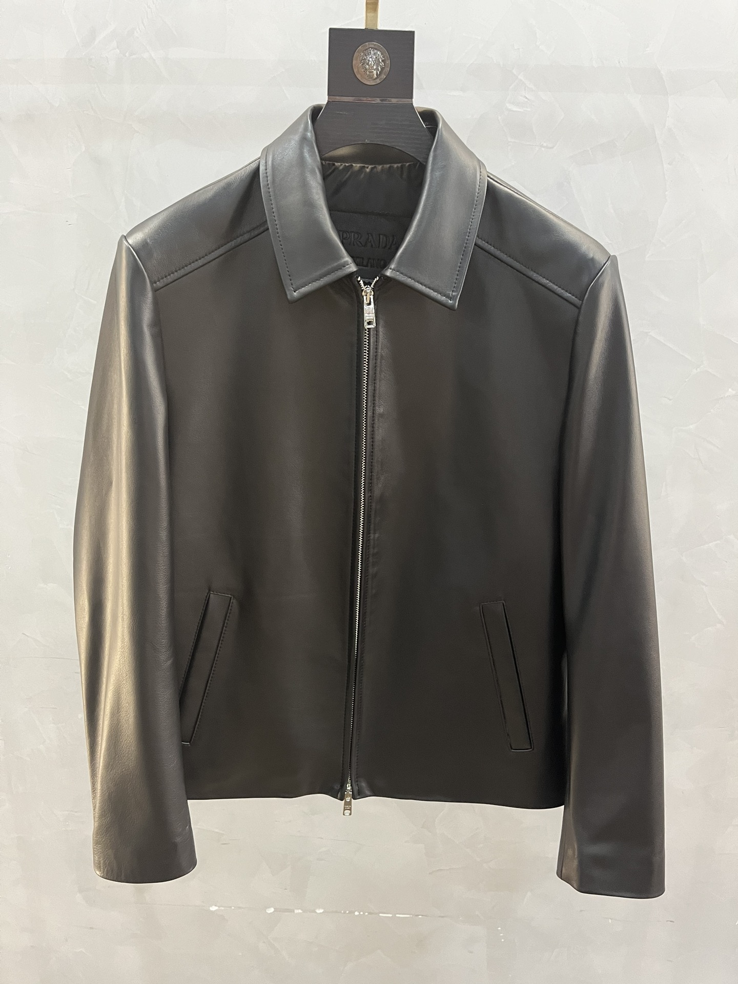 Мужская кожаная куртка от Prada воплощает в себе элегантность и современный стиль, характерные для итальянского модного дома. Изготовленная из высококачественной кожи, она отличается мягкостью и долговечностью, обеспечивая комфорт и изысканный внешний вид.