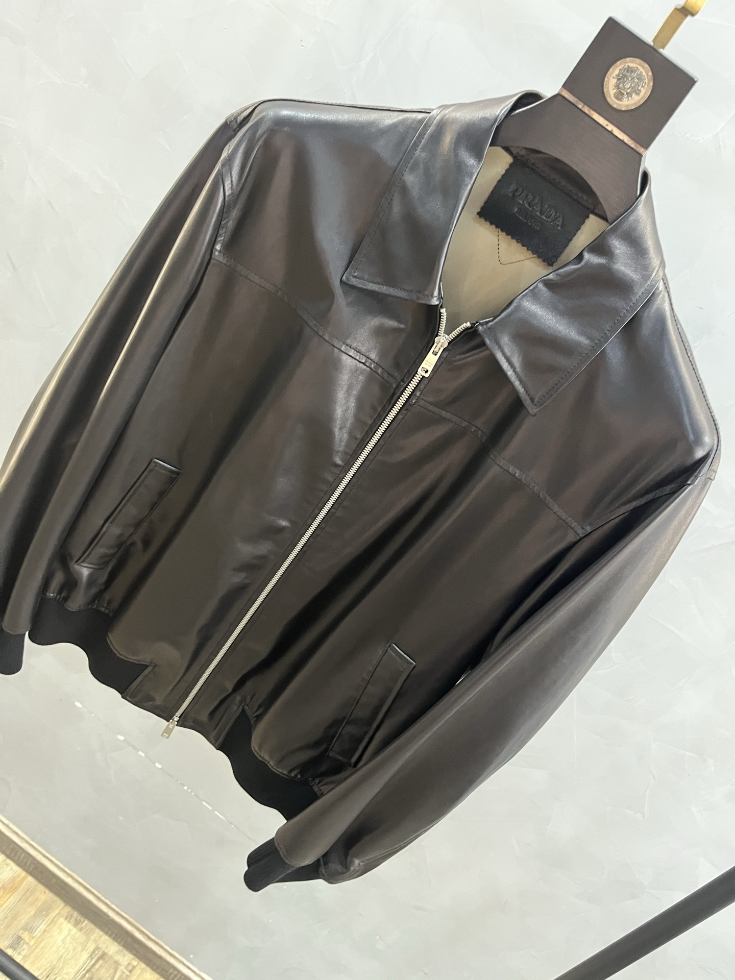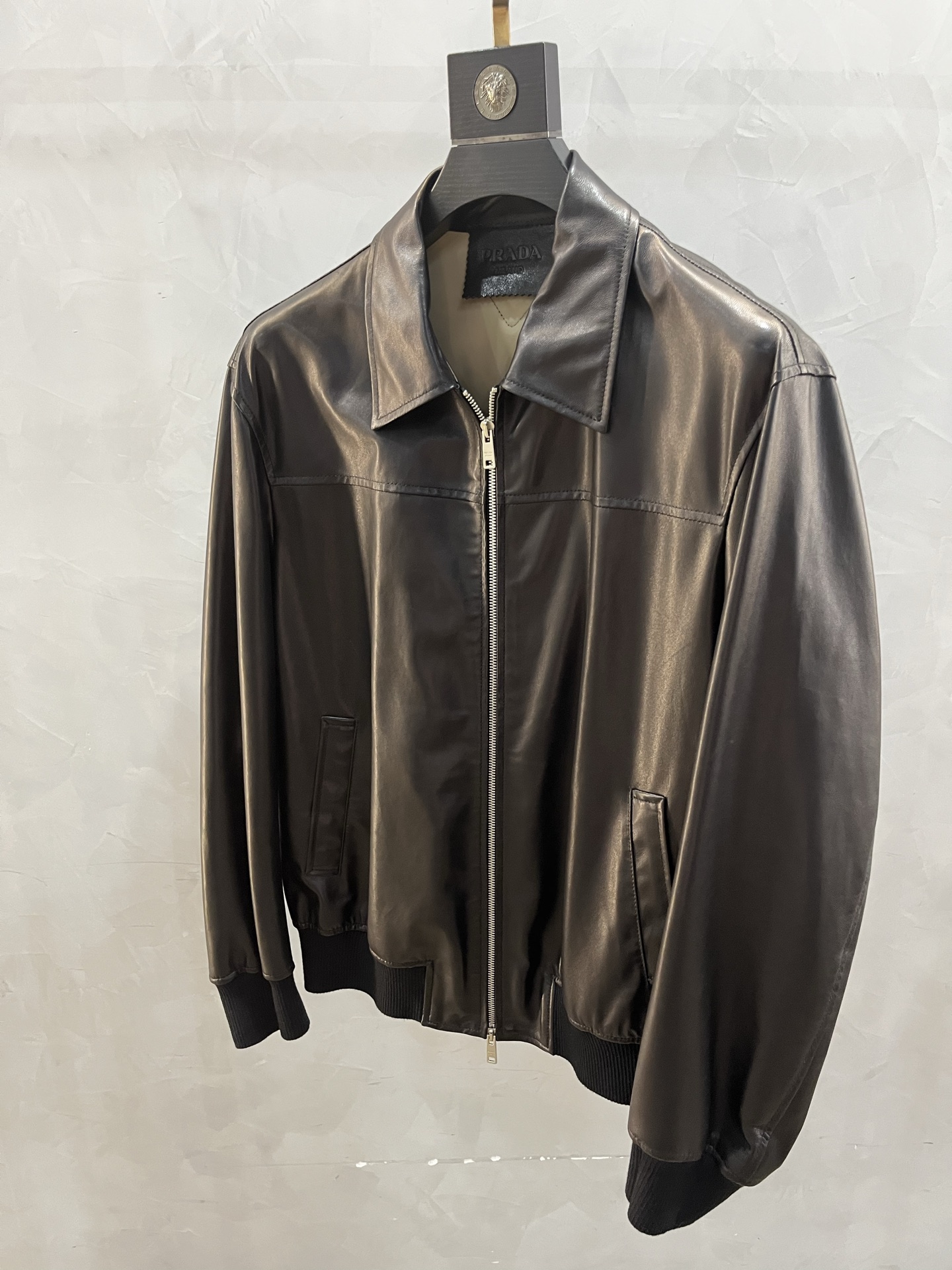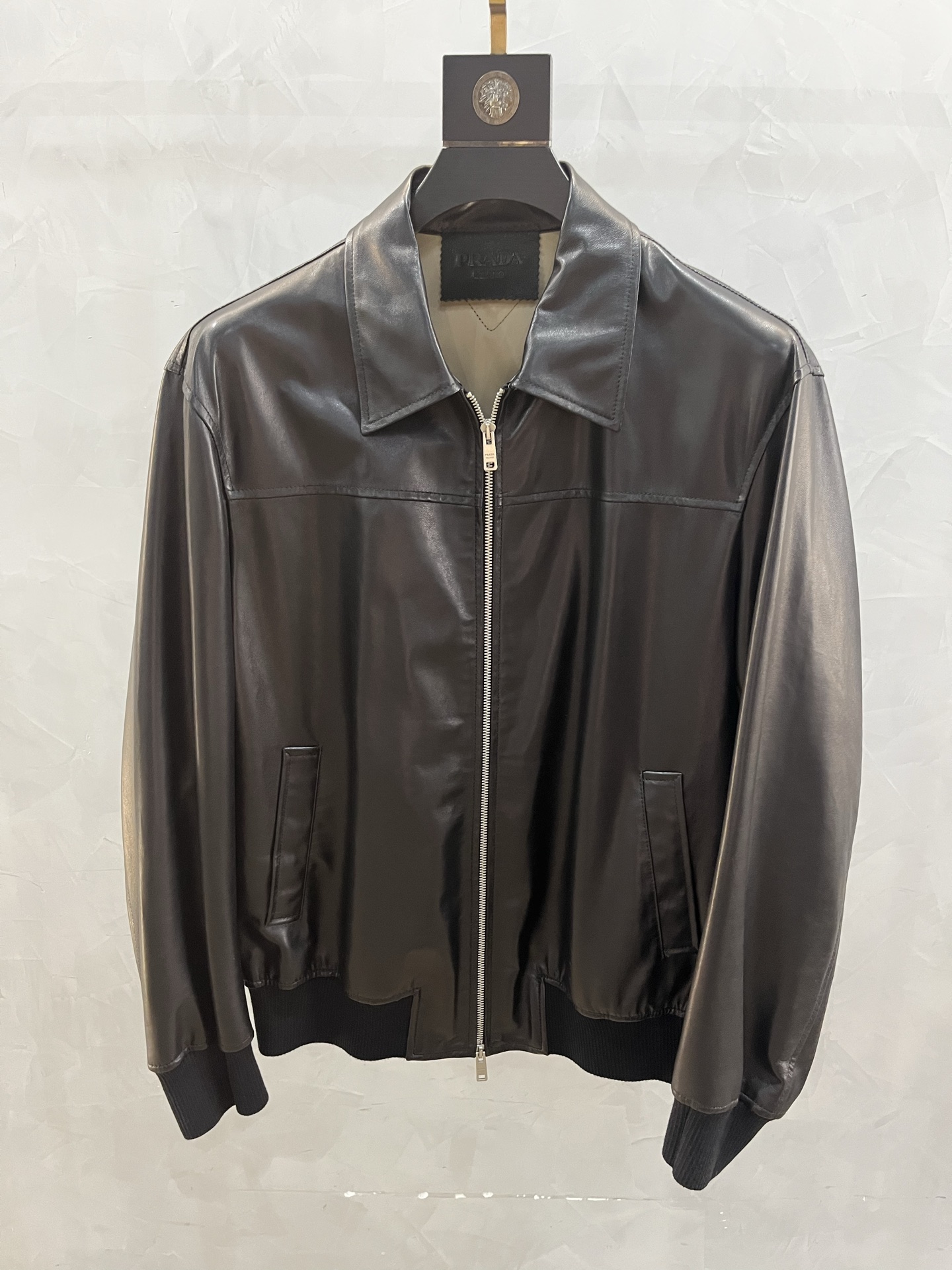 Мужская кожаная куртка от Prada выполнена из высококачественной воловьей кожи, что обеспечивает ей долговечность и элегантный внешний вид. Куртка отличается классическим дизайном с прямым кроем и застежкой на молнию, что делает её универсальным элементом гардероба для любого случая.