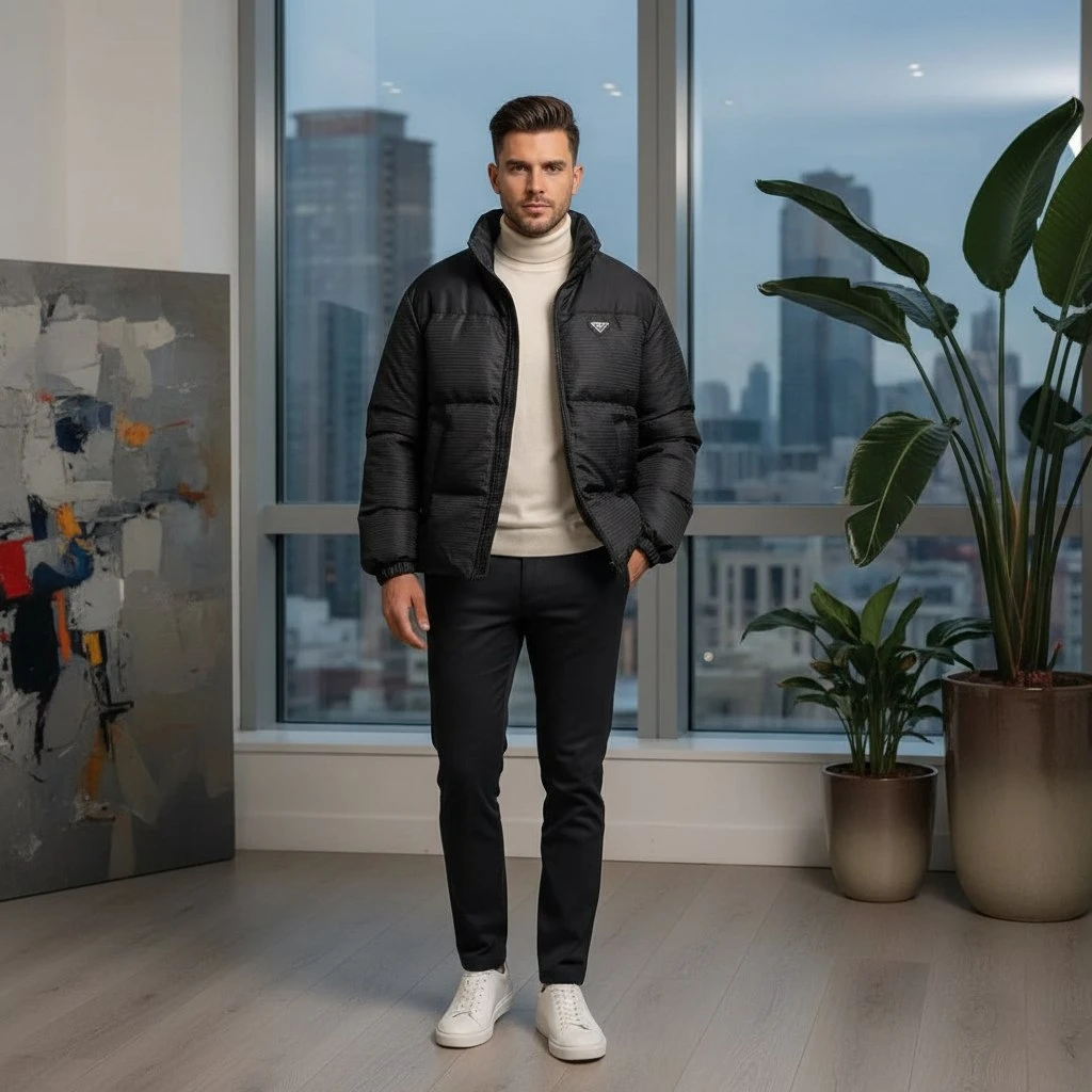 Мужская куртка PRADA — это стильный и функциональный элемент верхней одежды, который будет необходим для стильного и модного мужчины. Пуховик обеспечивает отличную теплоизоляцию, позволяя оставаться в тепле даже в холодную погоду. Модель застегивается на надежную молнию, которая добавляет ей практичности и современного стиля. Эта куртка — идеальное сочетание элегантности, комфорта и инновационных технологий, что делает ее незаменимой вещью в гардеробе современного мужчины.