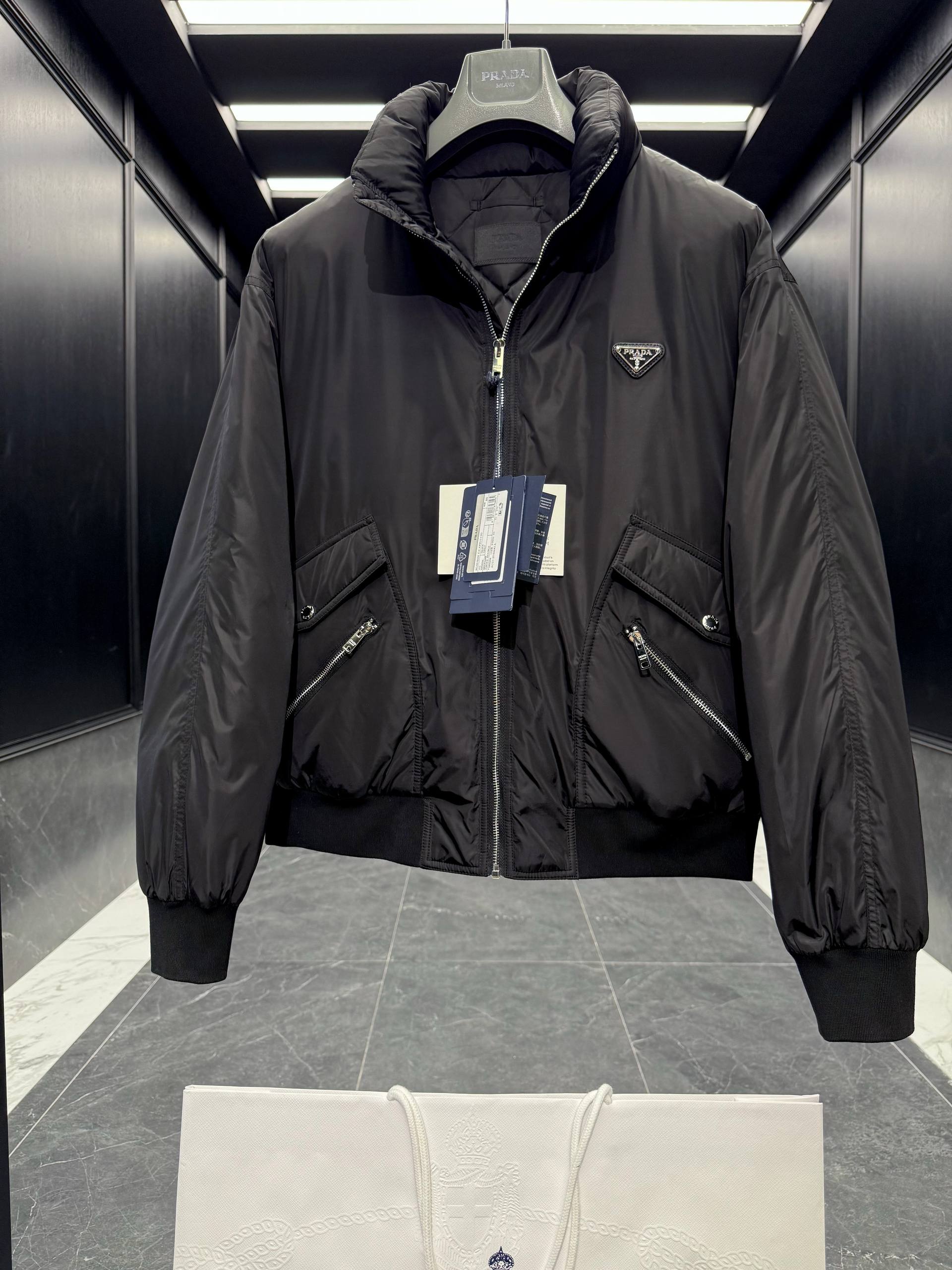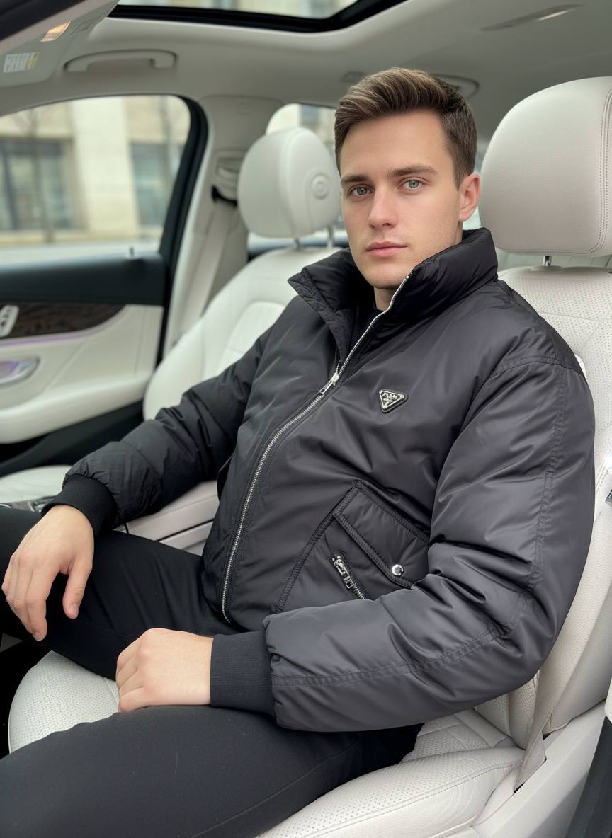 Мужская куртка-бомбер PRADA — современная интерпретация классической куртки в лаконичном, сдержанном исполнении. Модель выполнена в глубоком черном цвете из гладкой технической ткани с легким матовым блеском, создающей четкую, минималистичную фактуру. Легкая утеплённая прослойка обеспечивает комфорт в прохладную погоду, сохраняя при этом компактный объем и чистые линии силуэта.
