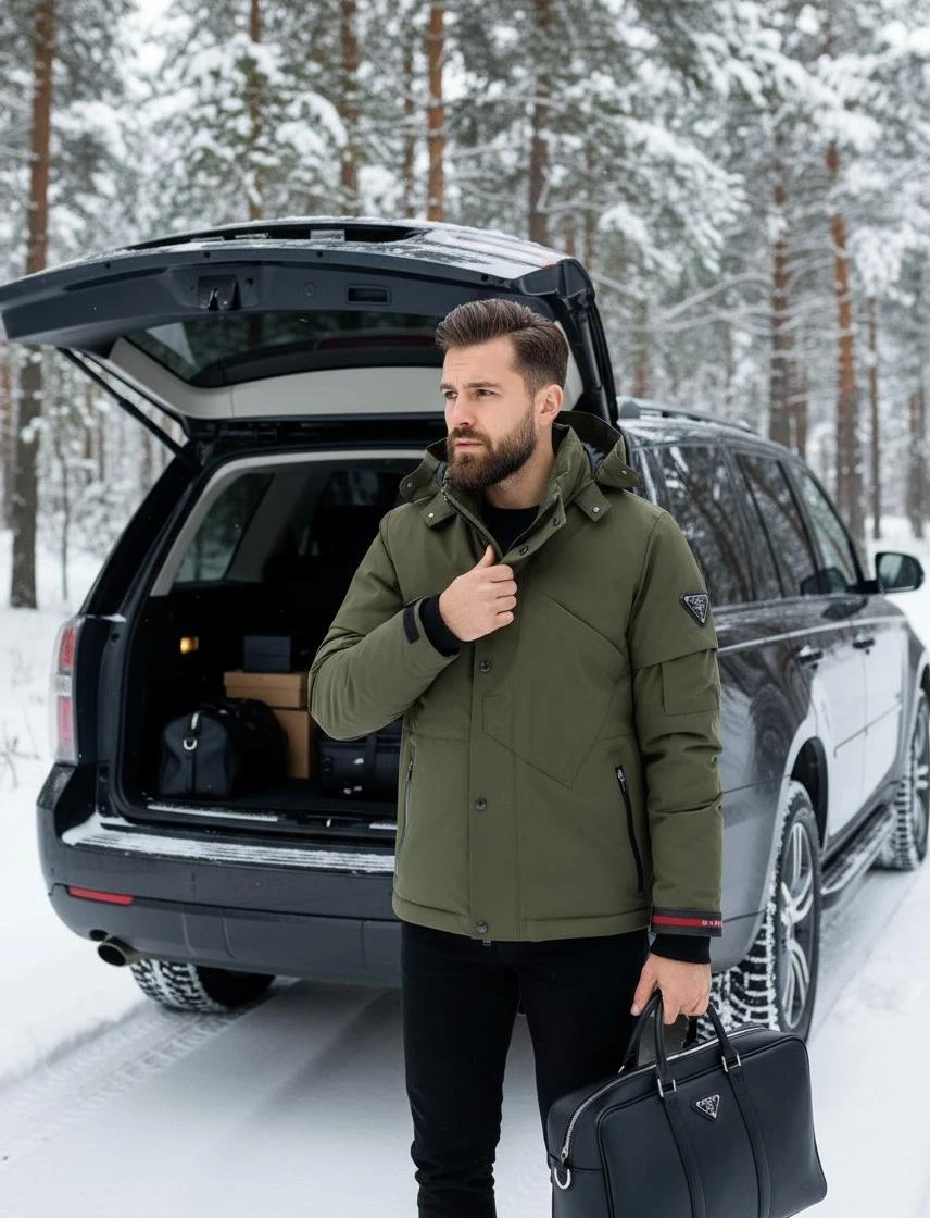 Дизайн пуховика сочетает в себе классические и современные элементы: удобный капюшон, застежка-молния и кнопки, а также практичные карманы с молниями для безопасного хранения ваших вещей.