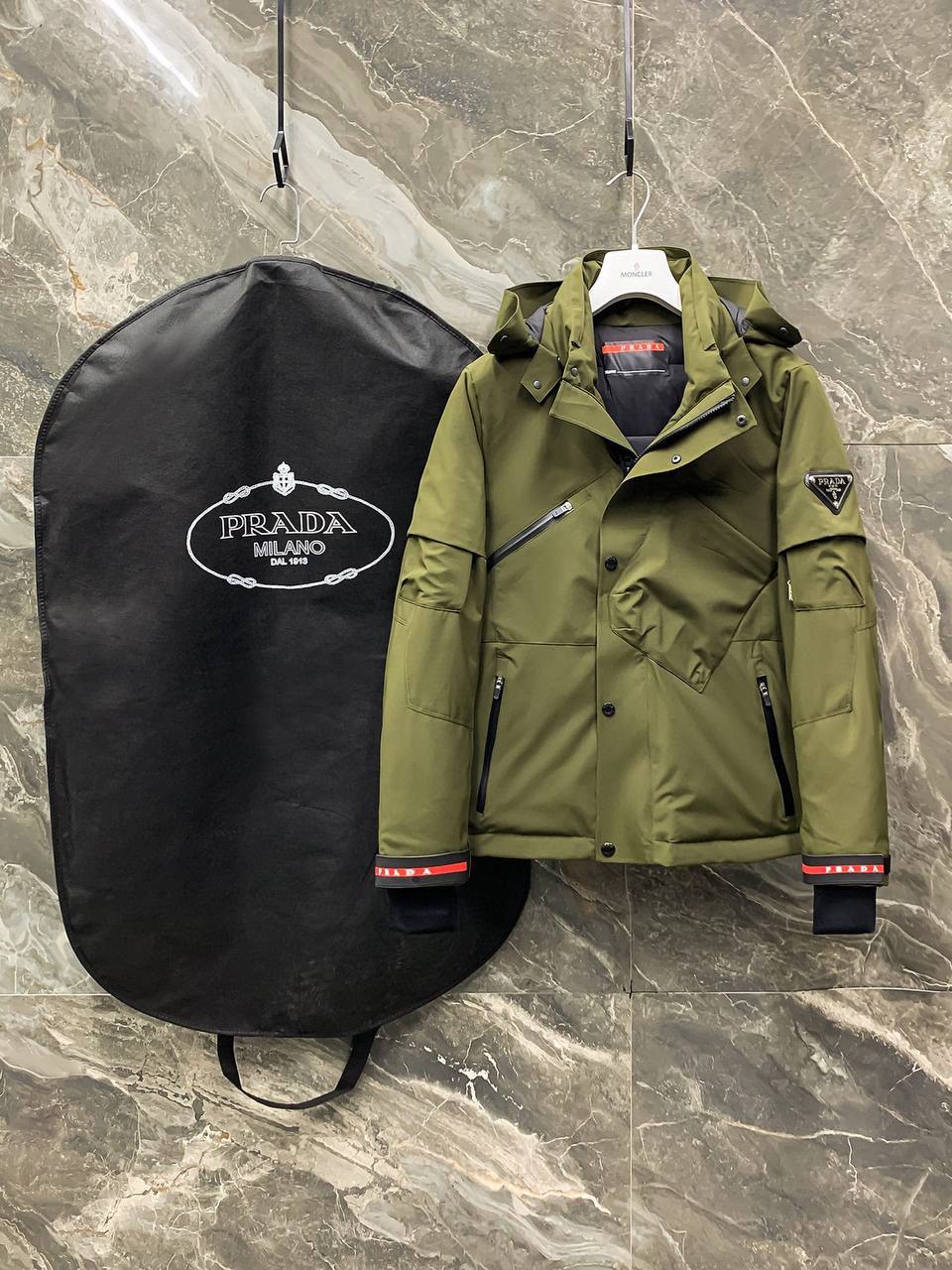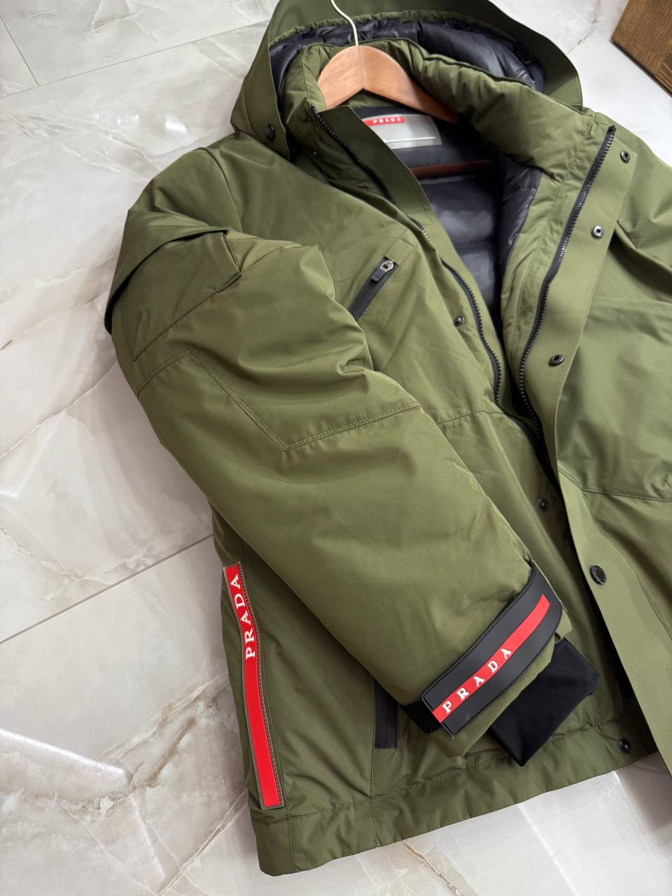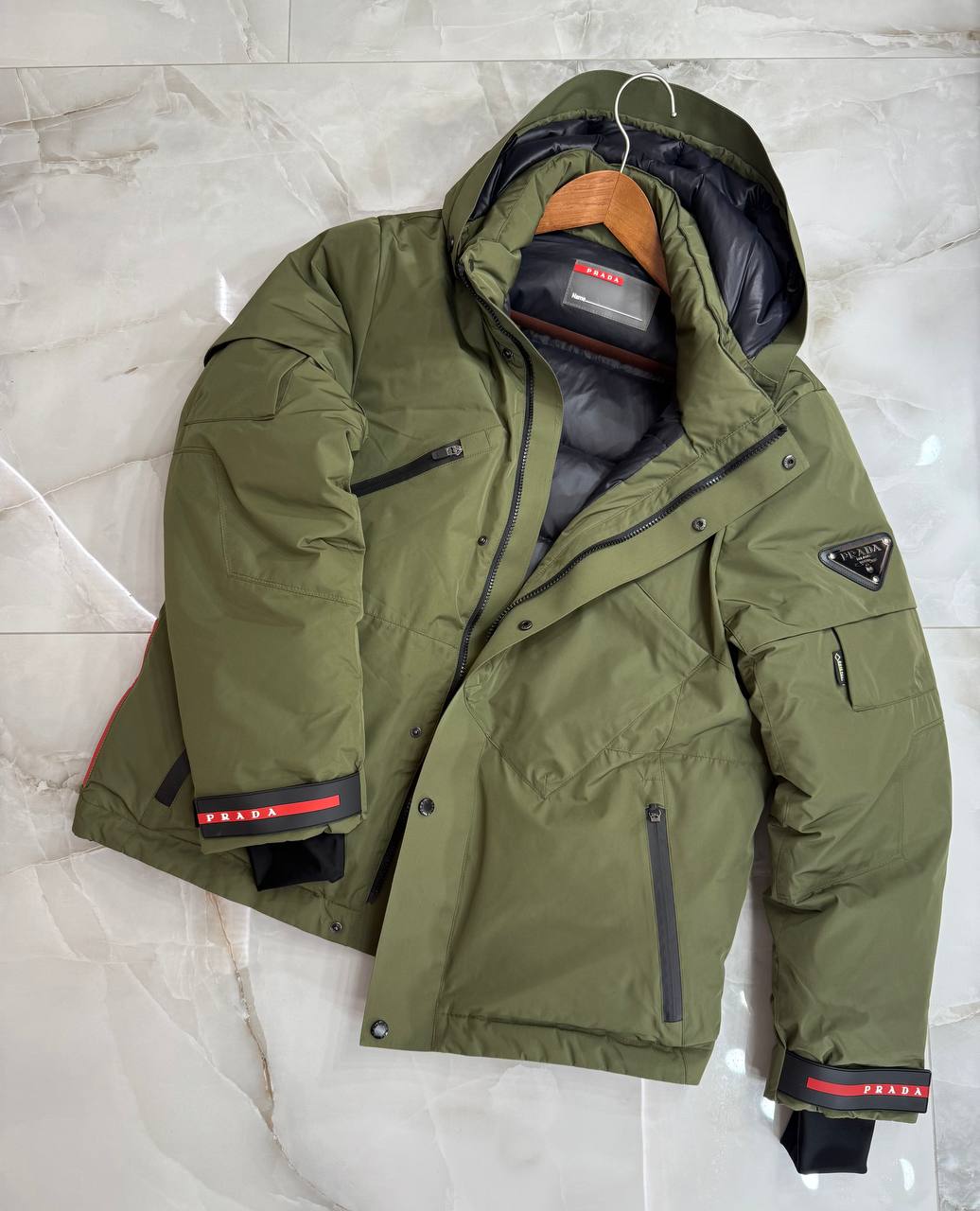 Мужской пуховик от Prada — воплощение элегантности и функциональности. Этот стильный пуховик выполнен в изысканном оливковом цвете, который подчеркнет ваш утонченный вкус.