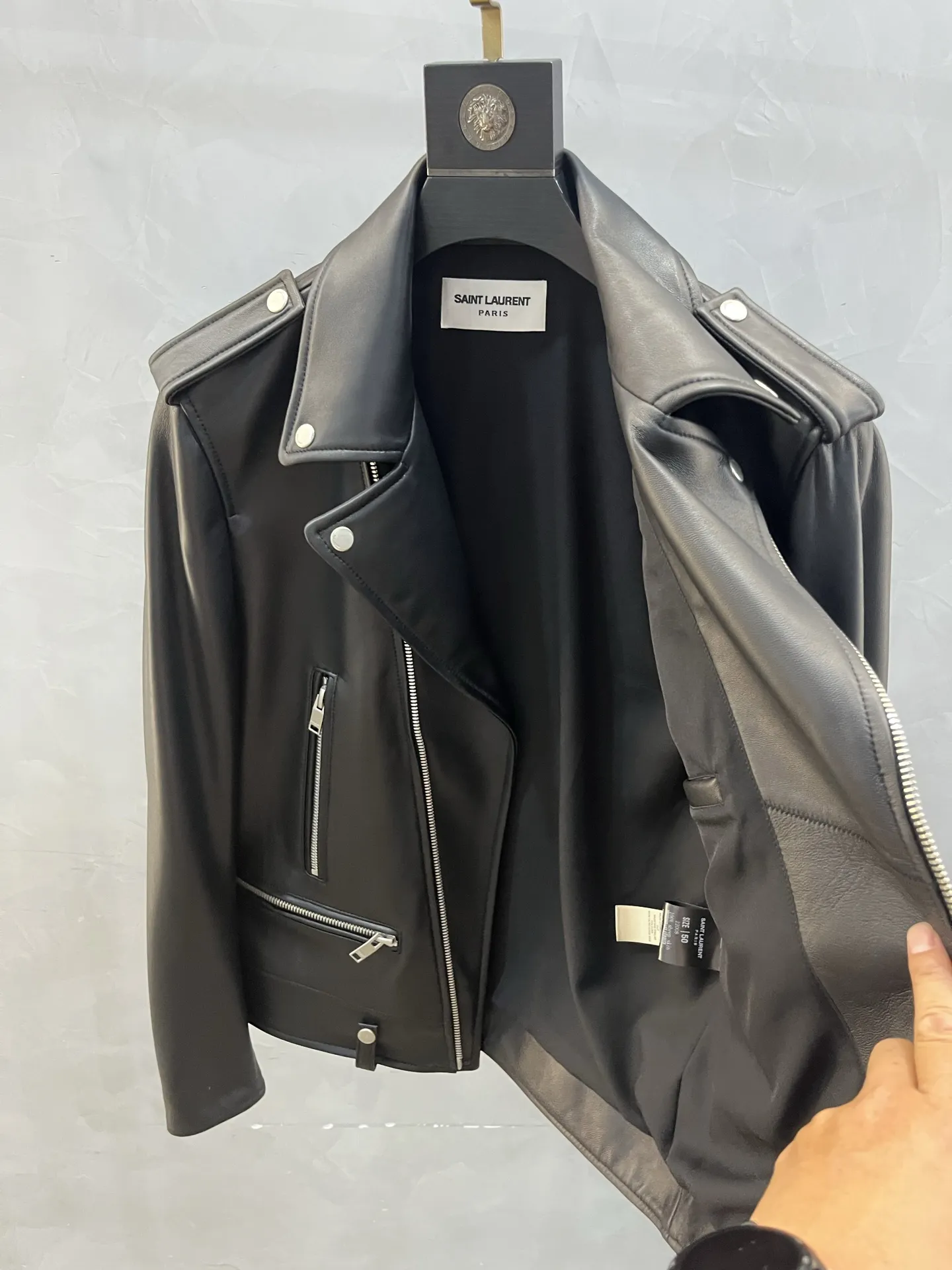 Мужская кожаная косуха в байкерском стиле от Yves Saint Laurent (YSL) из импортной козьей кожи с прямым кроем отличный выбор для тех, кто ценит качество и стиль.
