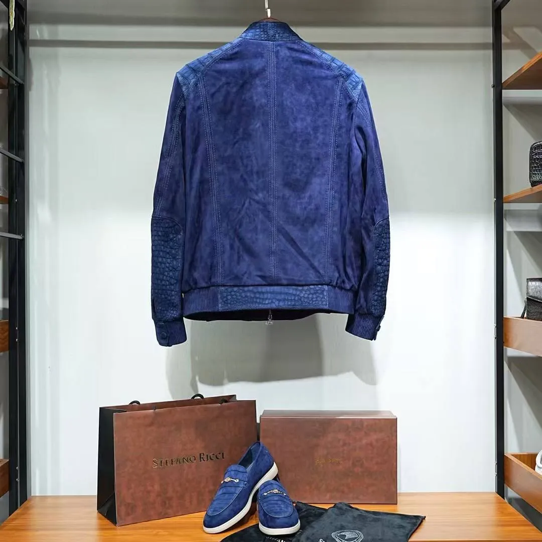 STEFANO RICCI Мужская куртка замша и кожа крокодила