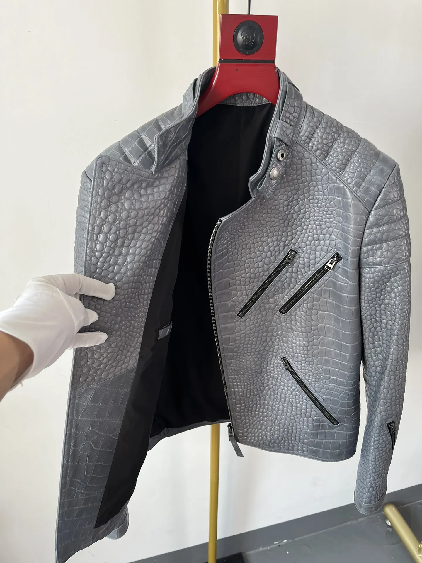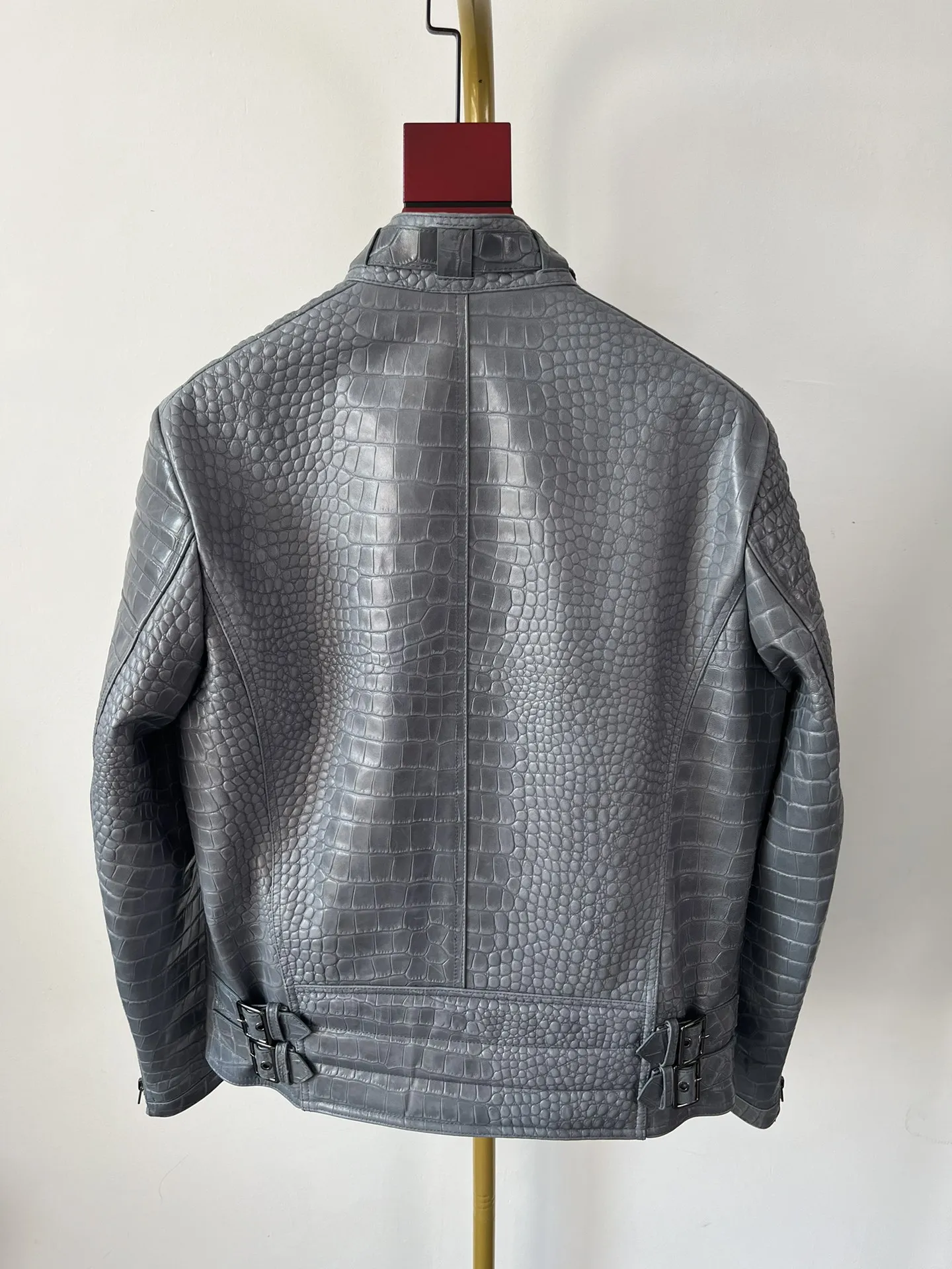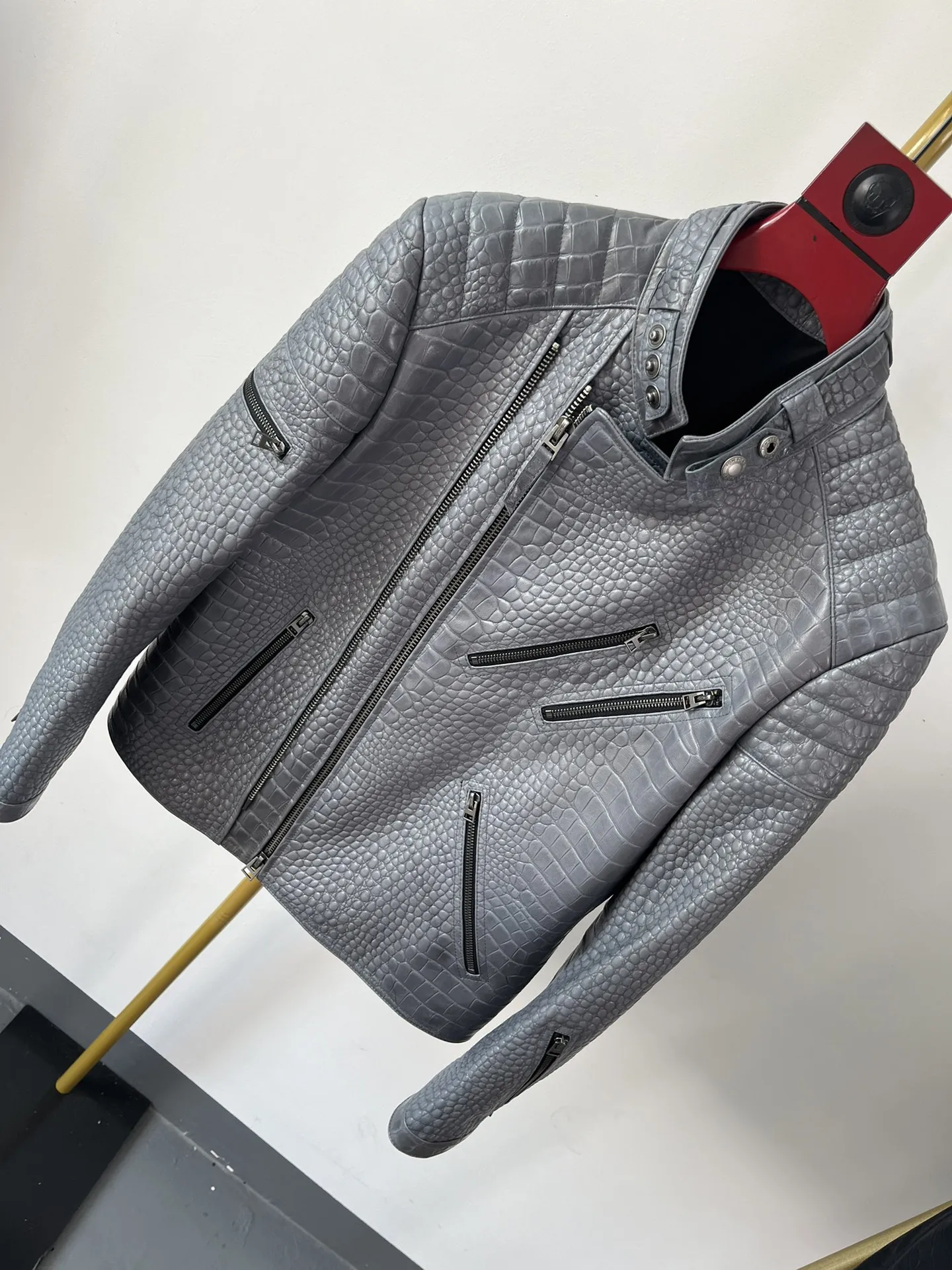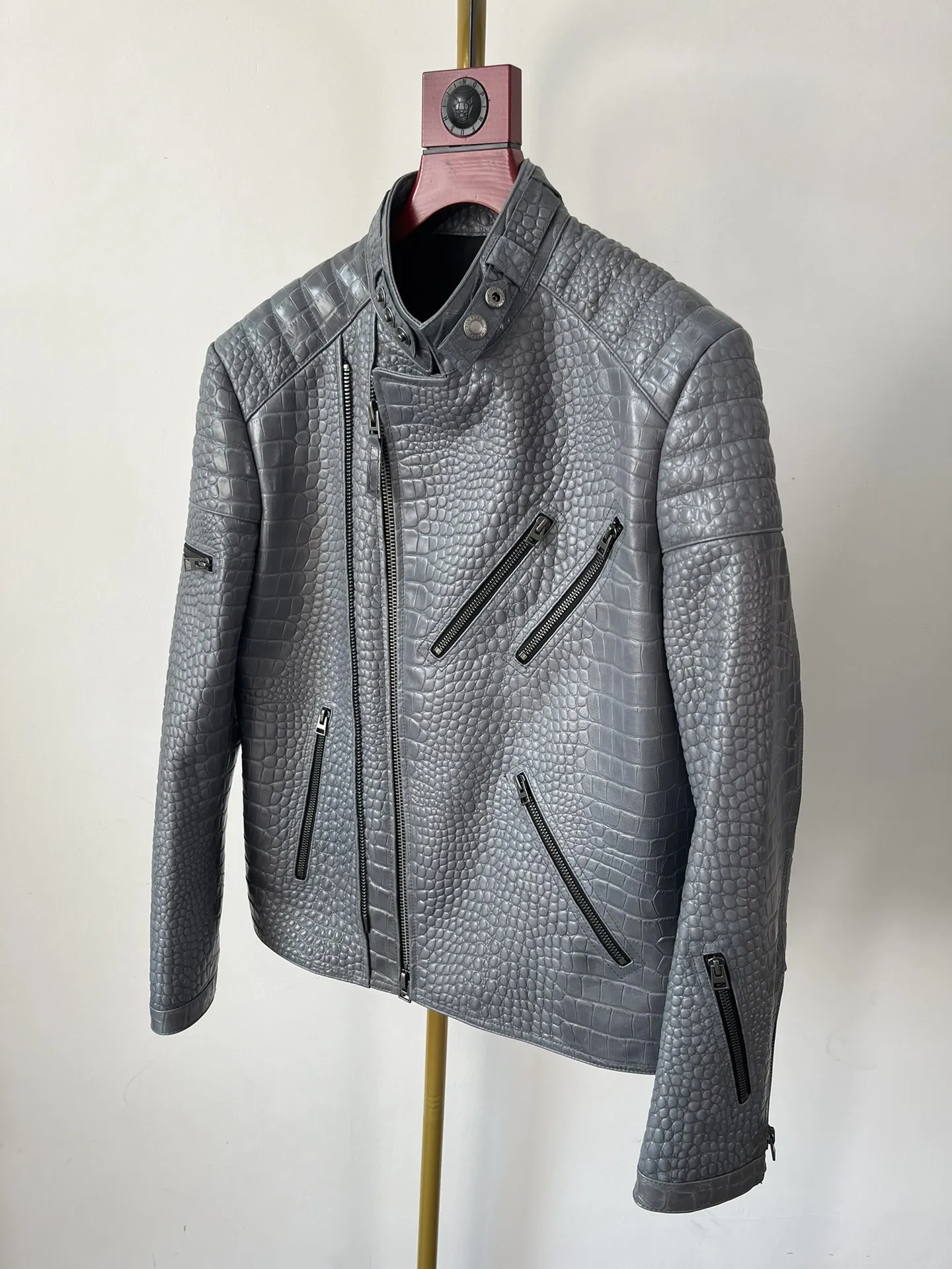 Мужская кожаная куртка от Tom Ford воплощает в себе элегантность и современный стиль, идеально подходящий для уверенного и модного мужчины. Изготовленная из высококачественной овчины, куртка отличается уникальной текстурой, напоминающей кожу рептилии, что придаёт ей особый шарм и эксклюзивность.