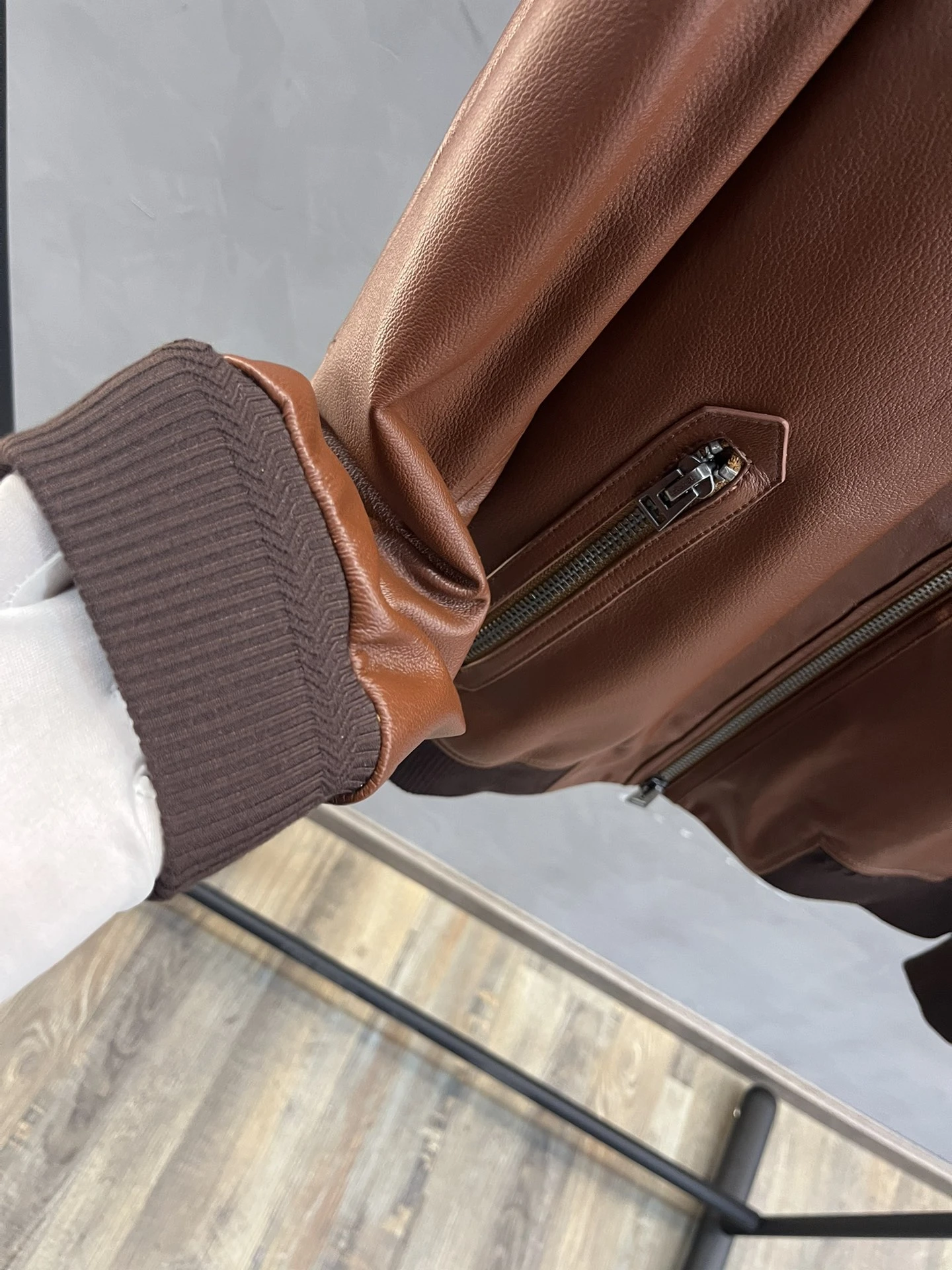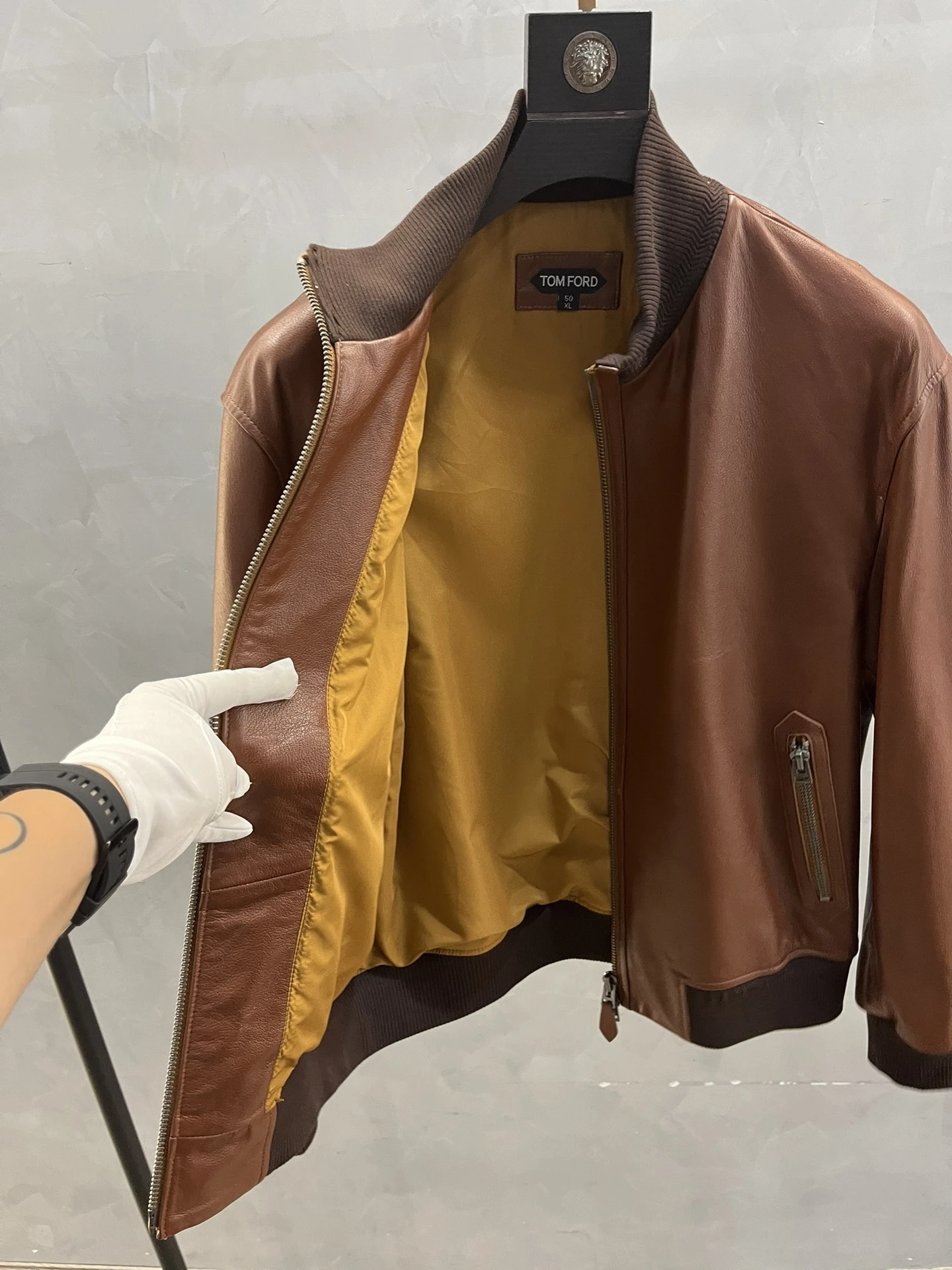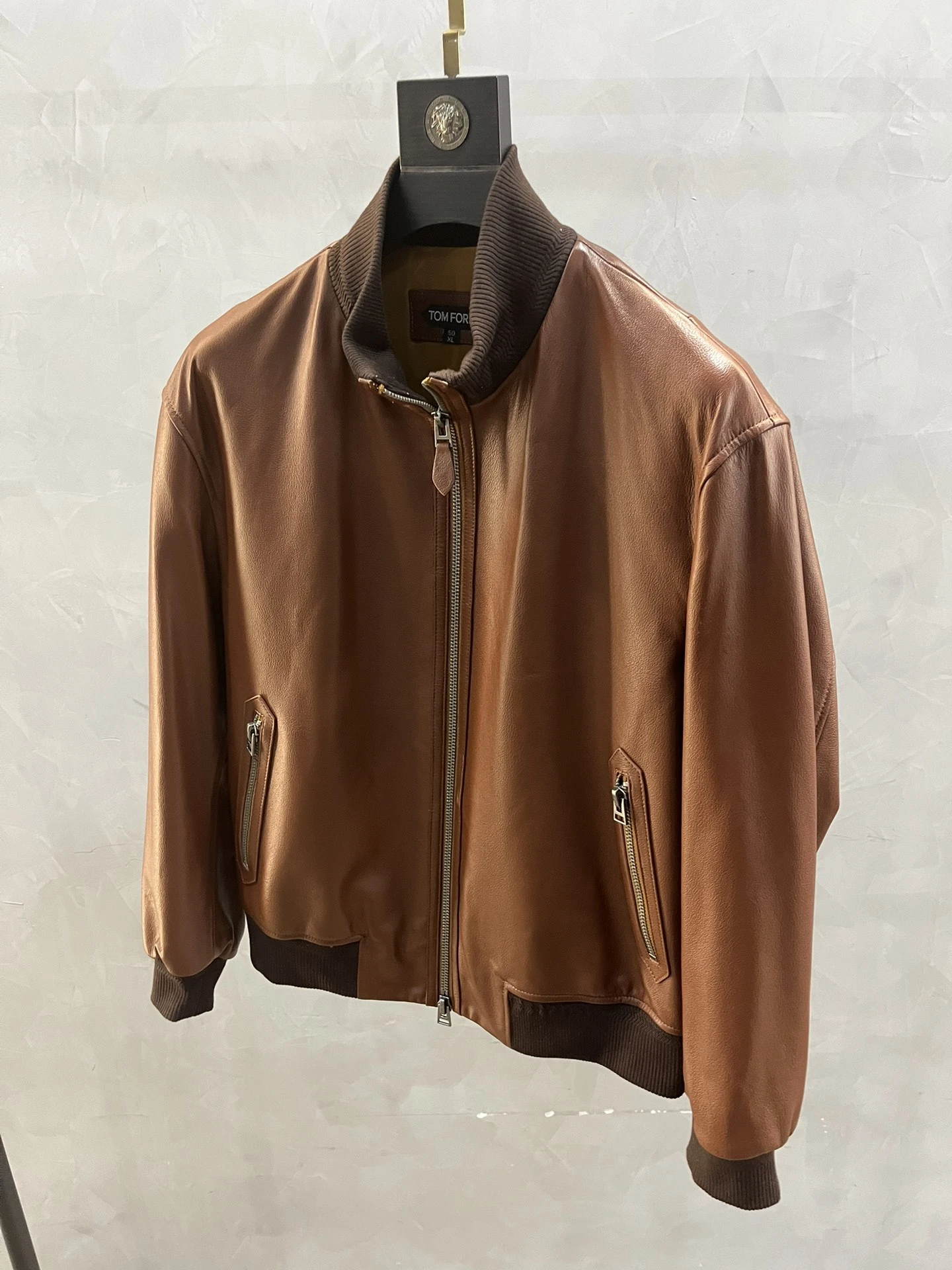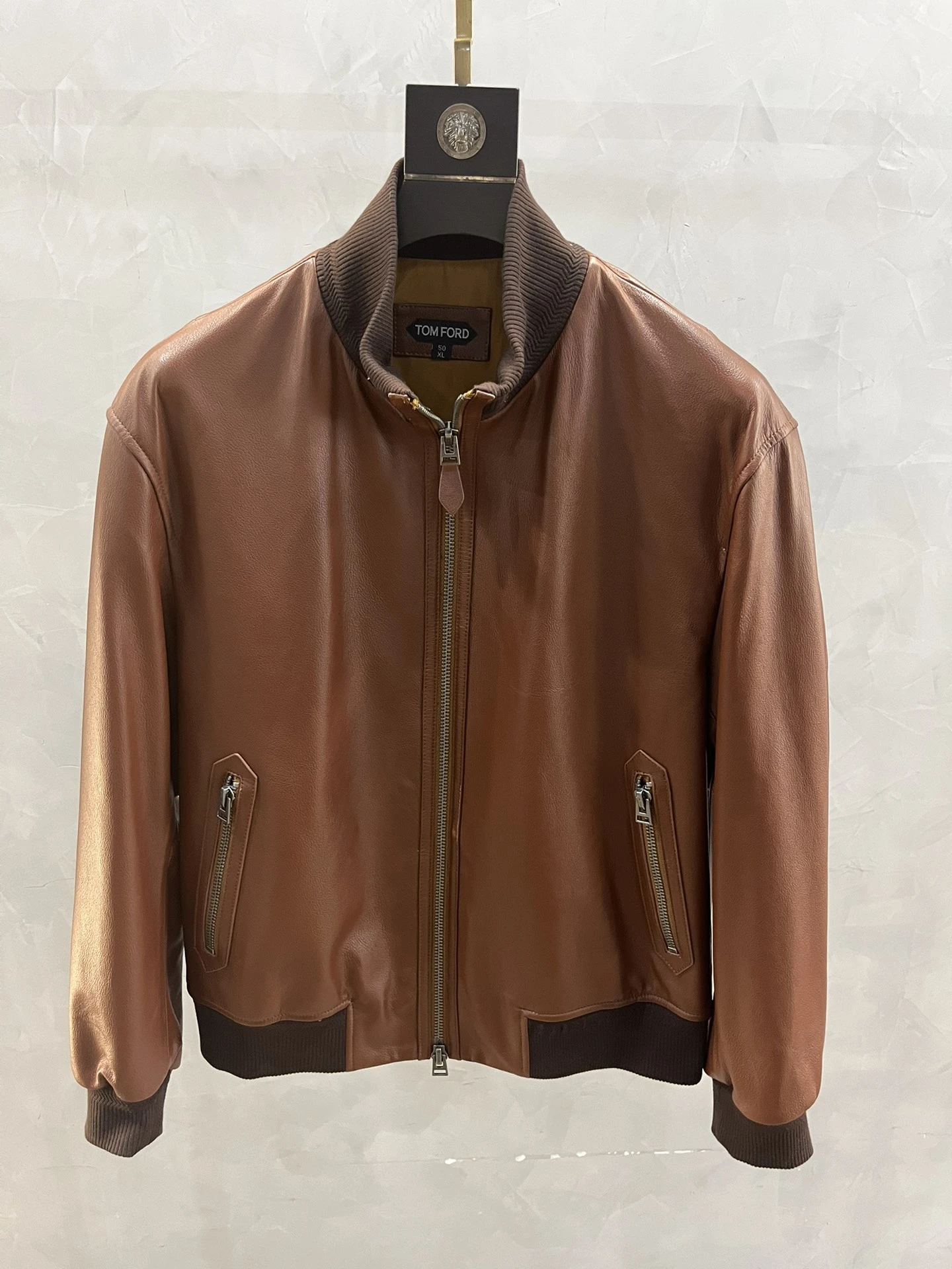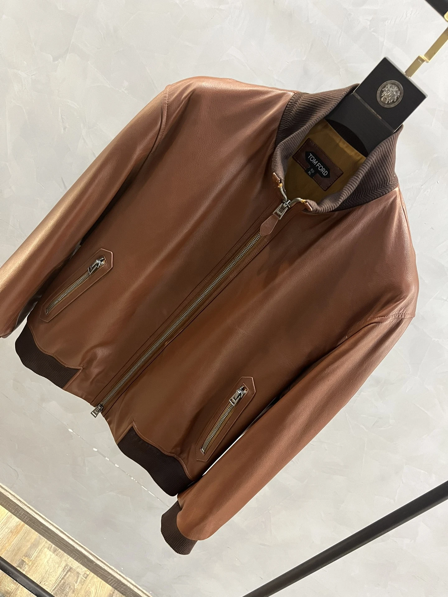 TOM FORD Мужская коричневая кожаная куртка с контрастными манжетами и воротником