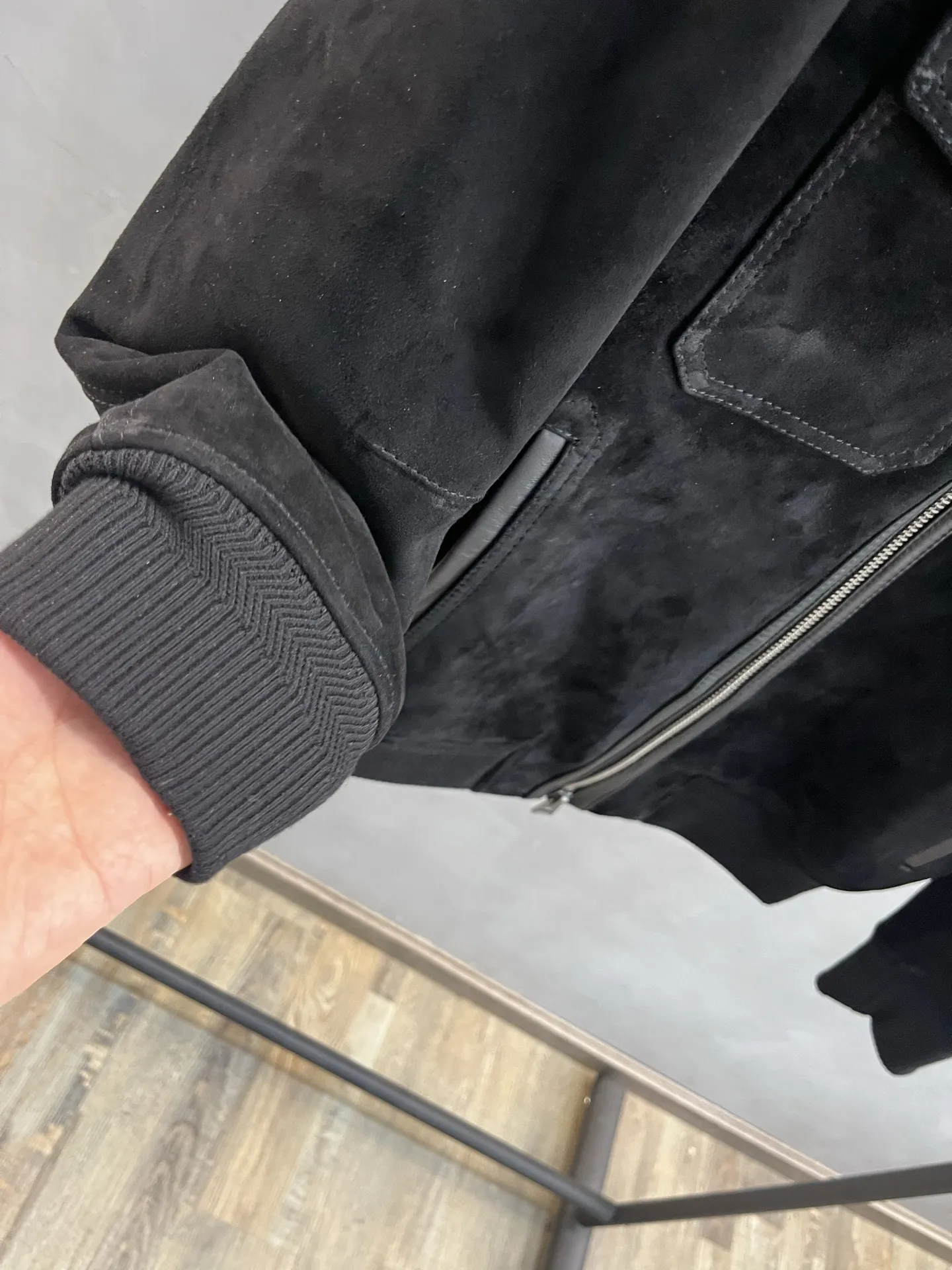 Застежка-молния спереди и ребристые манжеты добавляют стильные акценты. Овечья замша придает изделию мягкость и роскошный вид, что делает его идеальным выбором для создания элегантного и утонченного образа.