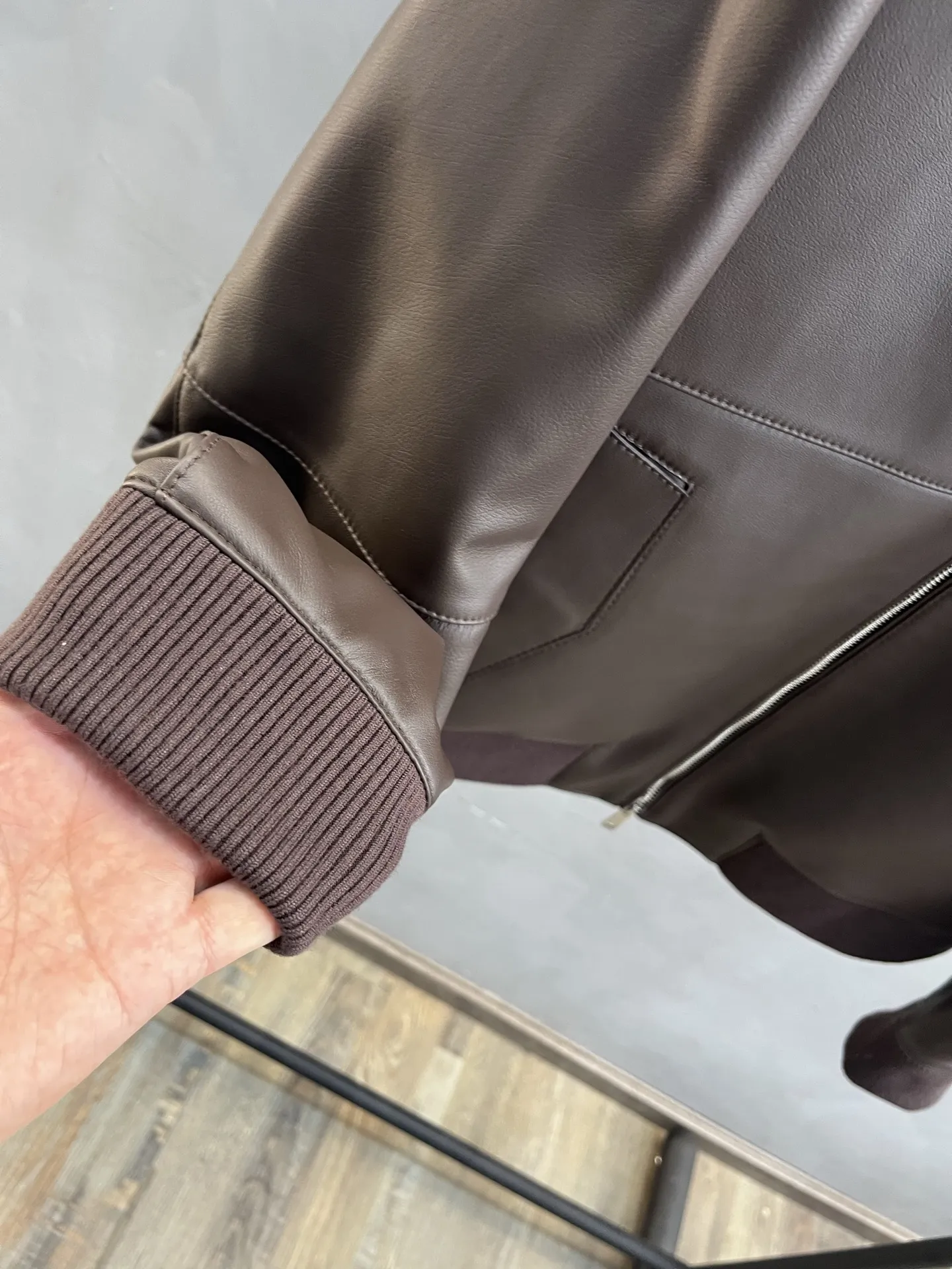 Мужская кожаная куртка от Zegna представляет собой воплощение элегантности и стиля. Изготовленная из высококачественной кожи, она отличается гладкой текстурой и глубоким коричневым оттенком, который придаёт изделию роскошный вид.