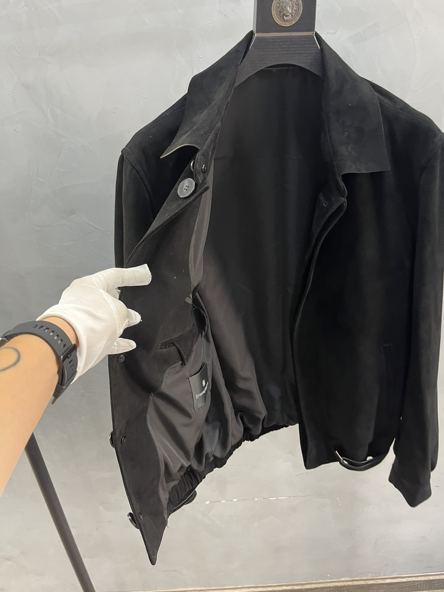 Мужская куртка от Zegna выполнена из высококачественной новозеландской овечьей замши, что обеспечивает ей исключительную мягкость и элегантный внешний вид. Куртка отличается утонченным дизайном с классическим воротником и скрытой застежкой, что придает ей современный и стильный вид.