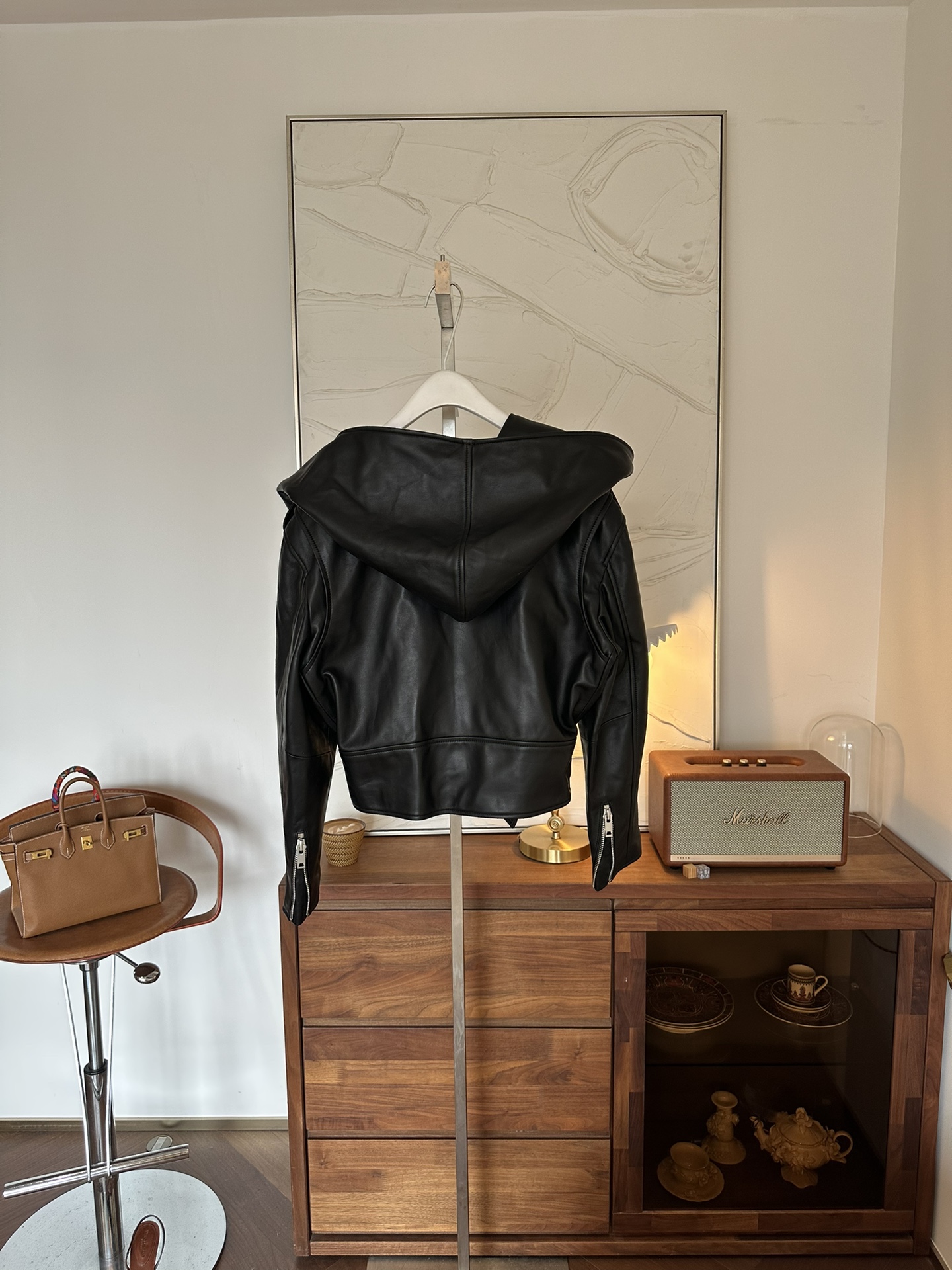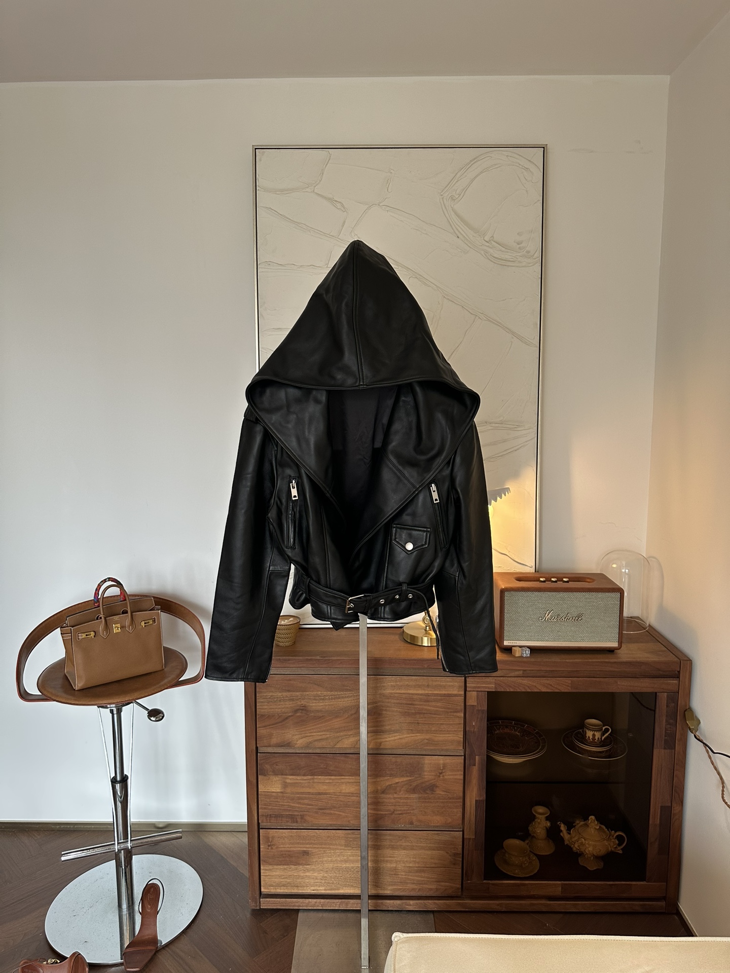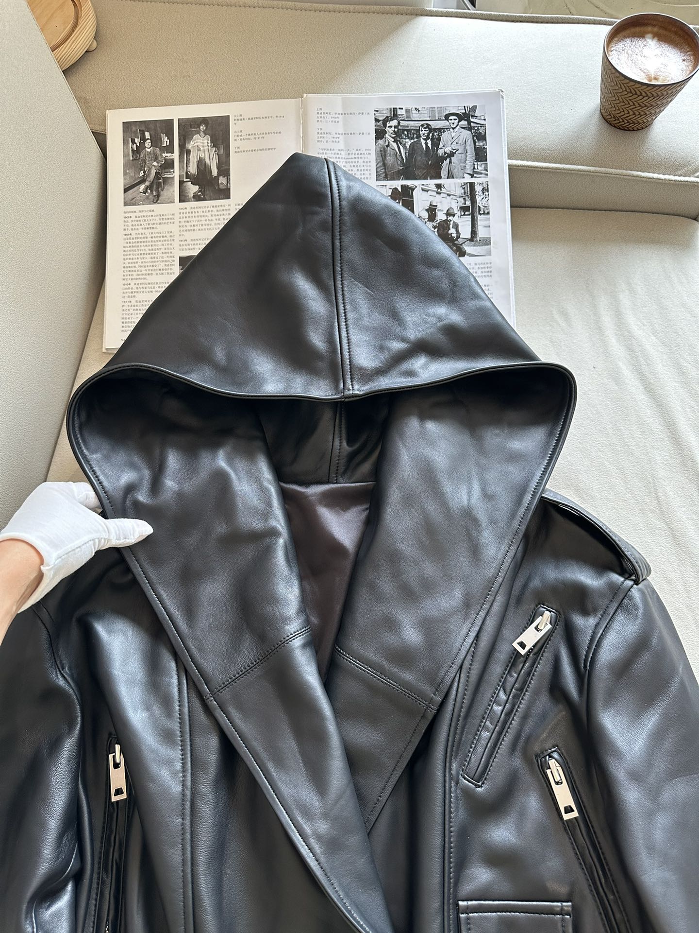 Особенностью куртки является объемный капюшон, который добавляет нотку загадочности и функциональности, защищая от ветра и холода.