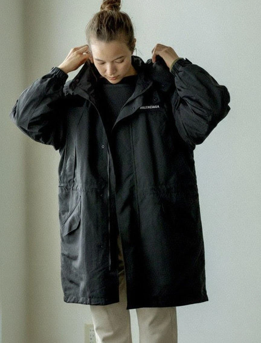 Ветровка Balenciaga на молнии с логотипом — это стильный и современный элемент женской одежды, который отражает характерный для бренда спортивный и уличный стиль. Оверсайз крой, обеспечивает свободу в движениях и легкость. Изготовлена из качественных материалов, обеспечивающих защиту от ветра и дождя, и включают в себя такие детали, как капюшон, кнопки на манжетах и по бокам, а также характерные для Balenciaga яркие логотипы.