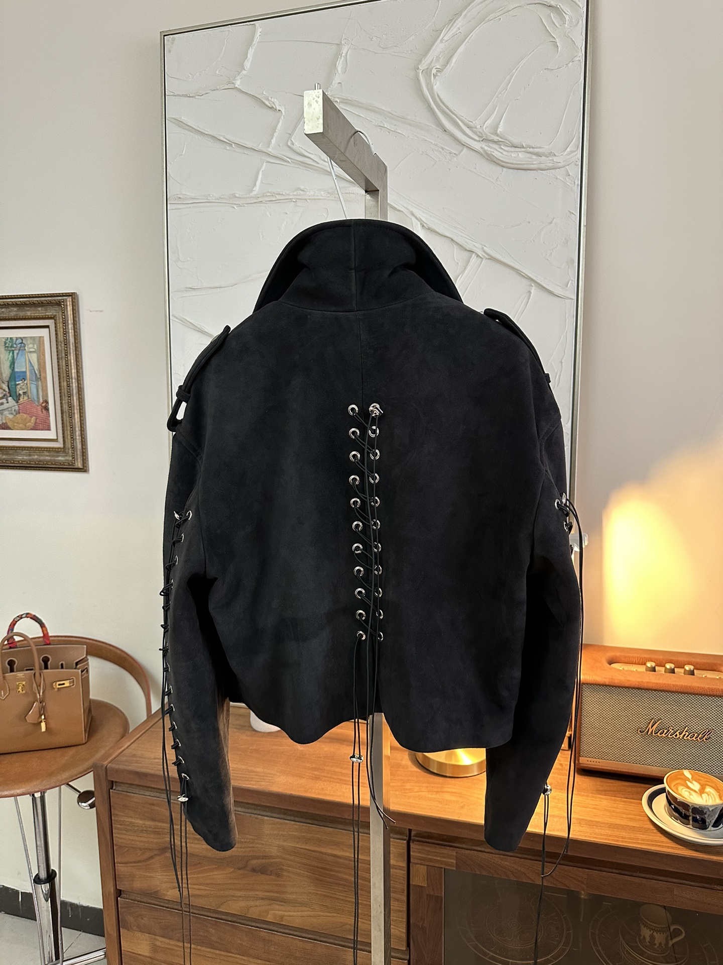 Мягкая текстура замши и универсальный оттенок делают эту куртку идеальным выбором для создания как повседневных, так и вечерних образов. Она станет акцентным элементом вашего гардероба, добавляя нотку элегантности и бунтарского шика.