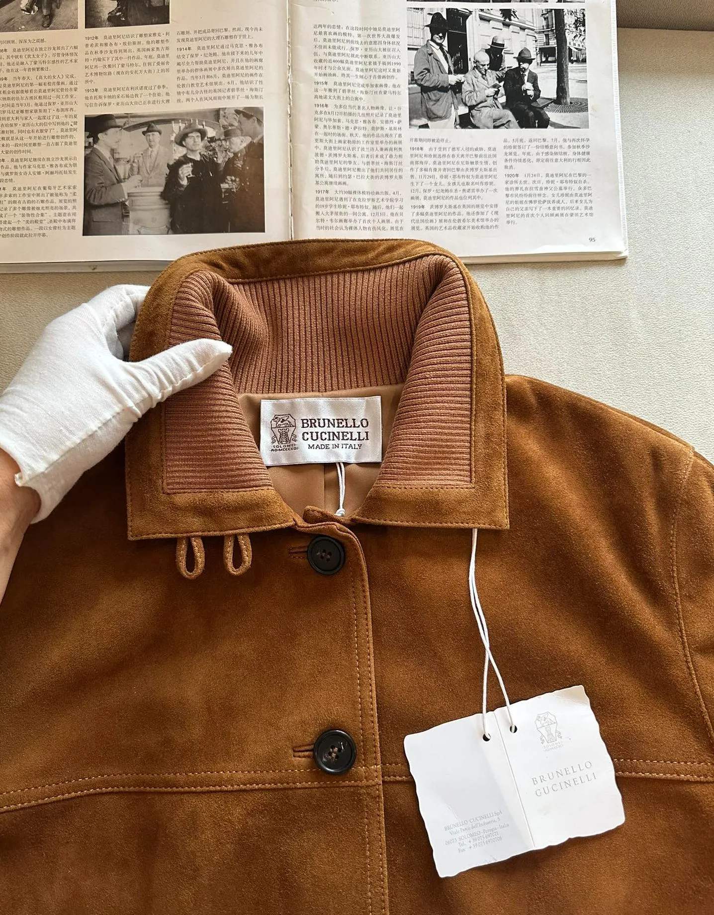 Элегантная женская куртка от итальянского бренда Brunello Cucinelli, выполненная из высококачественной козьей замши, воплощает утонченность и стиль. Глубокий карамельный оттенок материала придает изделию теплый и благородный вид, идеально подходящий для осенне-весеннего сезона.