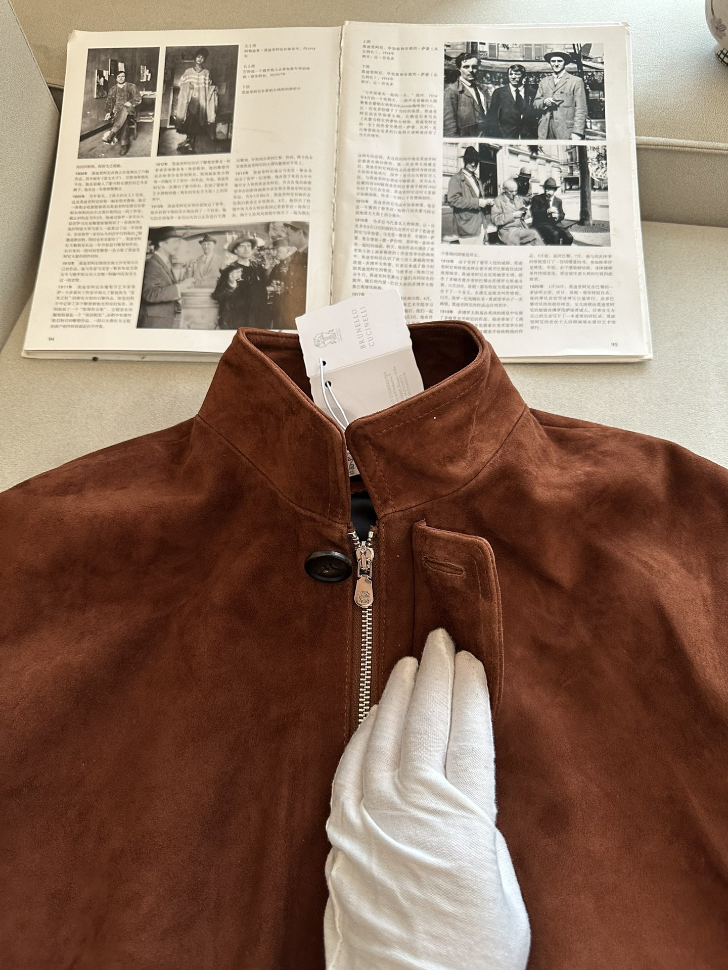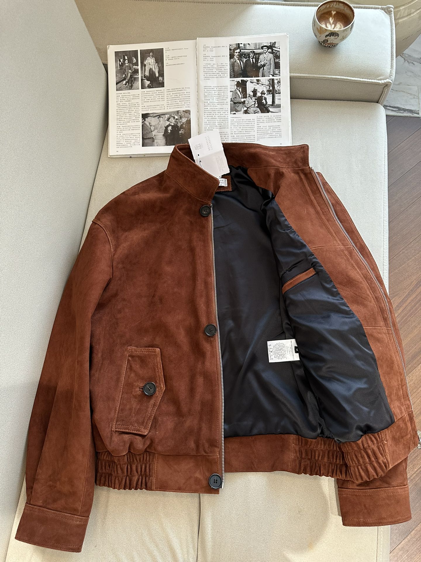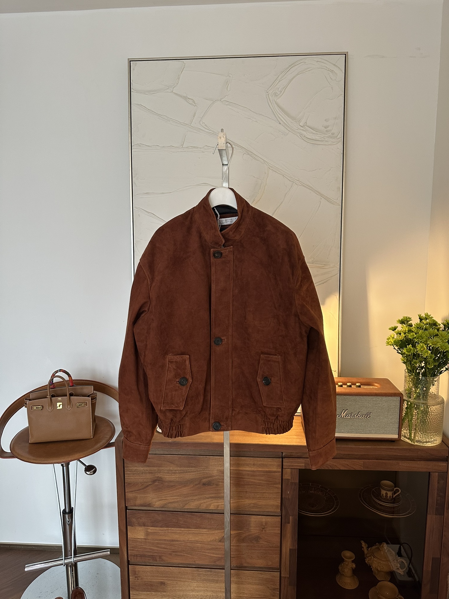 Женская куртка от Brunello Cucinelli из козьей замши — это воплощение безупречного стиля и итальянского качества. Куртка имеет прямой укороченный крой, воротник-стойку и застежку на крупные пуговицы.