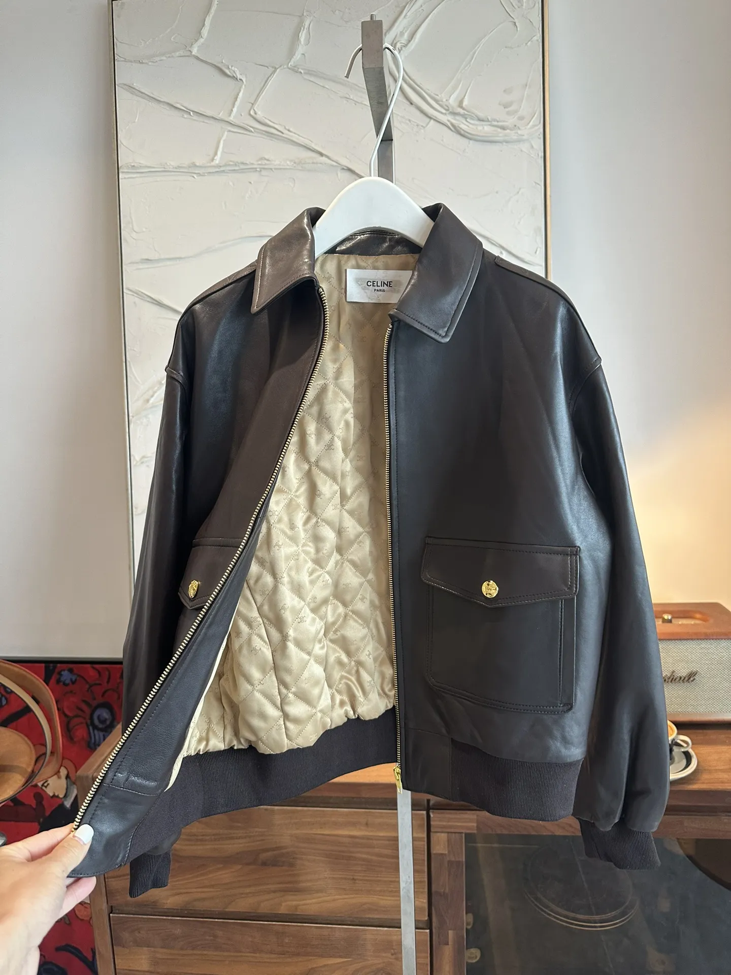 Женская кожаная куртка от Celine воплощает в себе элегантность и утонченность, характерные для французского бренда. Изготовленная из высококачественной кожи, она отличается мягкостью и долговечностью.