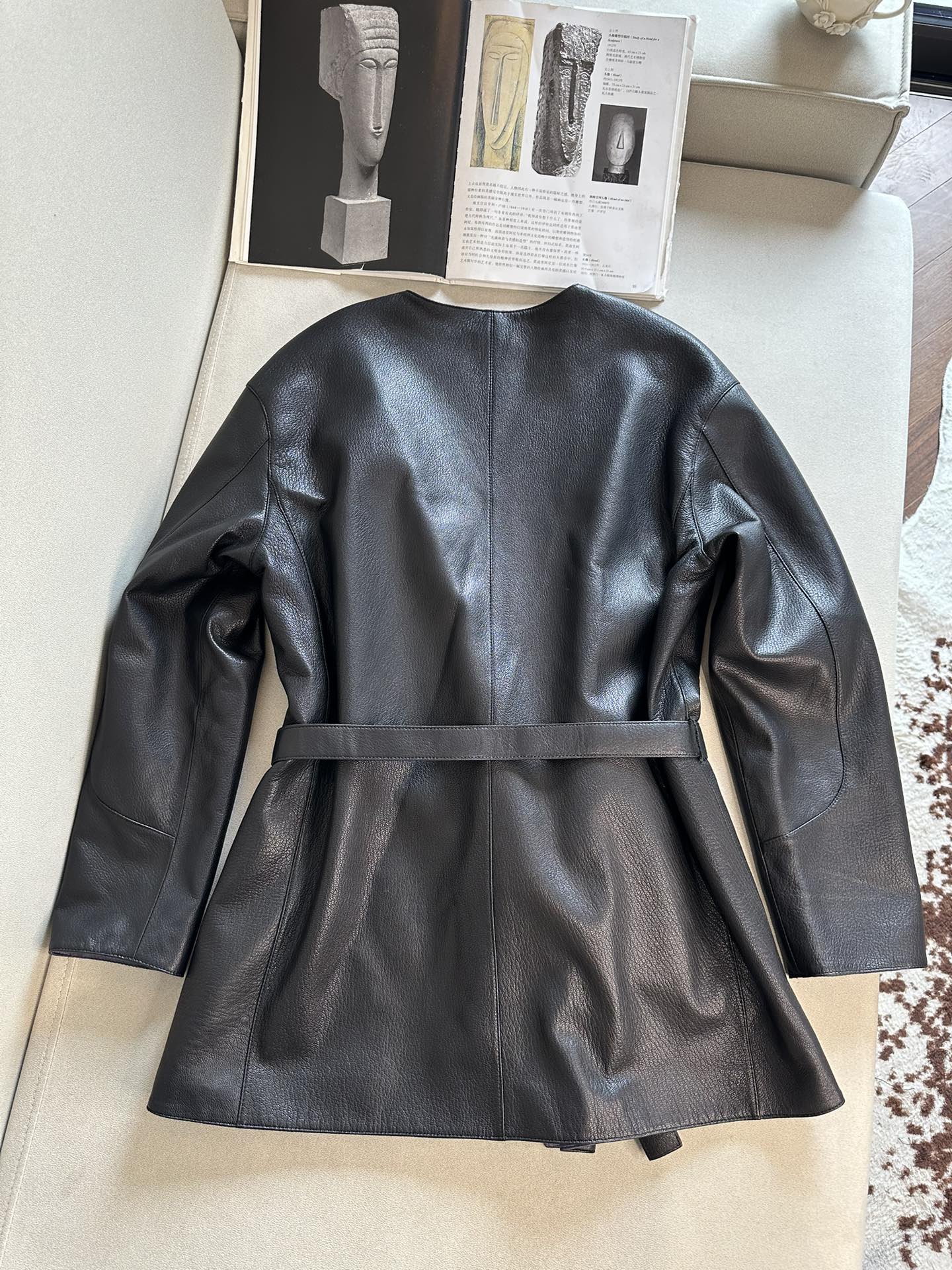 Дизайн отличается минималистичным кроем с акцентом на изысканность и утонченность. Завязывающийся пояс подчеркивает талию, добавляя образу женственности и изящества.