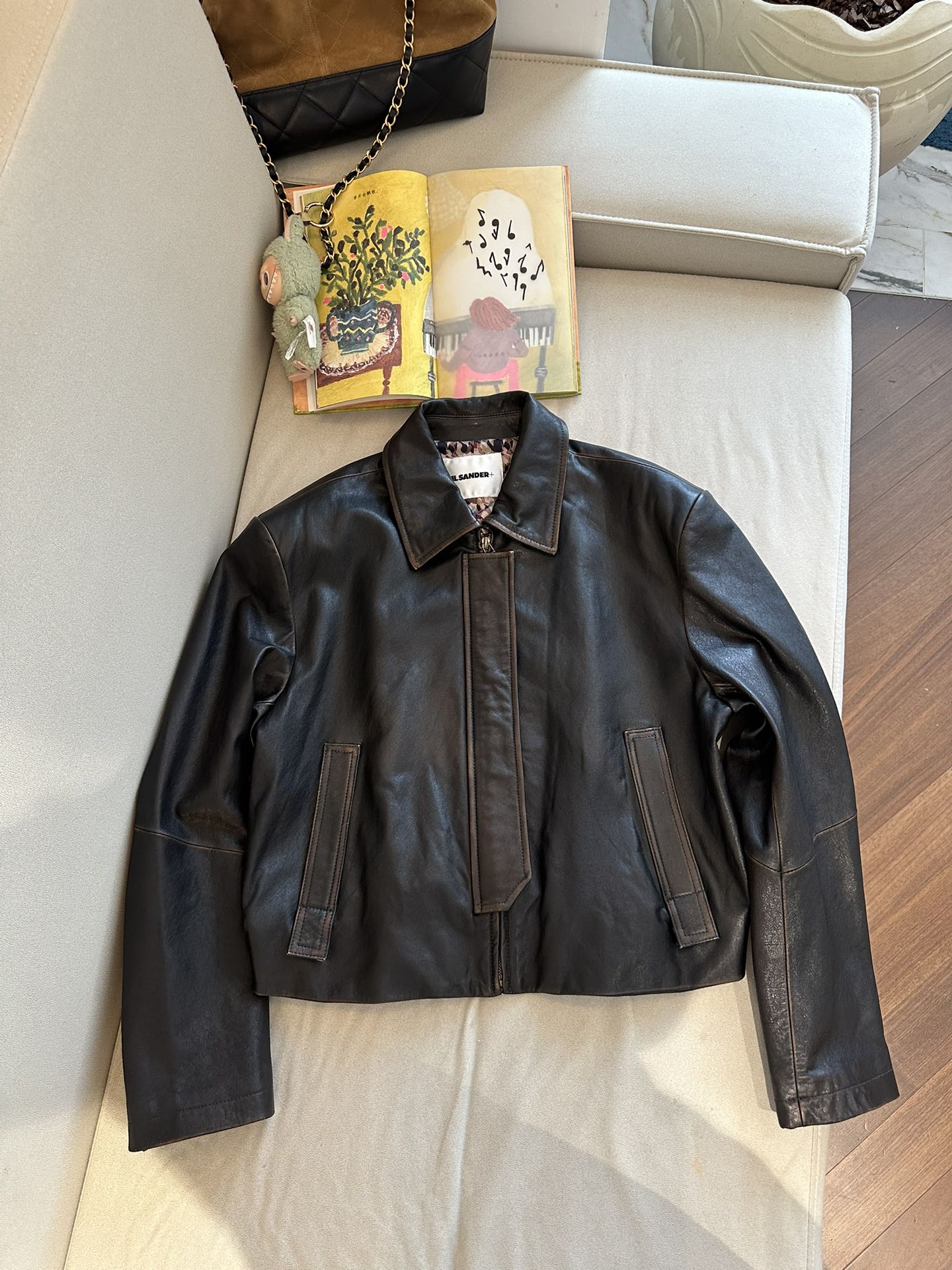 Женская кожаная куртка Jil Sander+ из натуральной коровьей кожи — это воплощение современного минимализма и классического стиля.