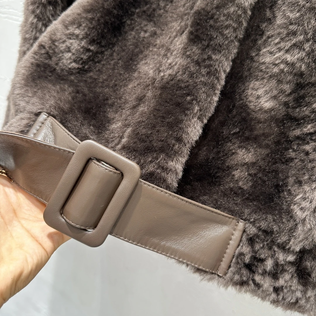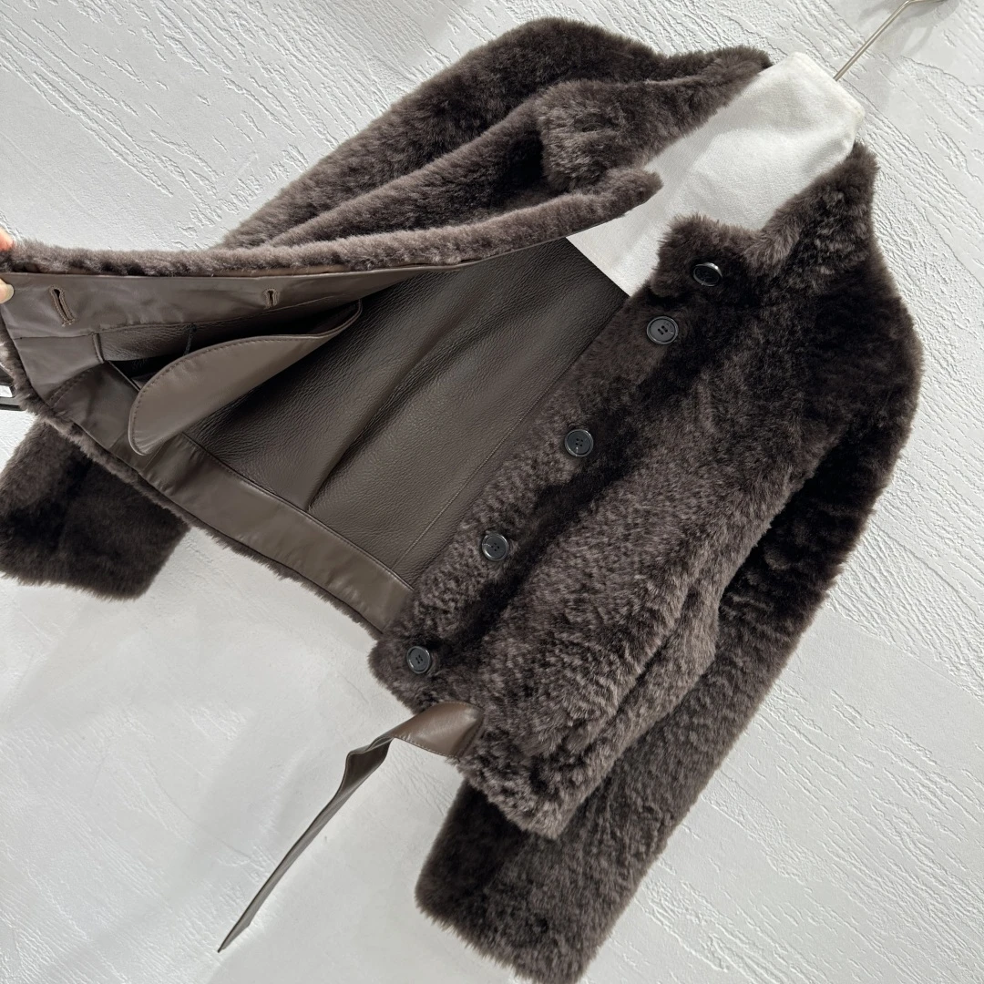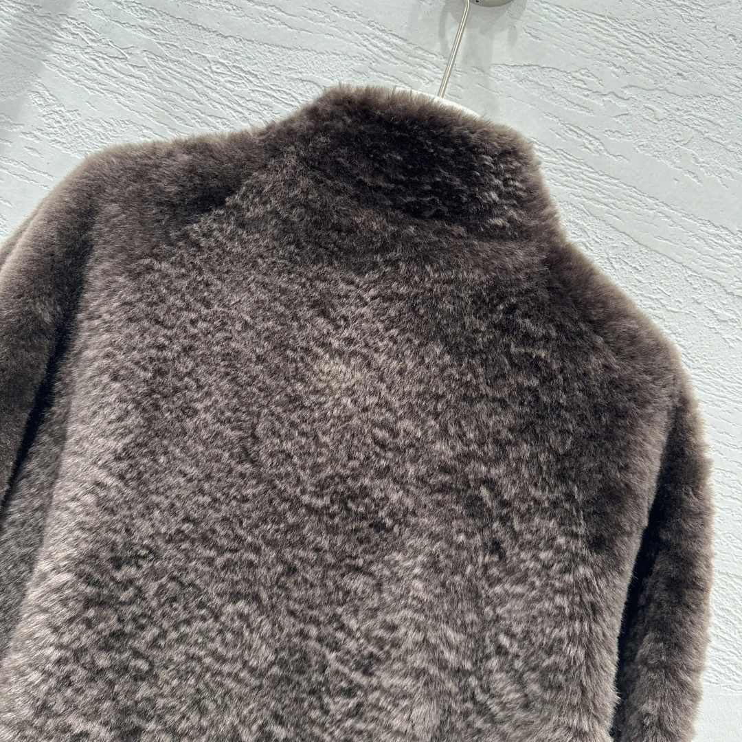 Стильная укороченная куртка от бренда Loewe выполнена из мягкого меха молочного оттенка. Модель отличается лаконичным дизайном: высокая стойка-воротник, застёжка на две крупные пуговицы и декоративная лента на талии, которую можно завязывать. Свободный крой и длинные рукава обеспечивают комфорт и уют в холодное время года. Идеально сочетается как с джинсами, так и с юбкой, добавляя образу элегантность и современный шарм.