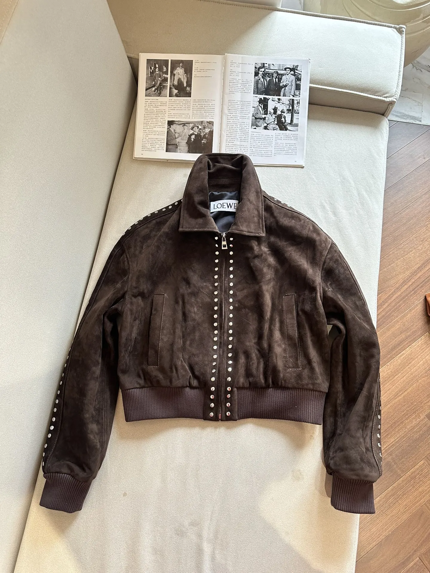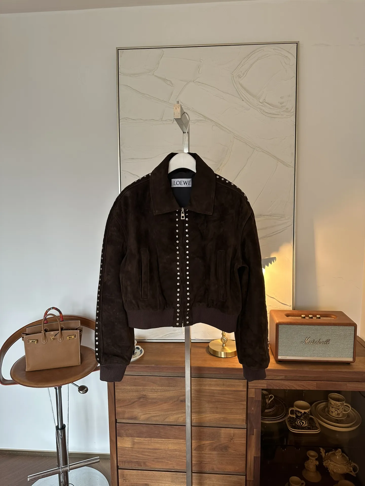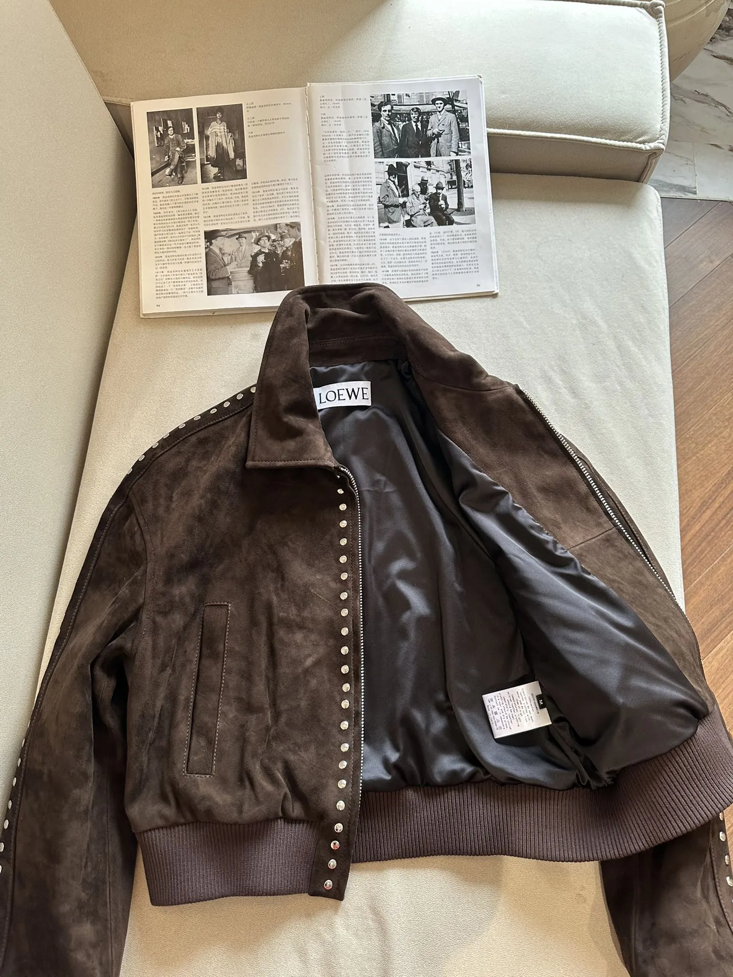 Женская куртка Loewe из высококачественной козьей замши — воплощение утончённого стиля и безупречного качества. Глубокий шоколадный оттенок материала придаёт изделию роскошный и универсальный вид, идеально подходящий для создания как повседневных, так и вечерних образов.