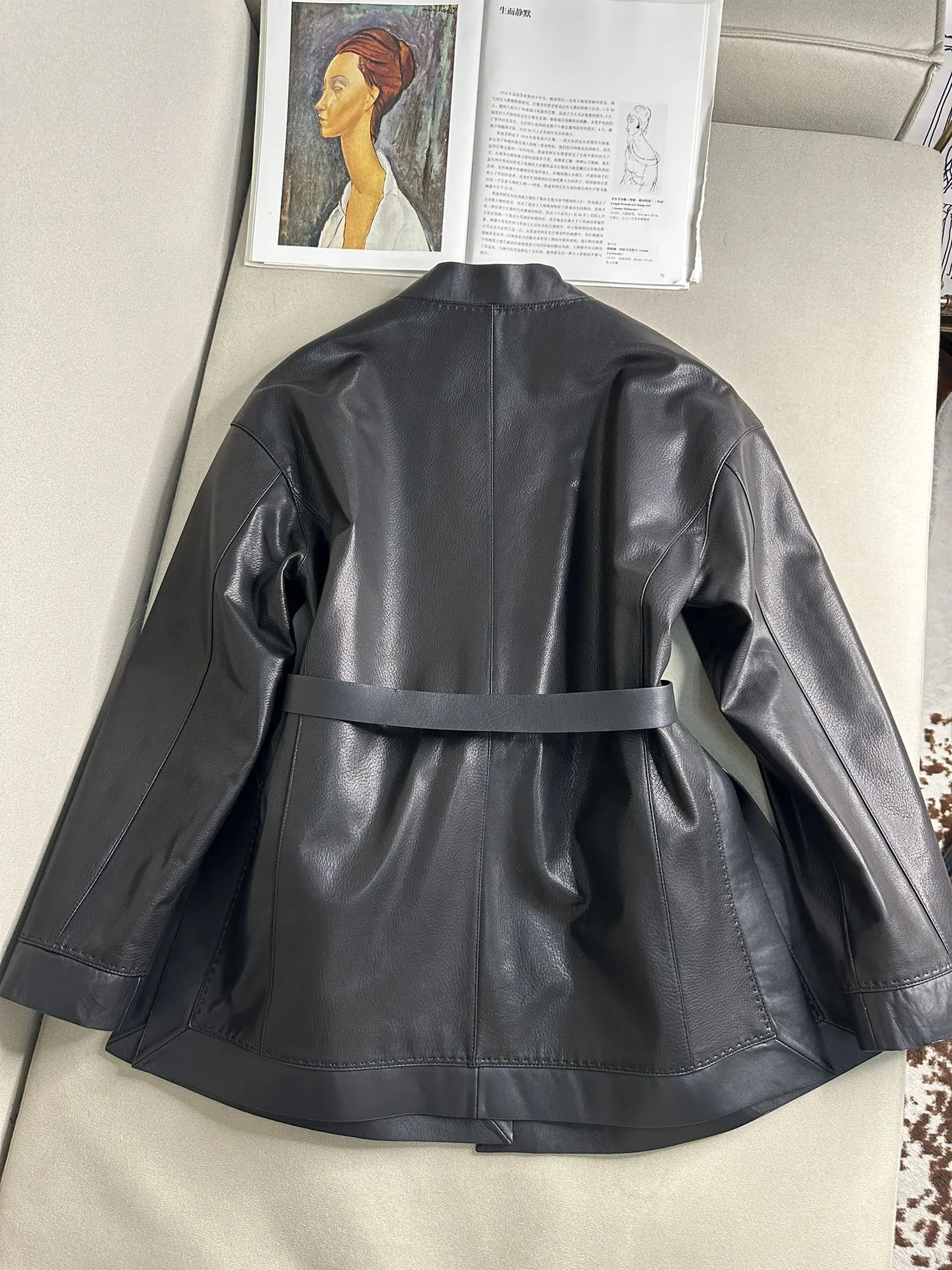Женская кожаная куртка от Loro Piana воплощает в себе элегантность и утонченность, характерные для итальянского бренда. Изготовленная из высококачественной коровьей кожи, она отличается мягкостью и долговечностью.