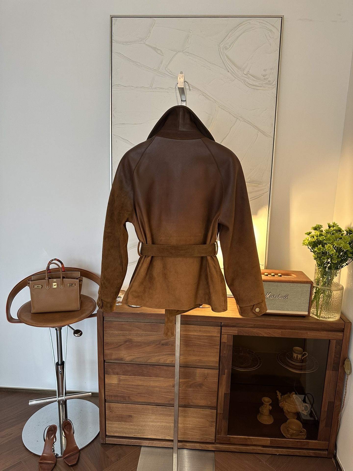 Женская куртка Loro Piana из замши и натуральной коровьей кожи — воплощение элегантности и премиального качества.