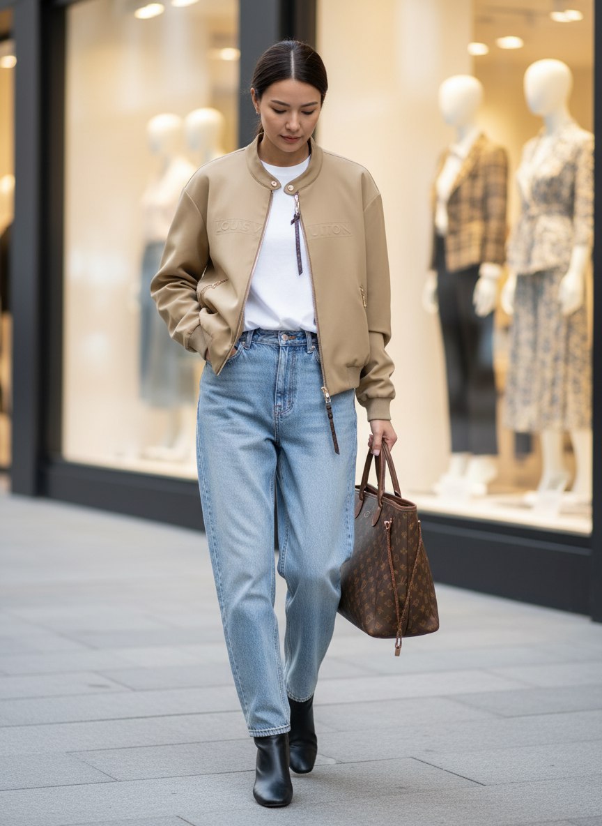 Современный женский бомбер LOUIS VUITTON в лаконичном хакки-оттенке — идеальное сочетание городской элегантности и комфорта. Минималистичный, структурированный силуэт с аккуратной отделкой и благородной золотистой фурнитурой делает эту модель универсальным элементом гардероба — от повседневных образов до более утончённых сочетаний.