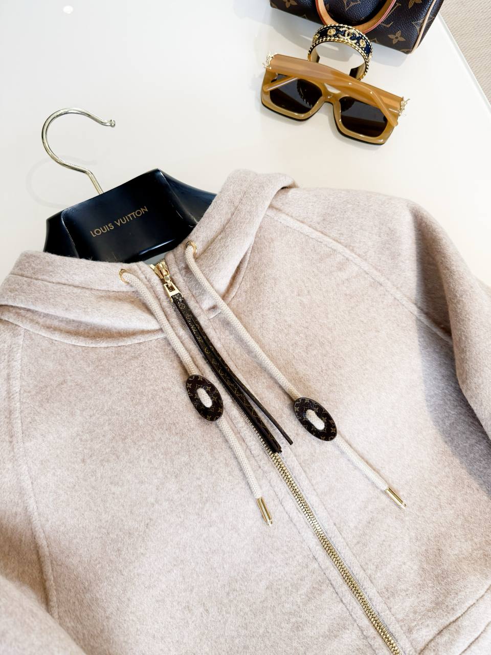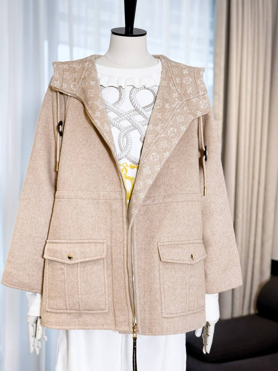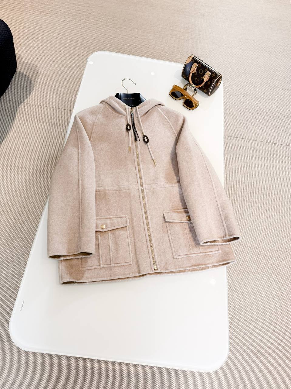 Изысканное женское пальто LOUIS VUITTON в мягком пудрово‑бежевом оттенке — идеальный вариант для городской осени и мягкой зимы. Минималистичный, лаконичный крой сочетается с продуманными деталями: капюшоном на шнурке с декоративными металлическими наконечниками, контрастной молнией и функциональными накладными карманами. Универсальная цветовая гамма и утончённая фактура ткани делают модель легко сочетаемой с гардеробом в любом стиле.