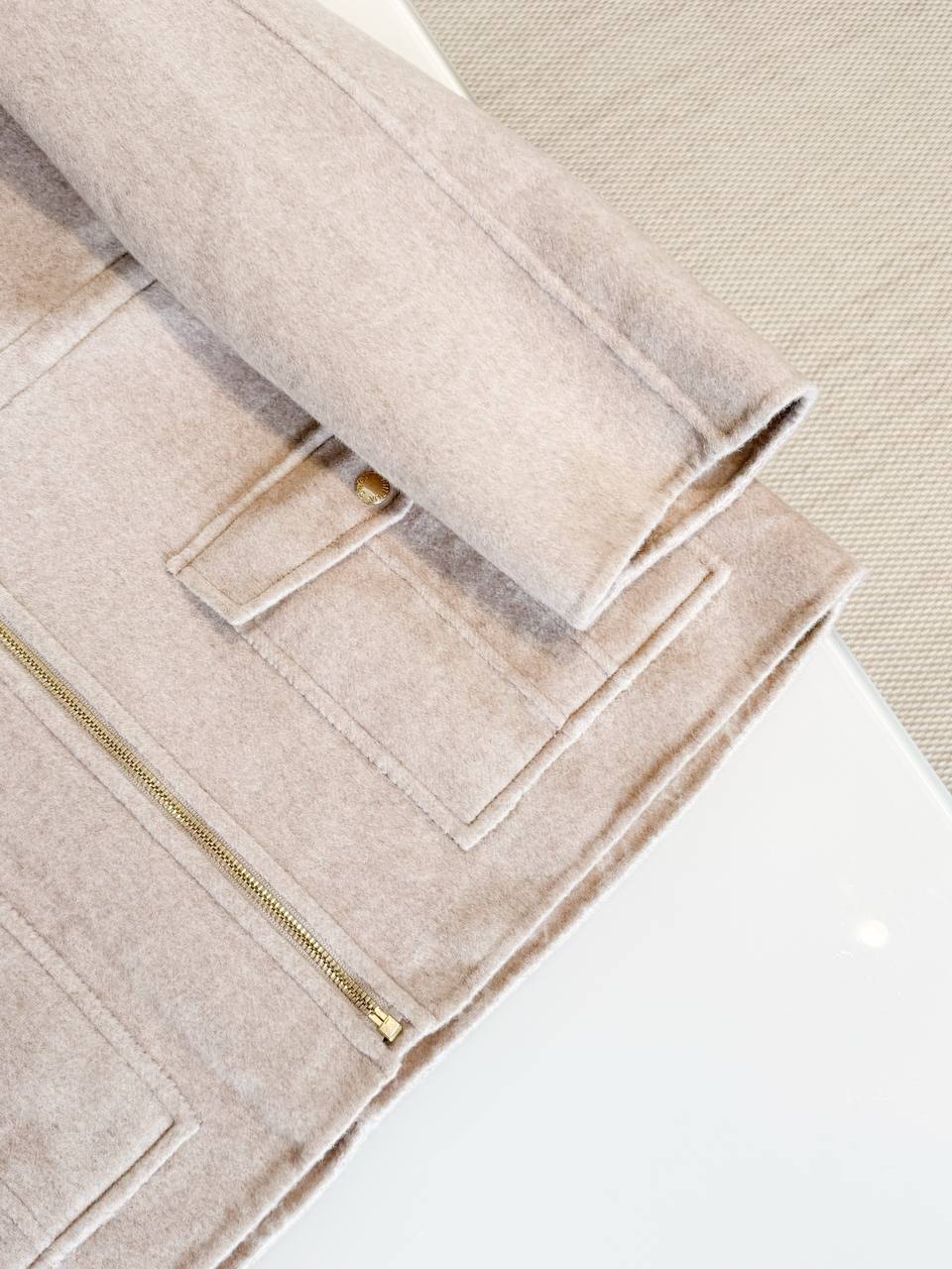 • Центральная застёжка‑молния в тёплом золотистом тоне.