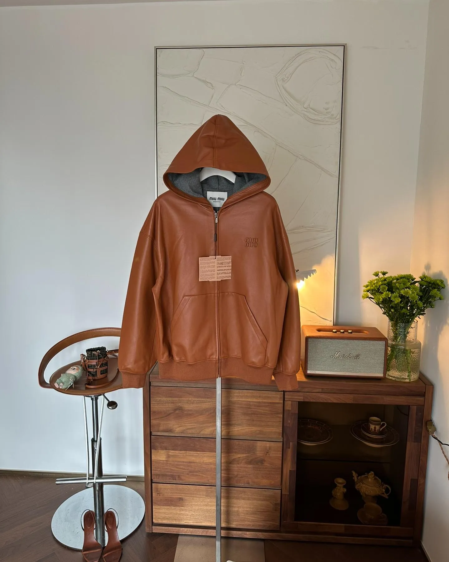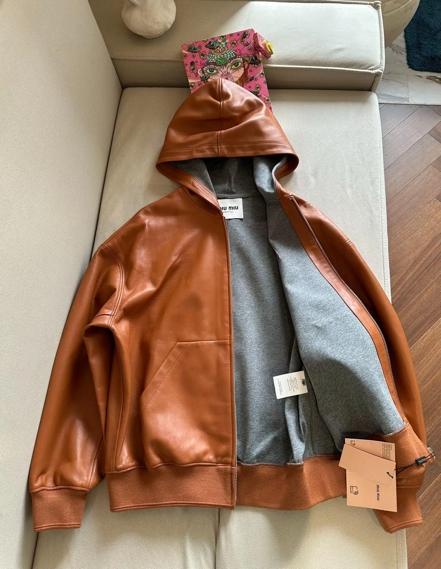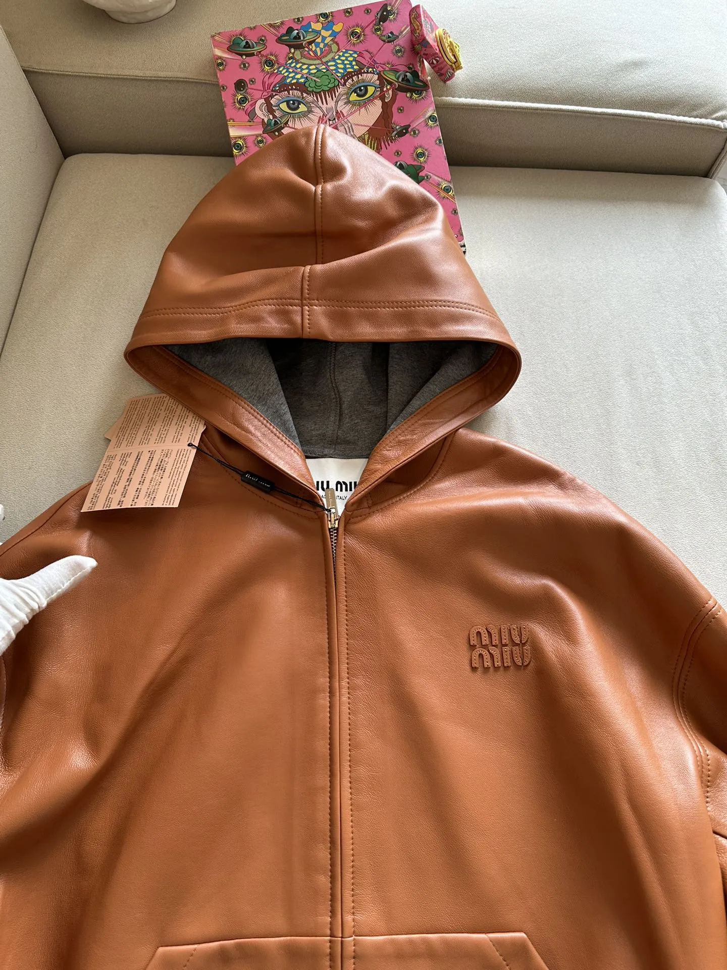 Элегантная женская кожаная куртка MIU MIU из высококачественной новозеландской овчины — воплощение утончённого стиля и безупречного комфорта. Мягкая и гладкая кожа премиального качества обеспечивает приятные тактильные ощущения и долговечность.