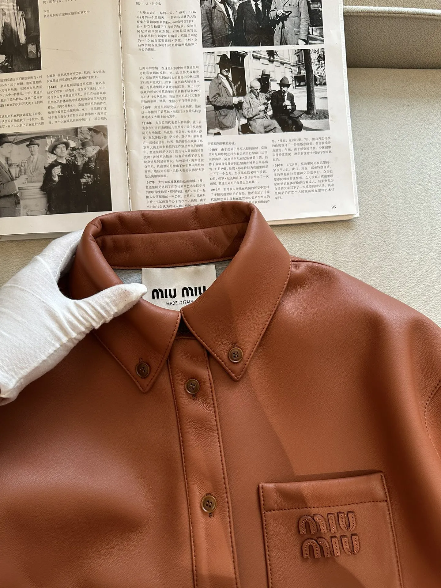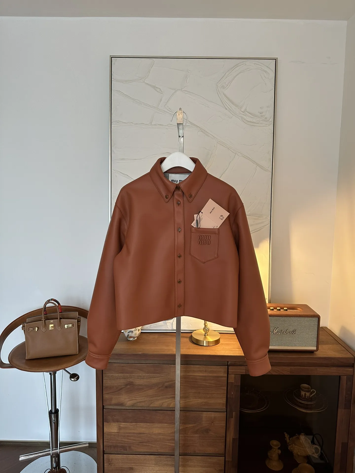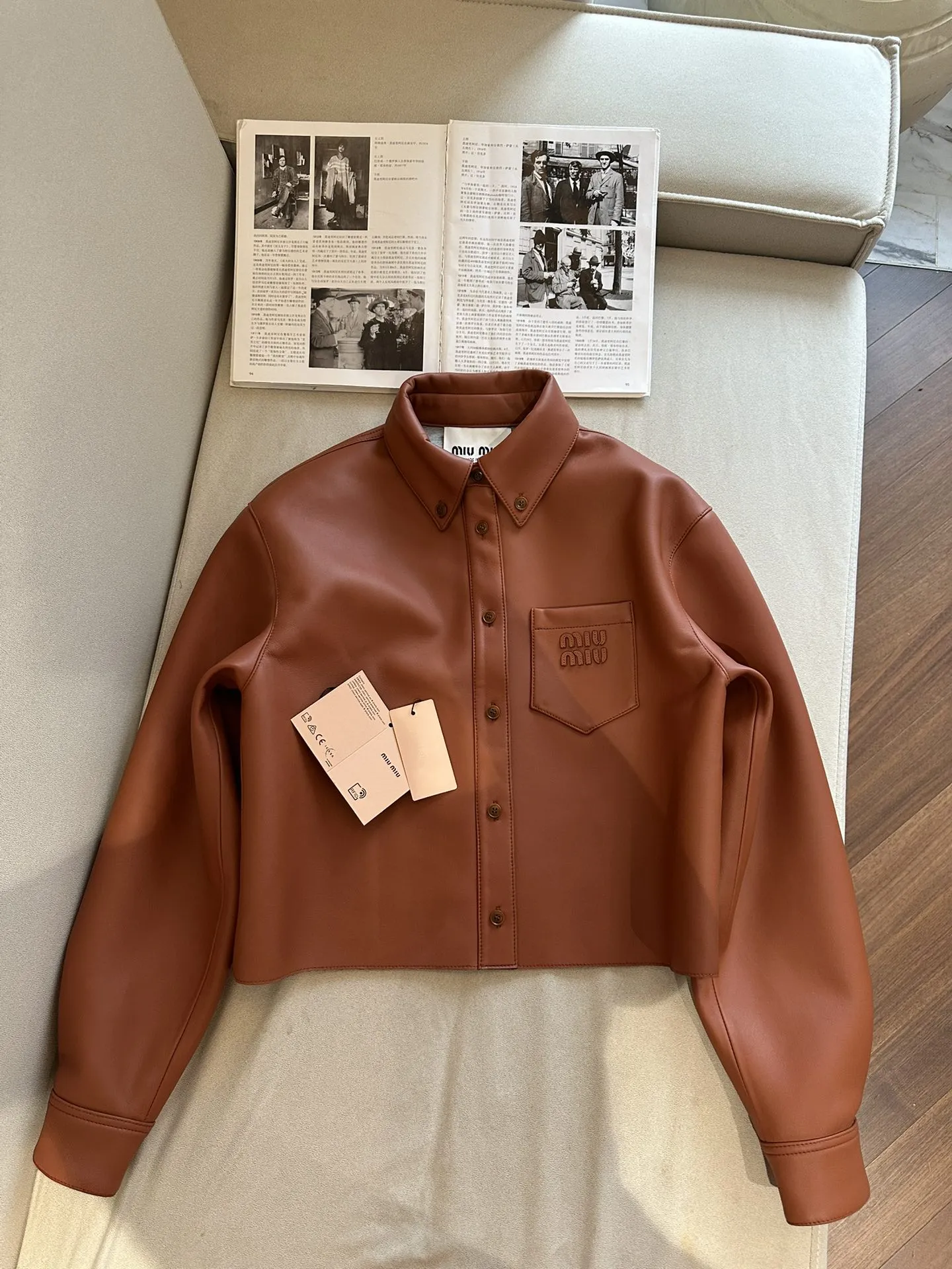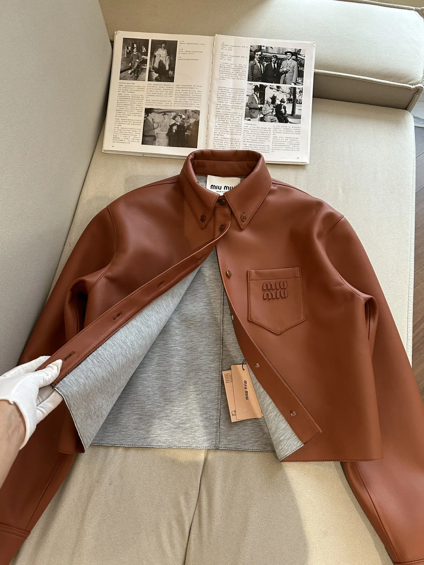 MIU MIU Женская кожаная куртка коричневая короткая