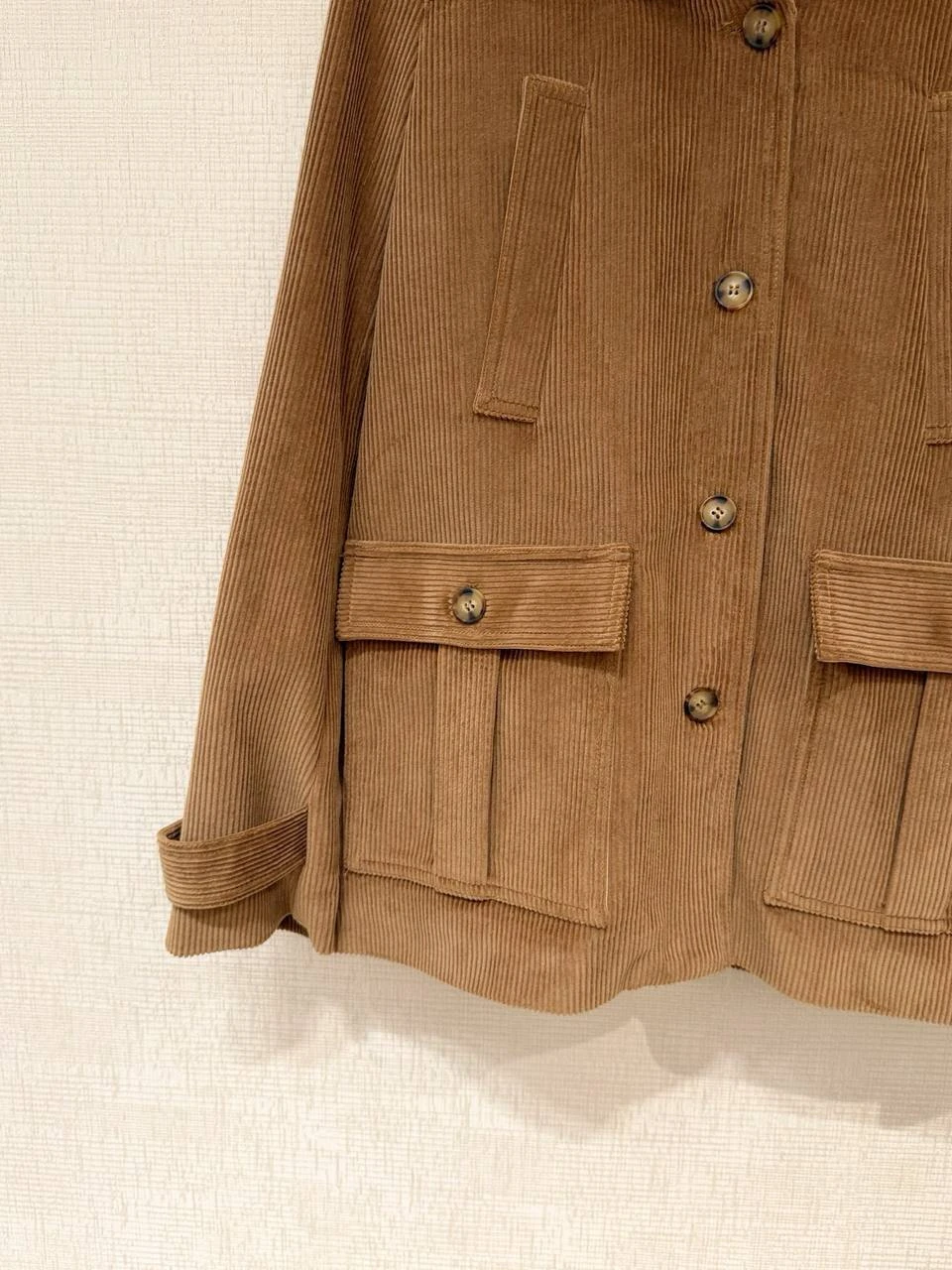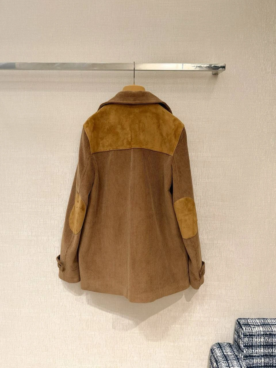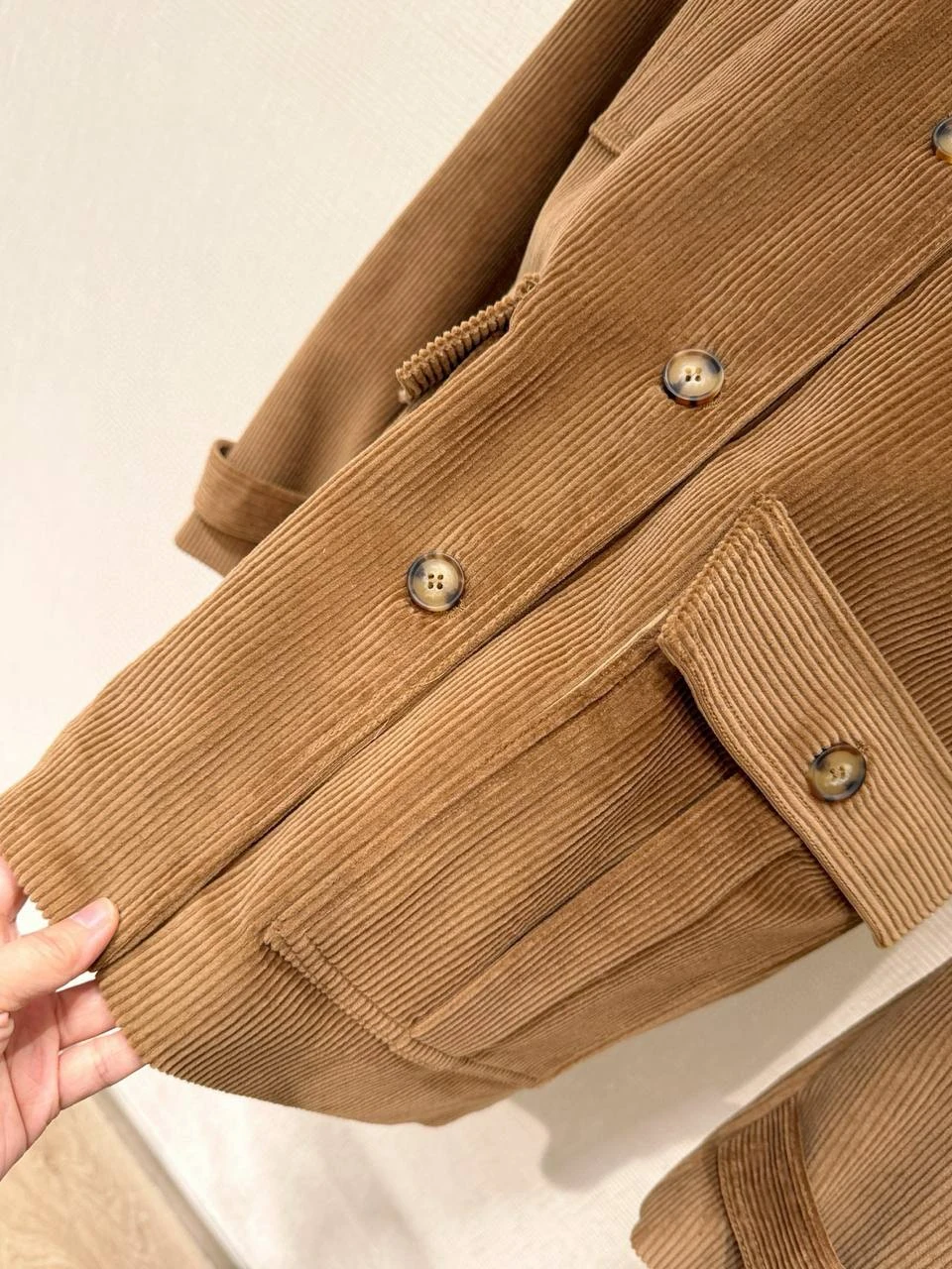 • Материалы и фактура: основной материал — высококачественный вельвет (корд) с выраженным рубчиком; верхняя кокетка и воротник выполнены из контрастного замшеобразного материала, придающего изделию утончённый, структурированный вид. Внутренняя подкладка — гладкая, комфортная к телу.