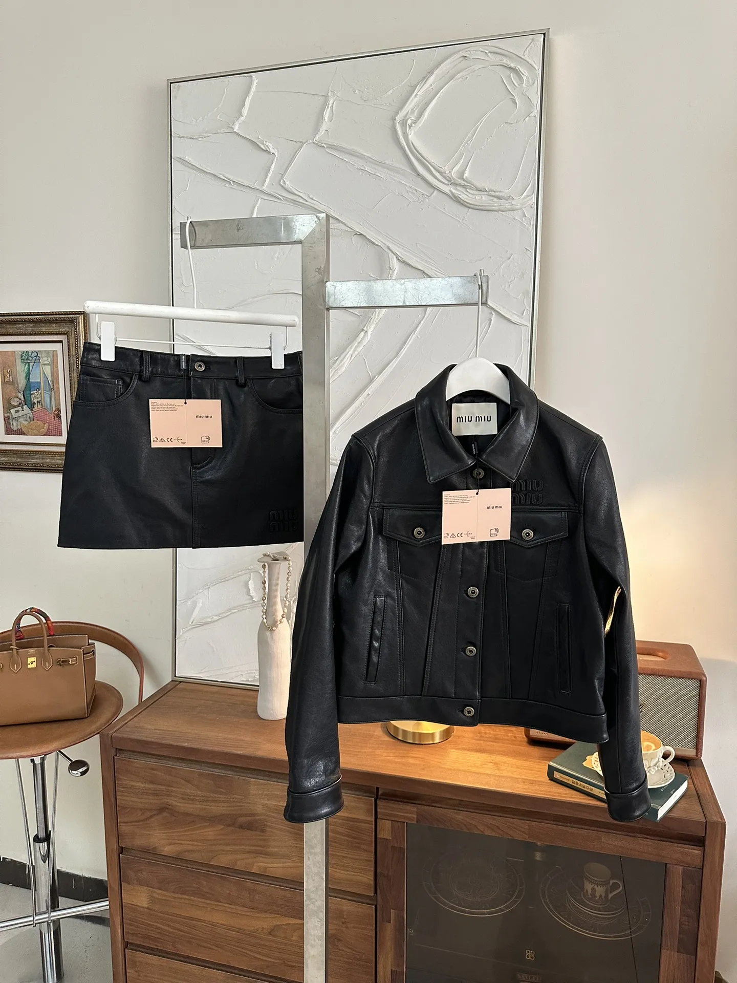 MIU MIU Женский кожаный костюм из высококачественной винтажной коровьей кожи