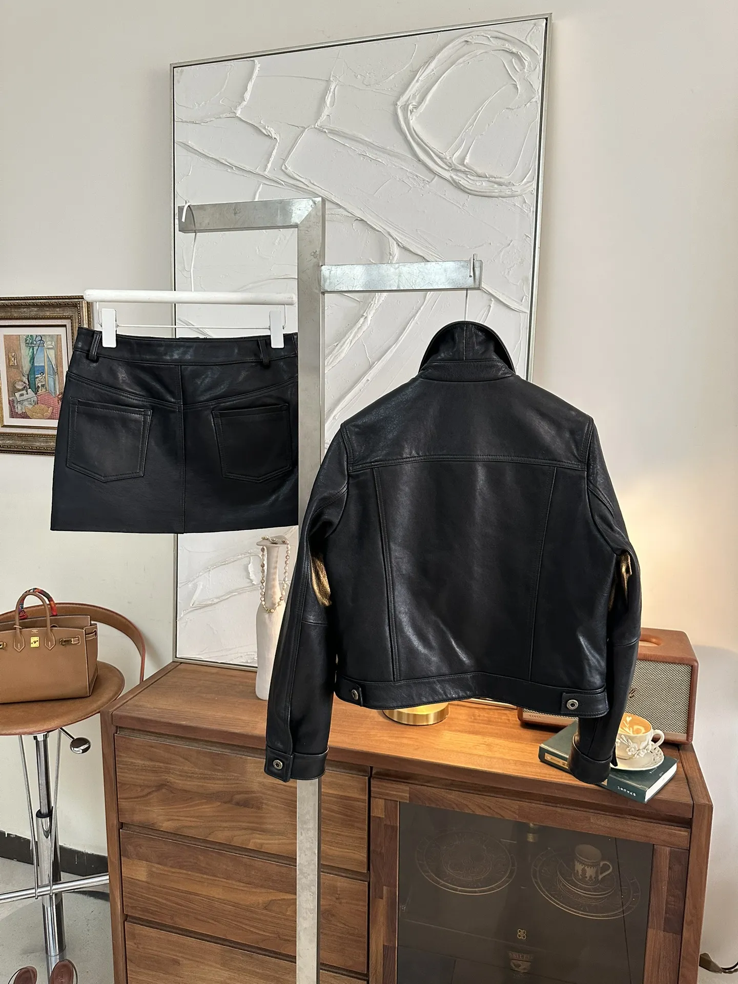 Женский кожаный костюм от Miu Miu — это воплощение элегантности и дерзости в одном образе. Изготовленный из высококачественной винтажной коровьей кожи, он сочетает в себе роскошь и долговечность.