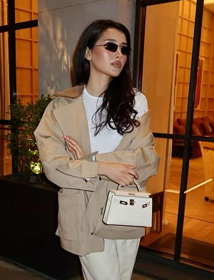 Два накладных кармана с клапанами добавляют практичных акцентов, сохраняя элегантность и строгость силуэта.