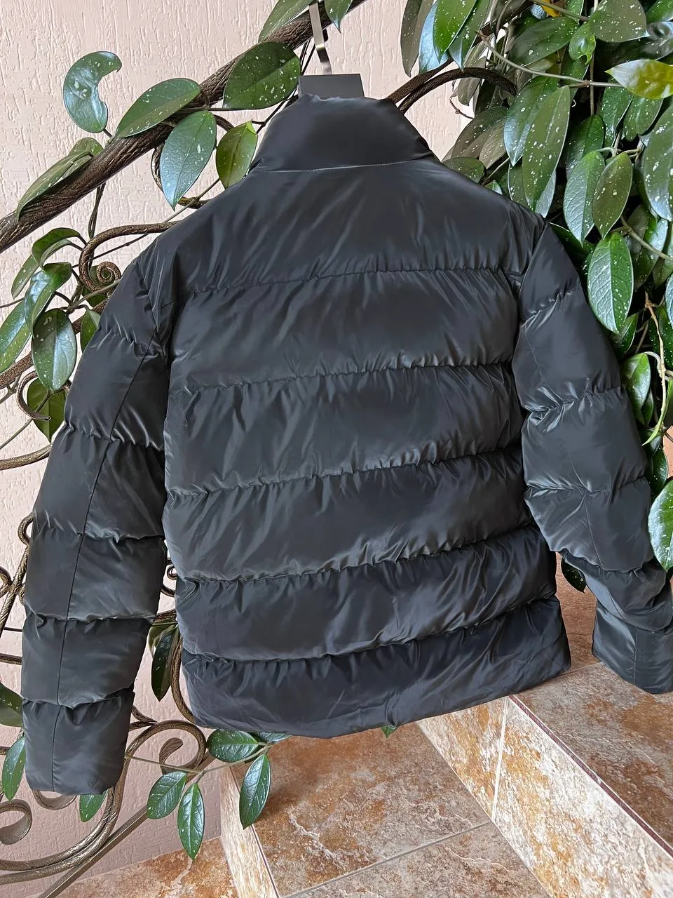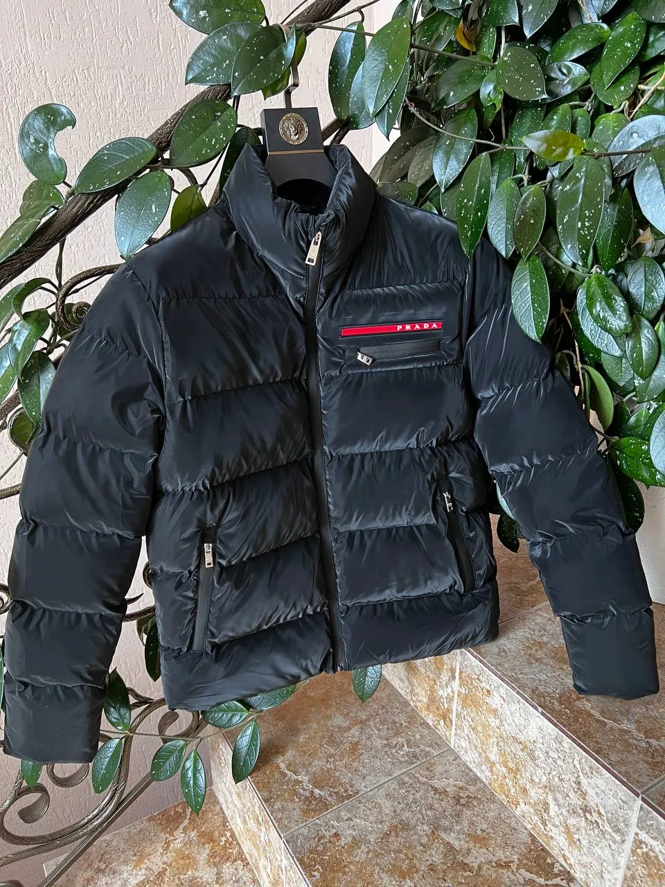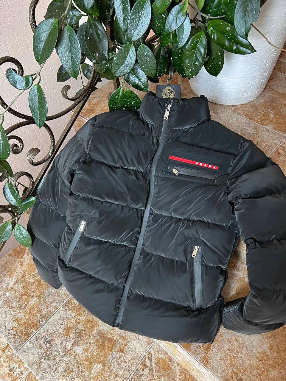 Эта черная укороченная куртка от Prada — идеальное сочетание элегантности и функциональности. Изготовленная из высококачественных материалов, она обеспечивает превосходное тепло благодаря наполнению из 100% натурального пуха. Куртка имеет стройный силуэт, подчеркивающий фигуру, и стильный дизайн, что делает её универсальной для различных сочетаний.