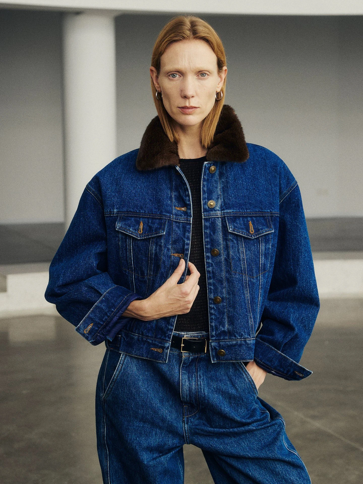 SAINT LAURENT Женская джинсовая куртка с мехом
