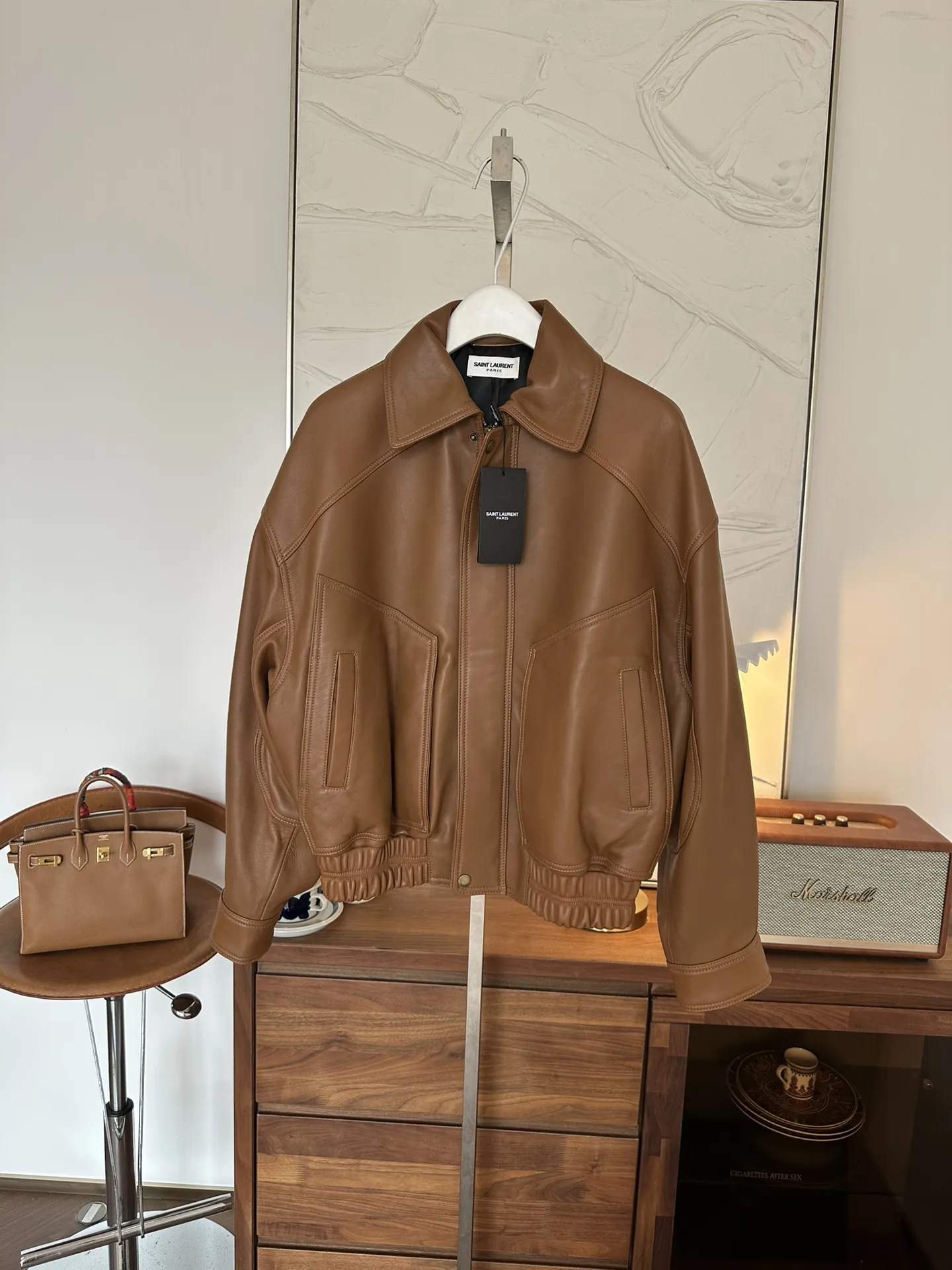 Женская кожаная куртка от Yves Saint Laurent (YSL) — воплощение элегантности и утончённого стиля. Выполненная из высококачественной овчины, она отличается мягкостью, долговечностью и роскошным внешним видом. Теплый карамельный оттенок придаёт модели универсальность, позволяя легко сочетать её с различными образами.
