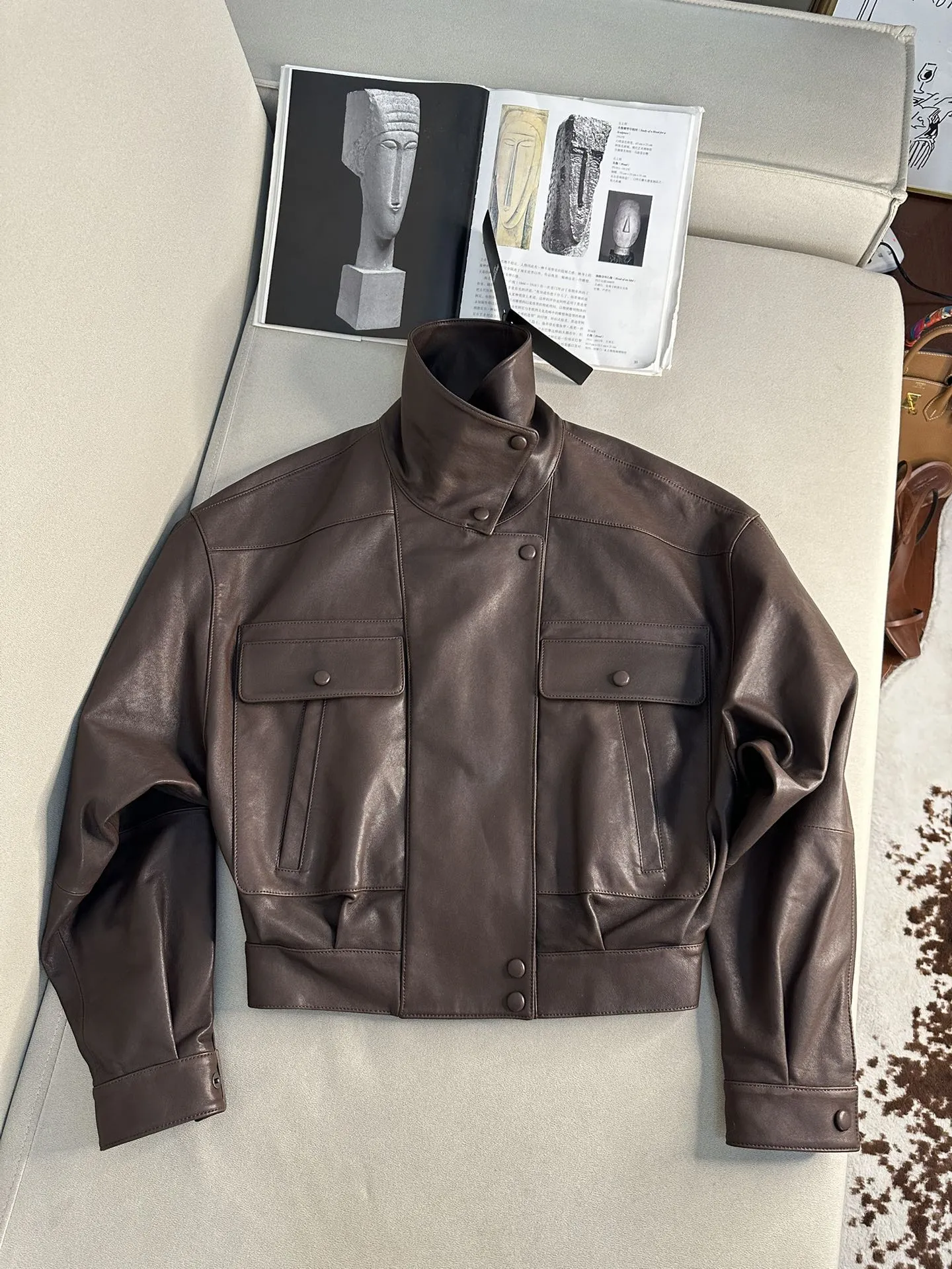SAINT LAURENT Женская кожаная куртка с ассиметричным воротником стойкой