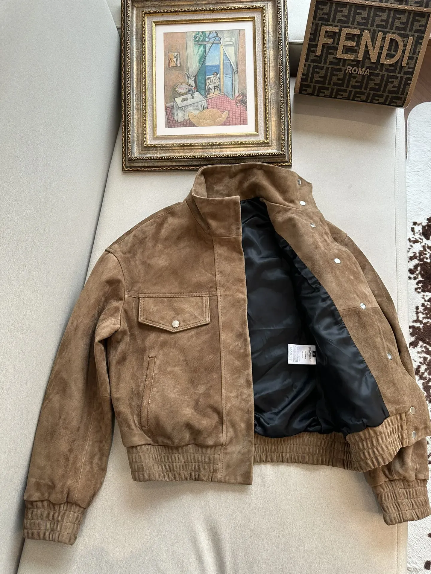 Женская куртка от Yves Saint Laurent (YSL), выполненная из высококачественной козьей замши, воплощает в себе утонченность и стиль. Мягкая текстура материала обеспечивает комфорт и роскошный внешний вид.