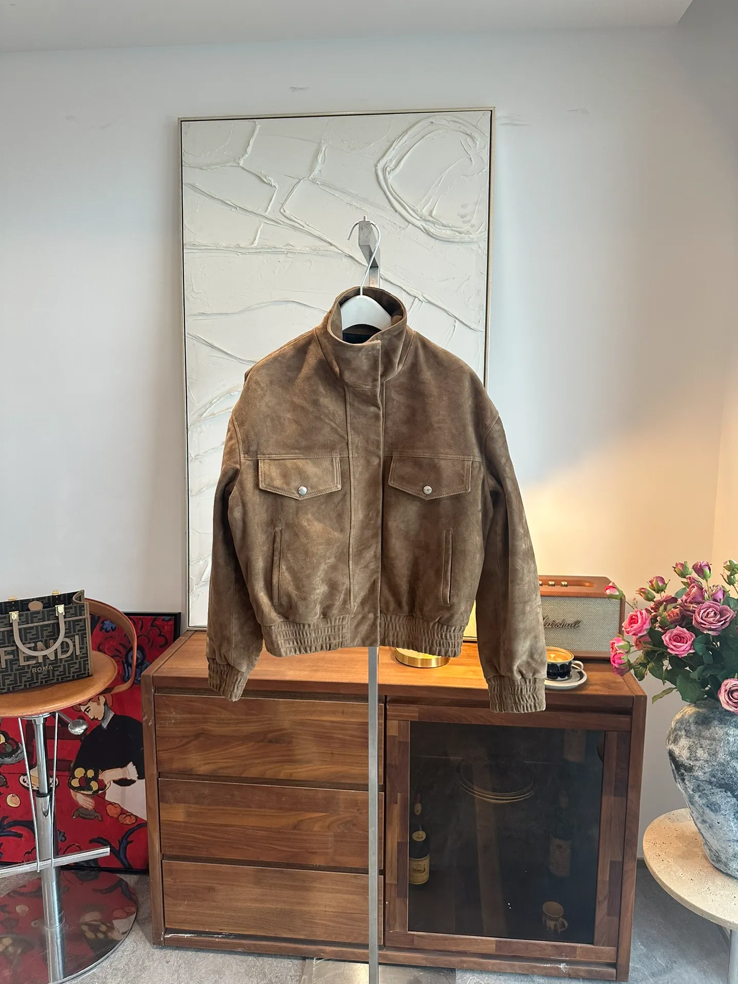 SAINT LAURENT Женская куртка из замши с карманами с клапанами
