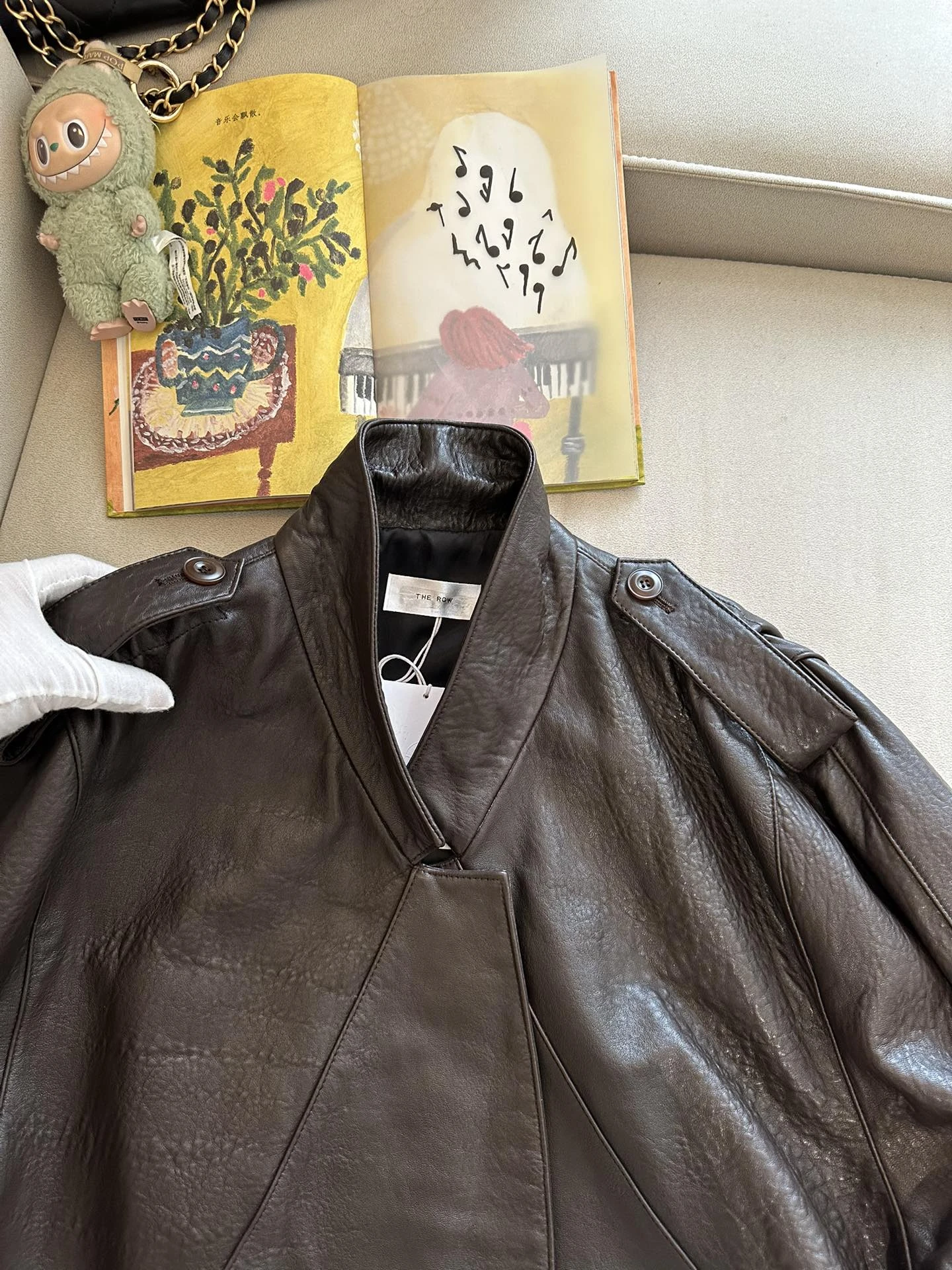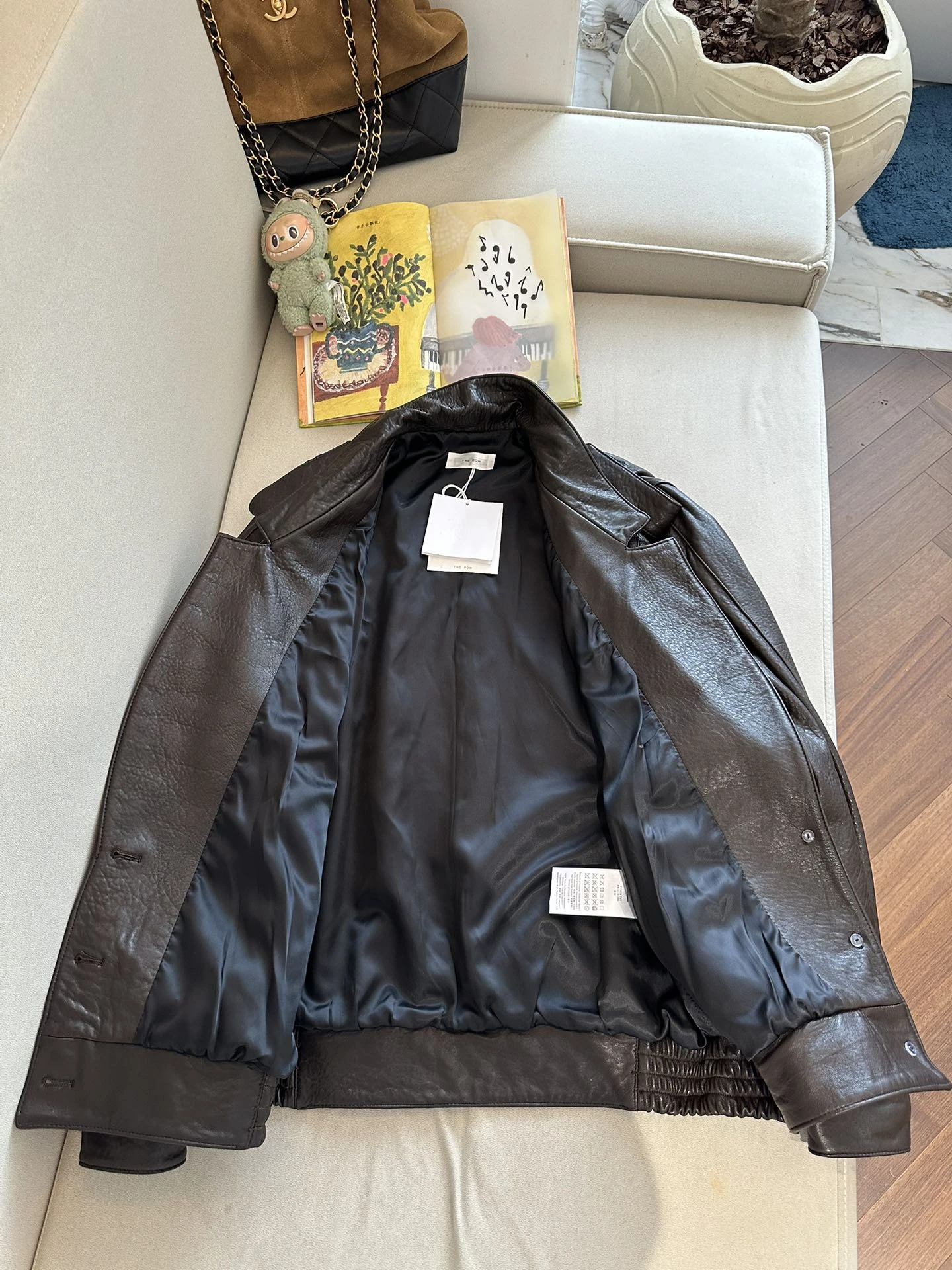 Изысканная куртка от The Row выполнена из высококачественной итальянской коровьей кожи, которая отличается исключительной мягкостью и долговечностью. Модель сочетает в себе минималистичный дизайн и непревзойдённое качество исполнения.