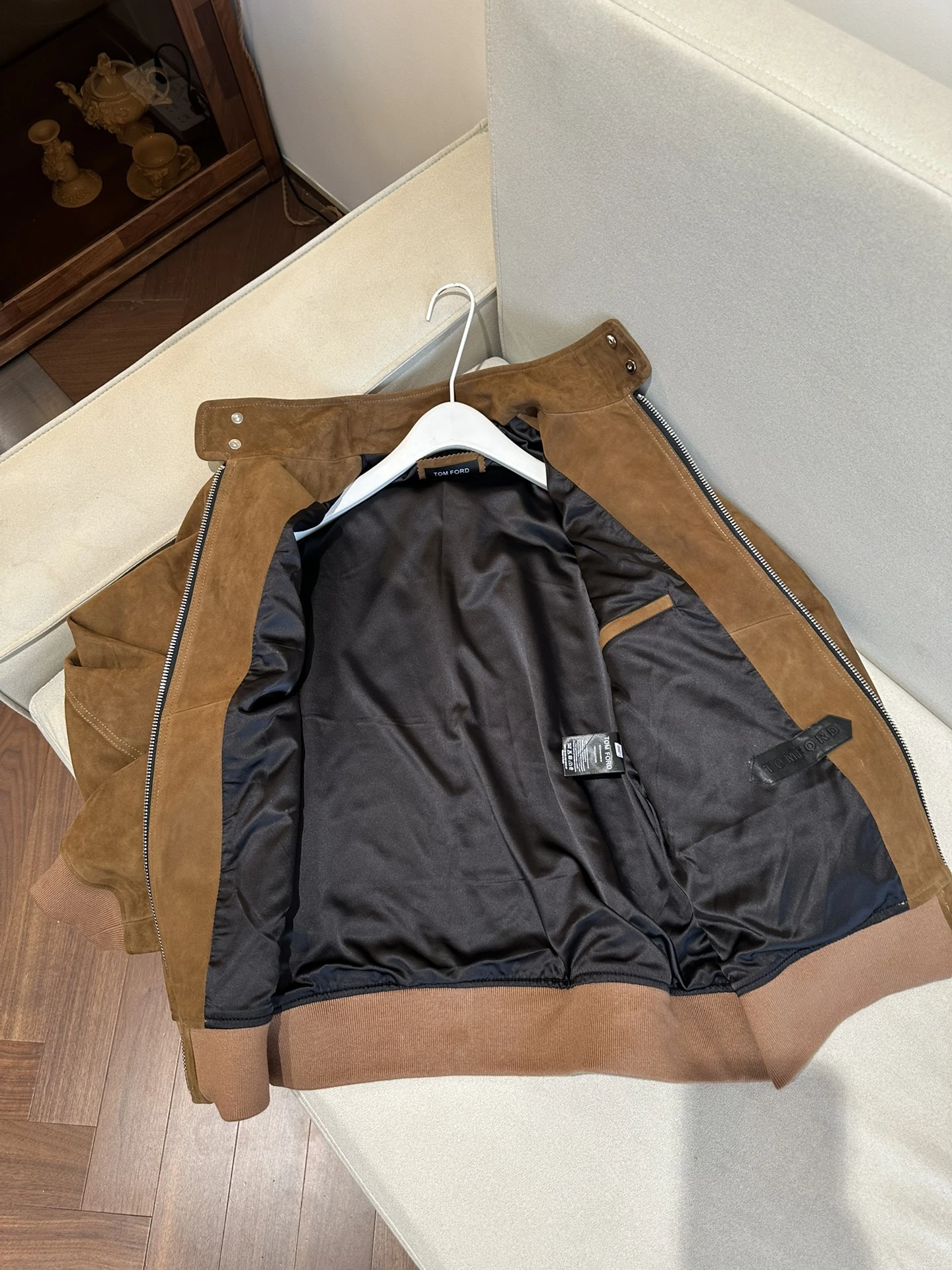 Элегантная женская куртка от Tom Ford, выполненная из высококачественной козьей замши, воплощает в себе утонченность и стиль. Этот изысканный предмет гардероба отличается мягкостью и комфортом, обеспечивая идеальную посадку и ощущение роскоши.