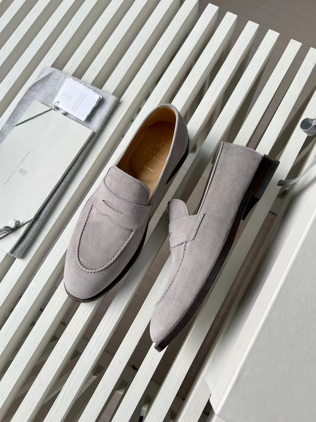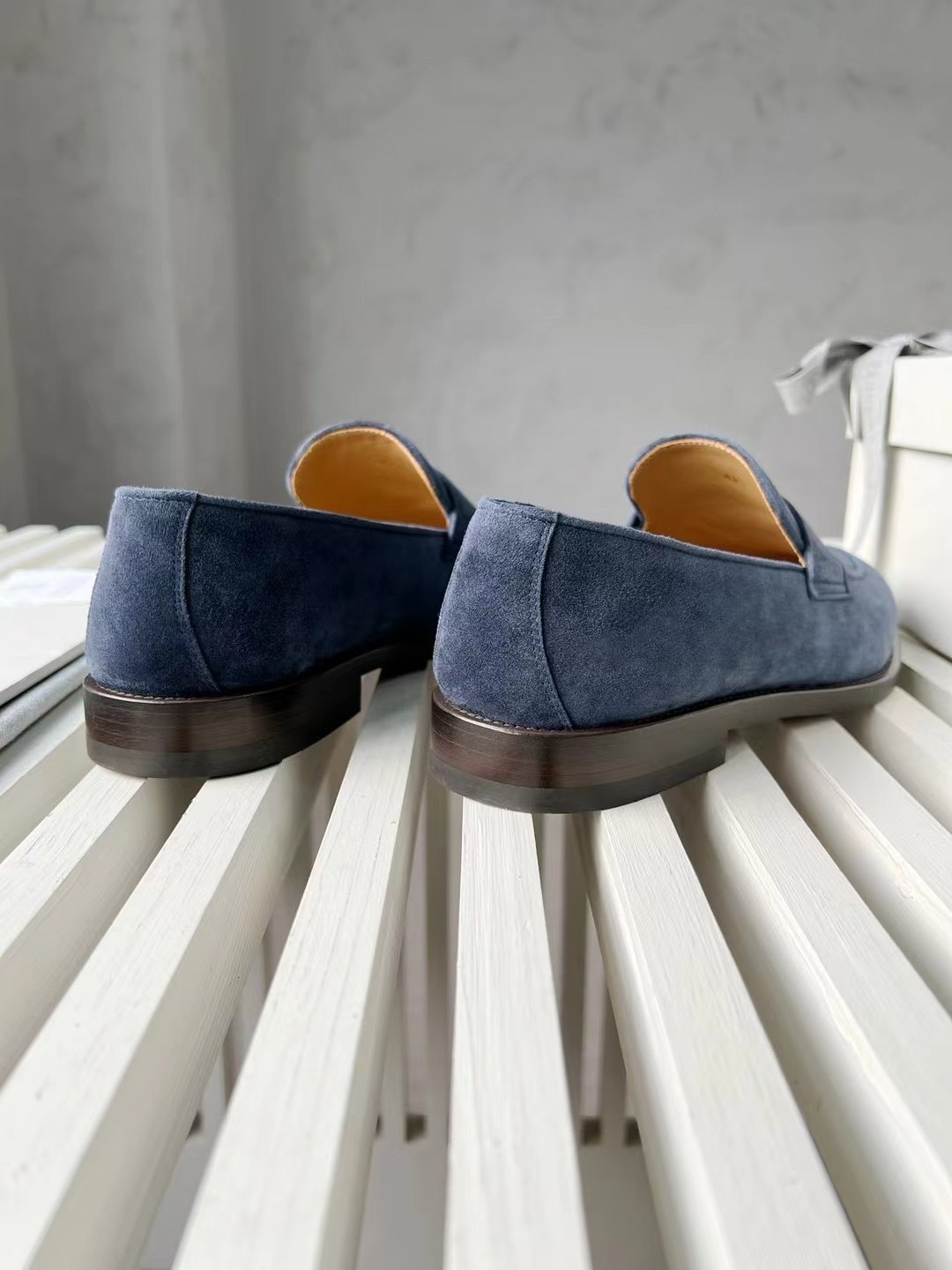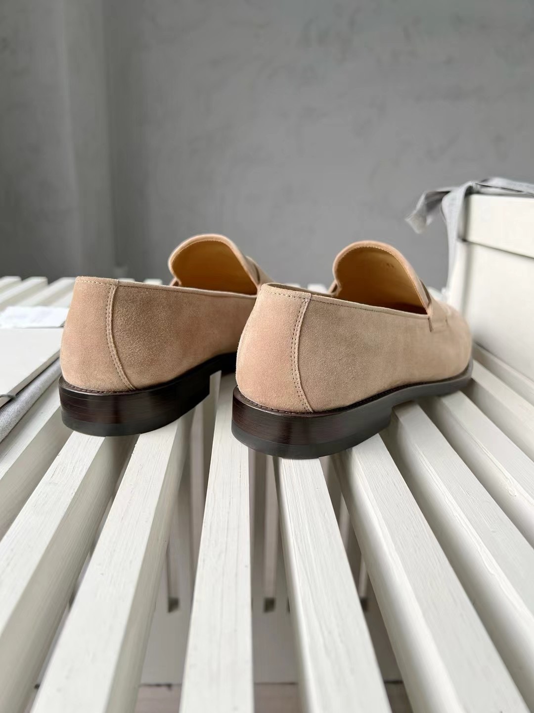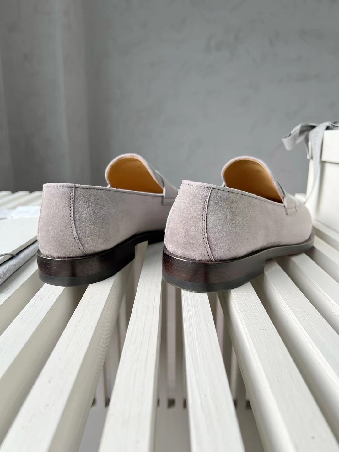 Лоферы от Brunello Cucinelli сочетают в себе элегантность и повседневный стиль благодаря замше, с бархатистой текстурой. Легкий и тонкий материал обеспечивает комфорт в течение всего дня. Подкладка из кожи и тонкая подошва завершает образ модели.