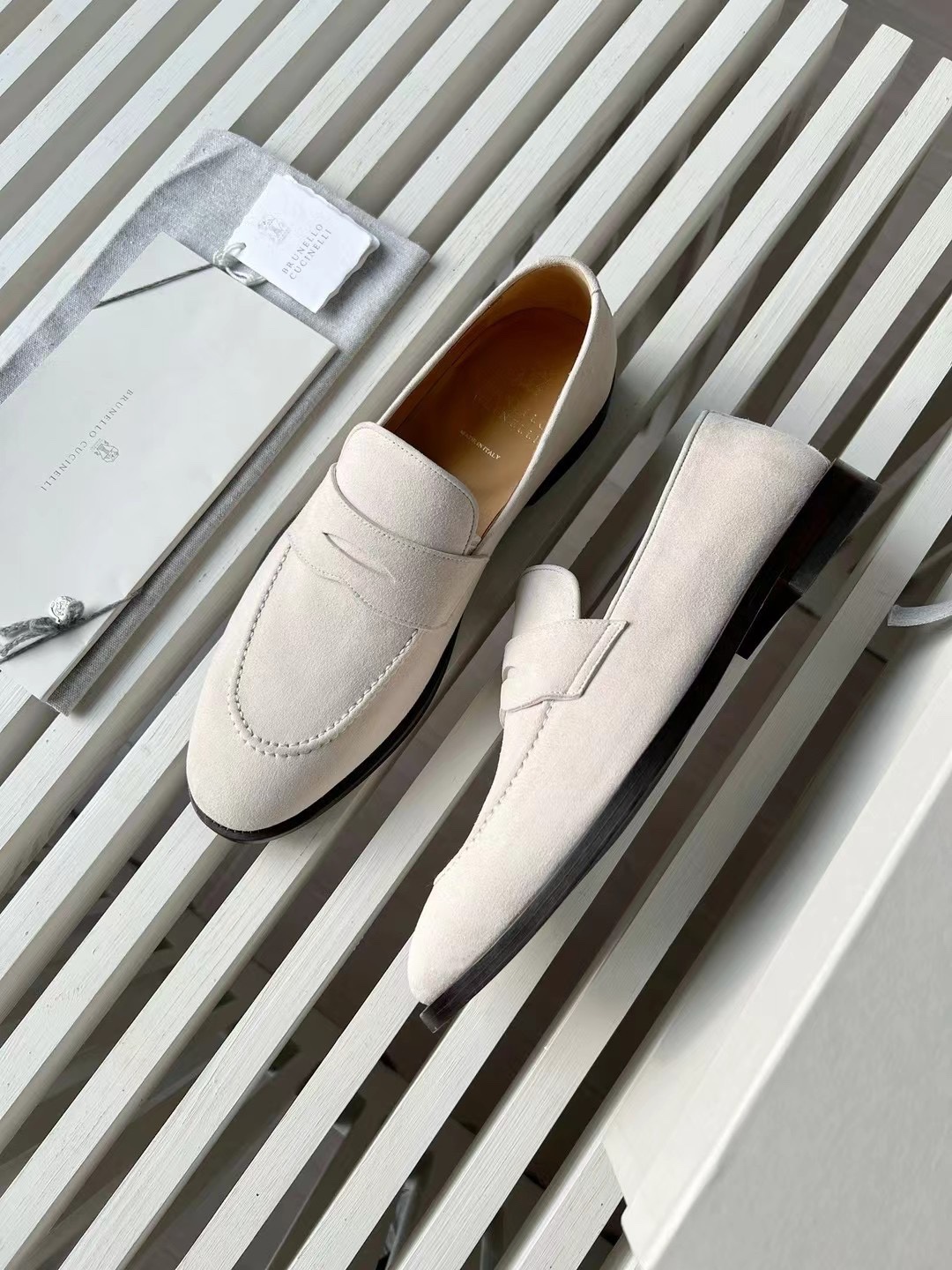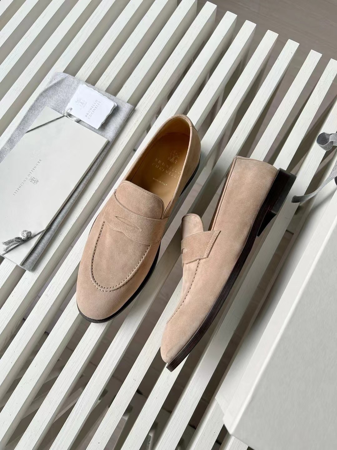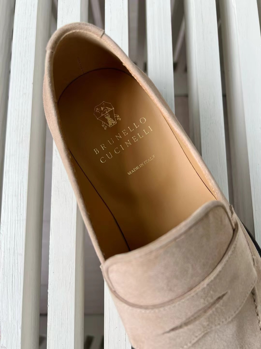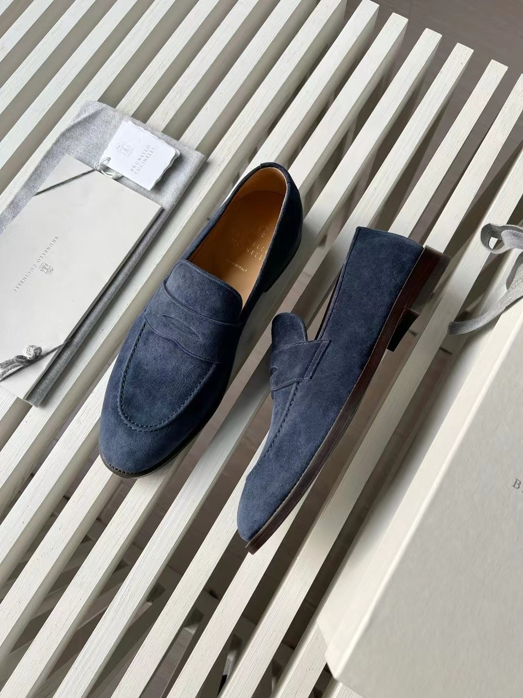 Лоферы от Brunello Cucinelli сочетают в себе элегантность и повседневный стиль благодаря замше, с бархатистой текстурой. Легкий и тонкий материал обеспечивает комфорт в течение всего дня. Подкладка из кожи и тонкая подошва завершает образ модели.