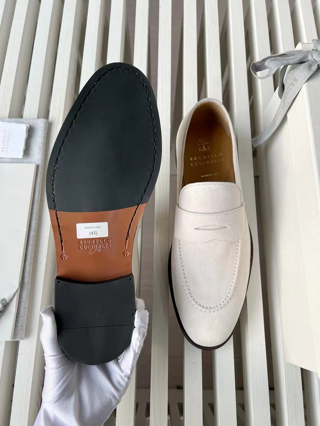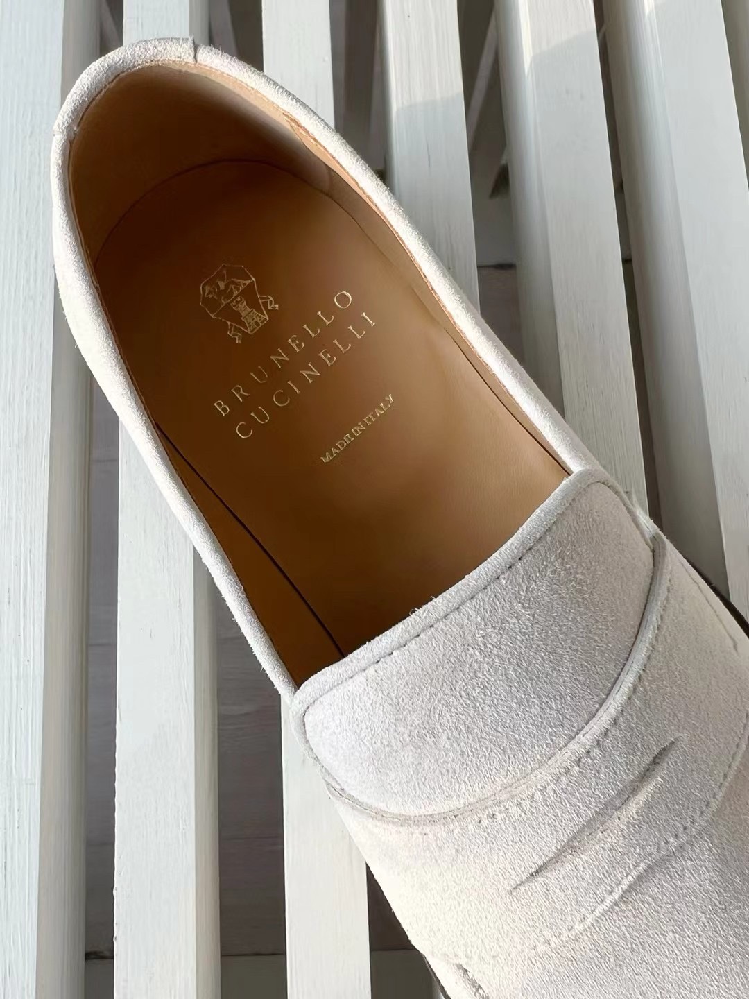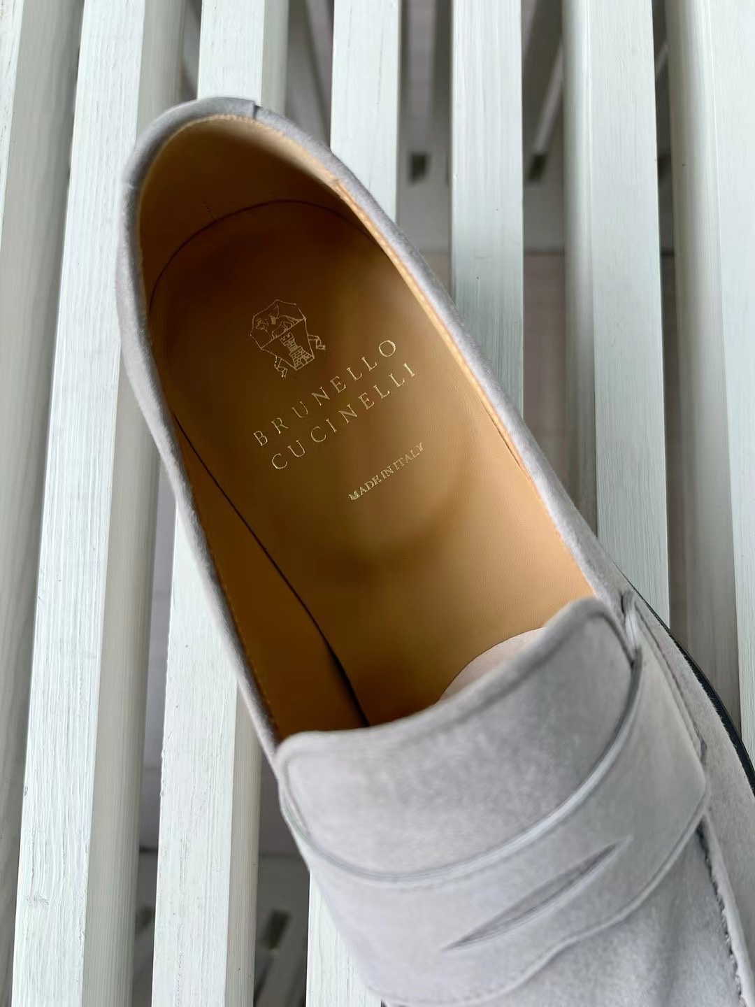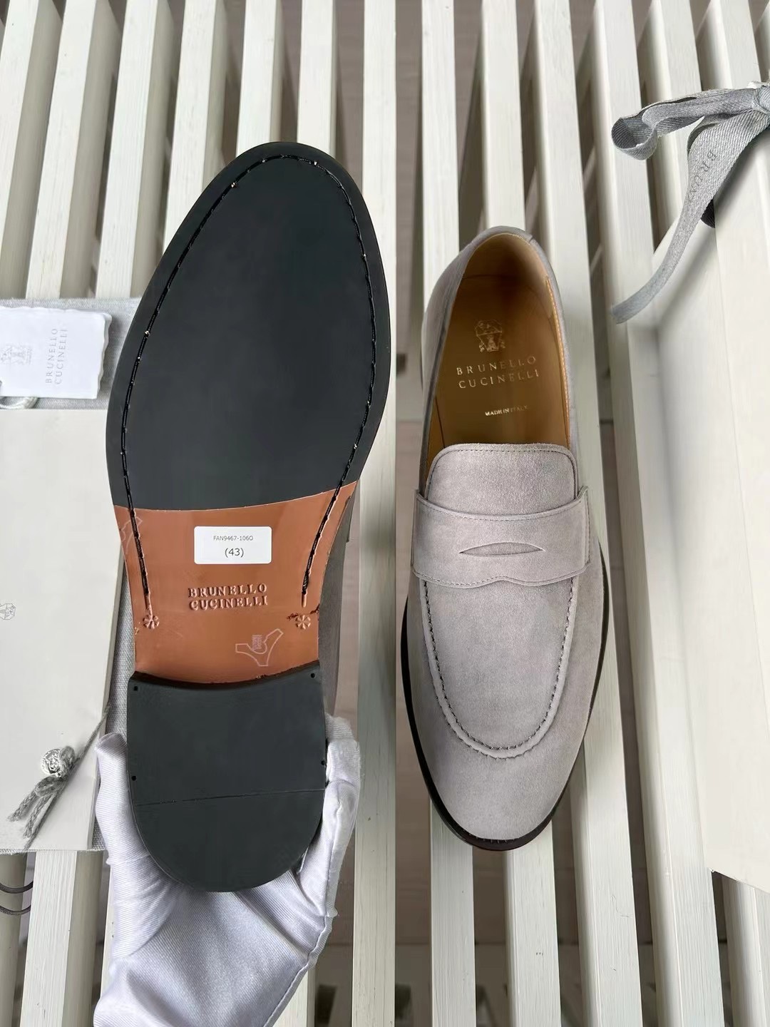 Лоферы от Brunello Cucinelli сочетают в себе элегантность и повседневный стиль благодаря замше, с бархатистой текстурой. Легкий и тонкий материал обеспечивает комфорт в течение всего дня. Подкладка из кожи и тонкая подошва завершает образ модели.