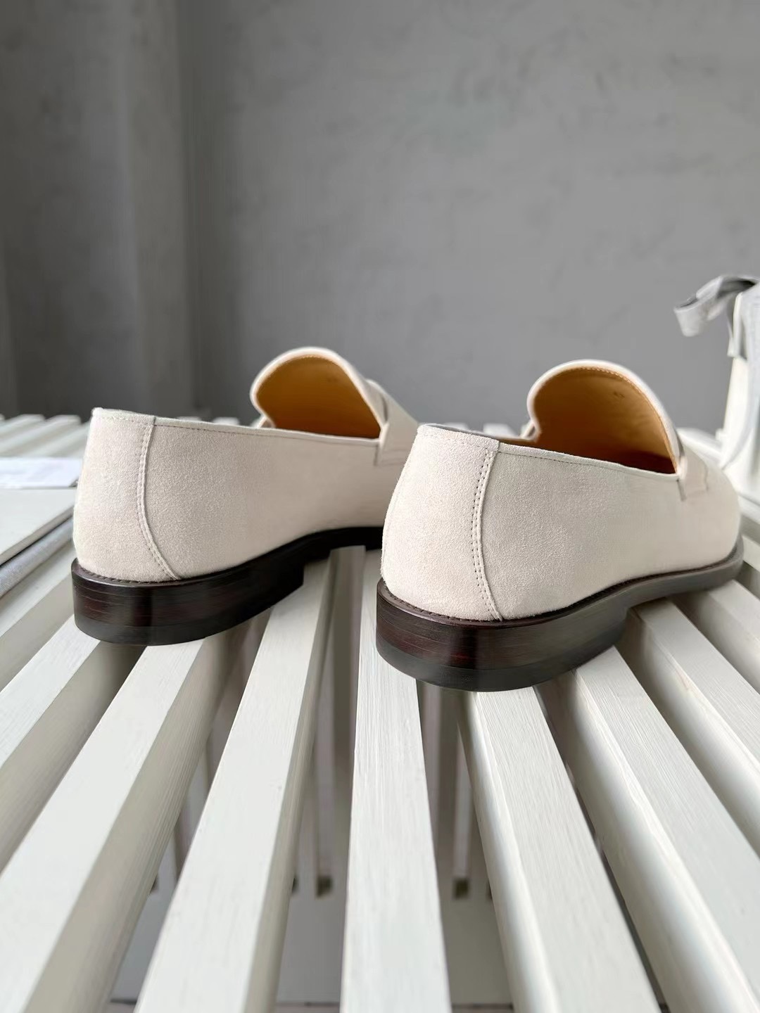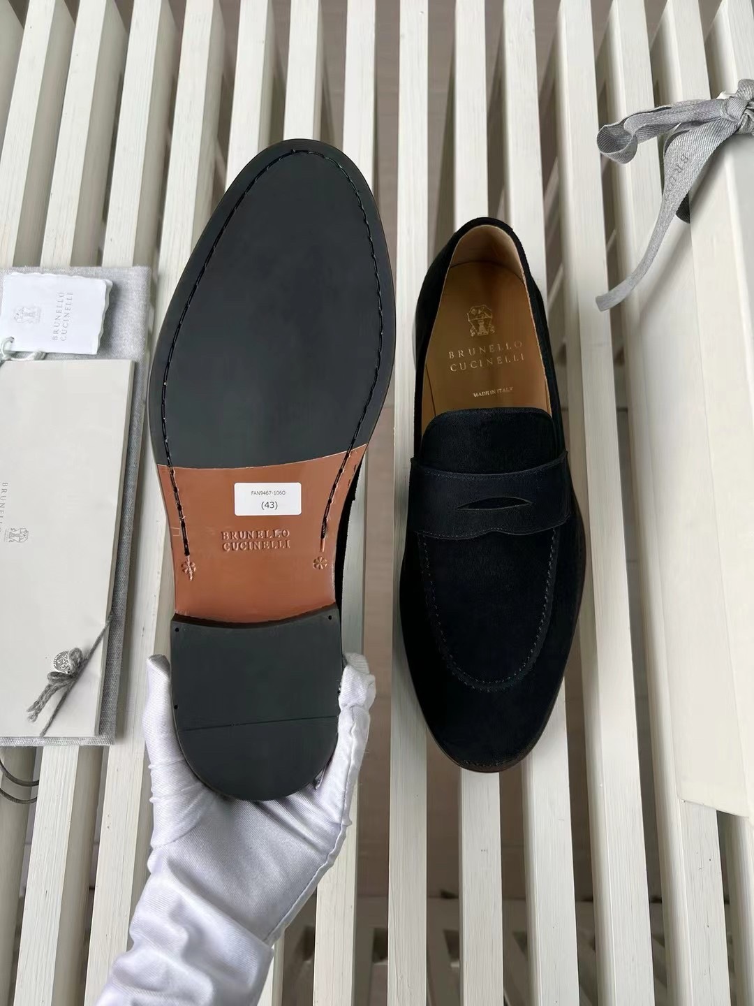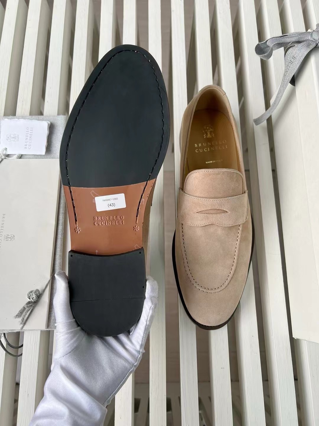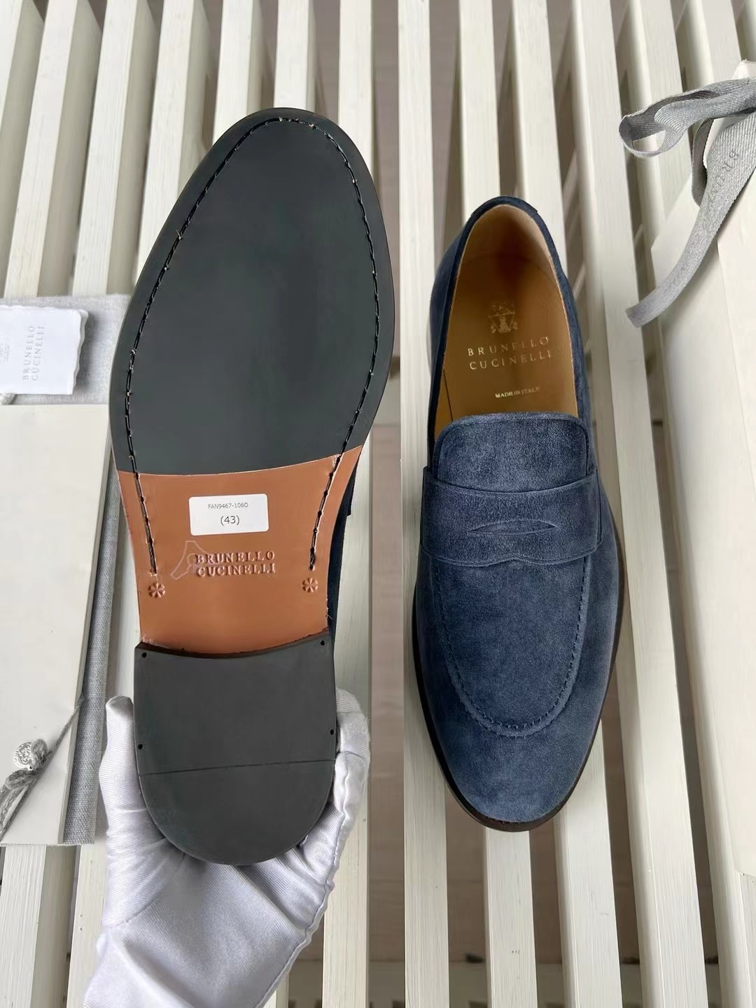 Лоферы от Brunello Cucinelli сочетают в себе элегантность и повседневный стиль благодаря замше, с бархатистой текстурой. Легкий и тонкий материал обеспечивает комфорт в течение всего дня. Подкладка из кожи и тонкая подошва завершает образ модели.