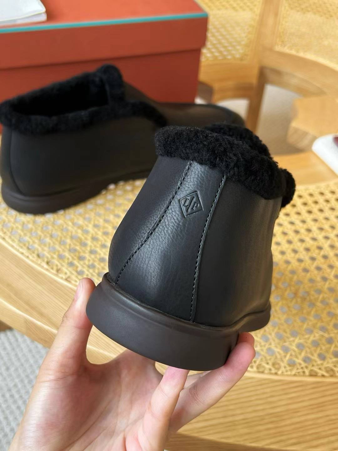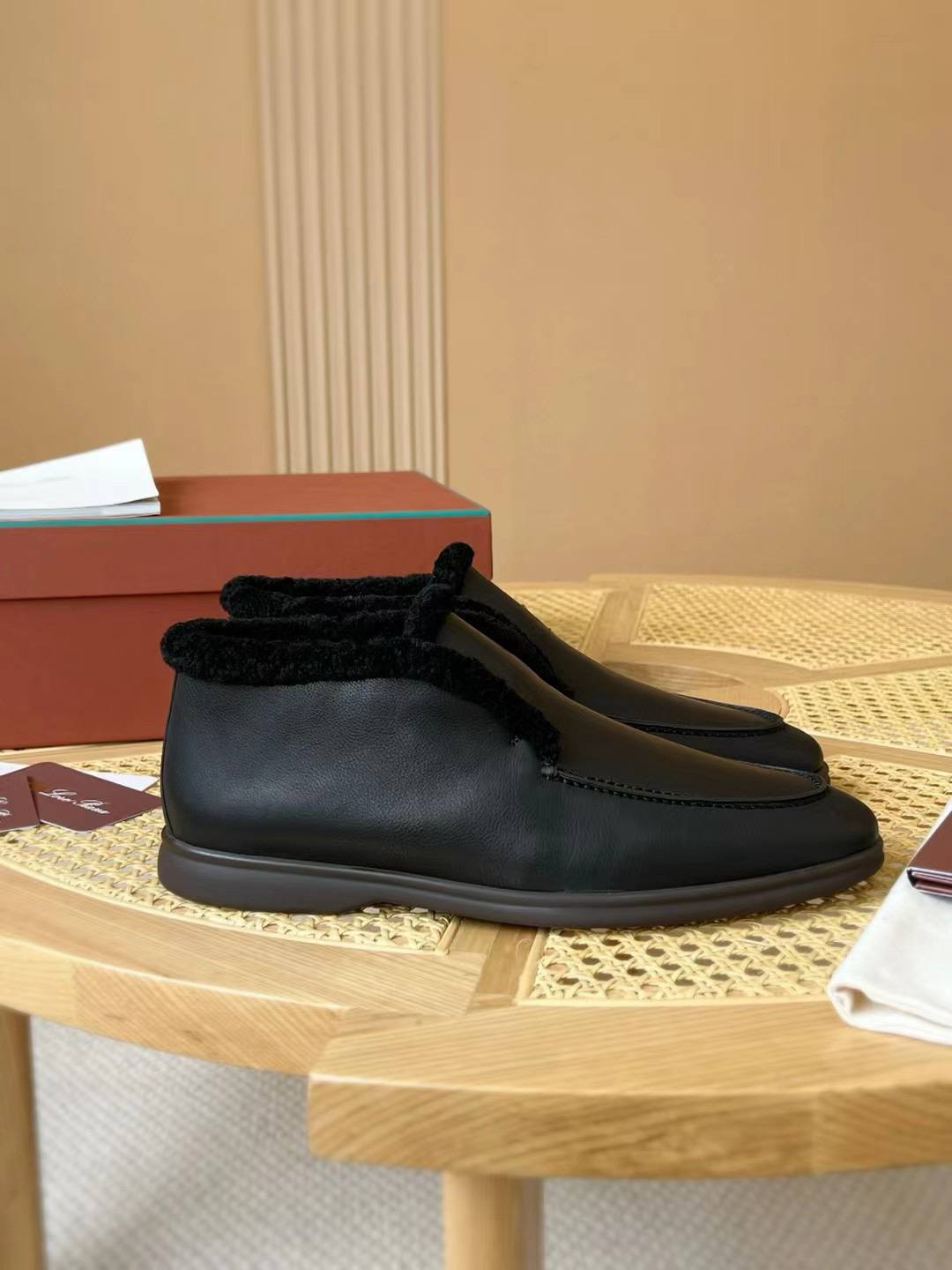 Элегантные мужские лоферы Loro Piana в минималистичном городском стиле — выполнены из гладкой чёрной кожи с мягкой меховой подкладкой по голенищу для дополнительного комфорта. Сдержанный силуэт и качественные материалы делают эту модель идеальной для холодного сезона и спокойного повседневного гардероба.